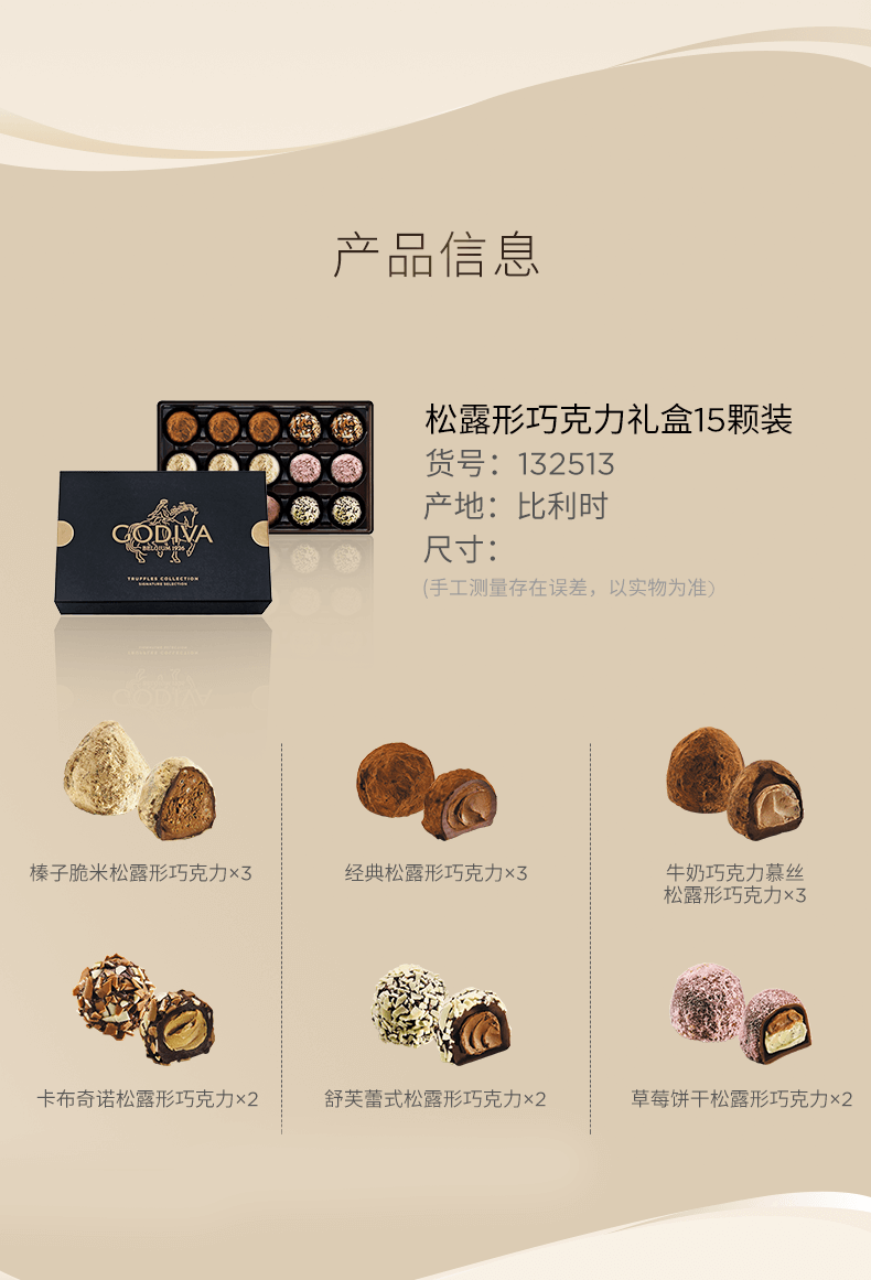 歌帝梵(GODIVA)松露形巧克力礼盒15颗装 195g 生日礼物 休闲零食 原装进口比利时