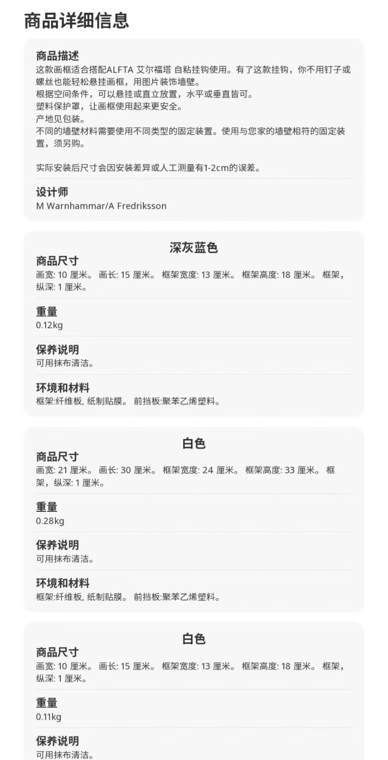 宜家(IKEA)菲斯博画框40x50白色相框礼物装饰画框 画框白色40x50cm