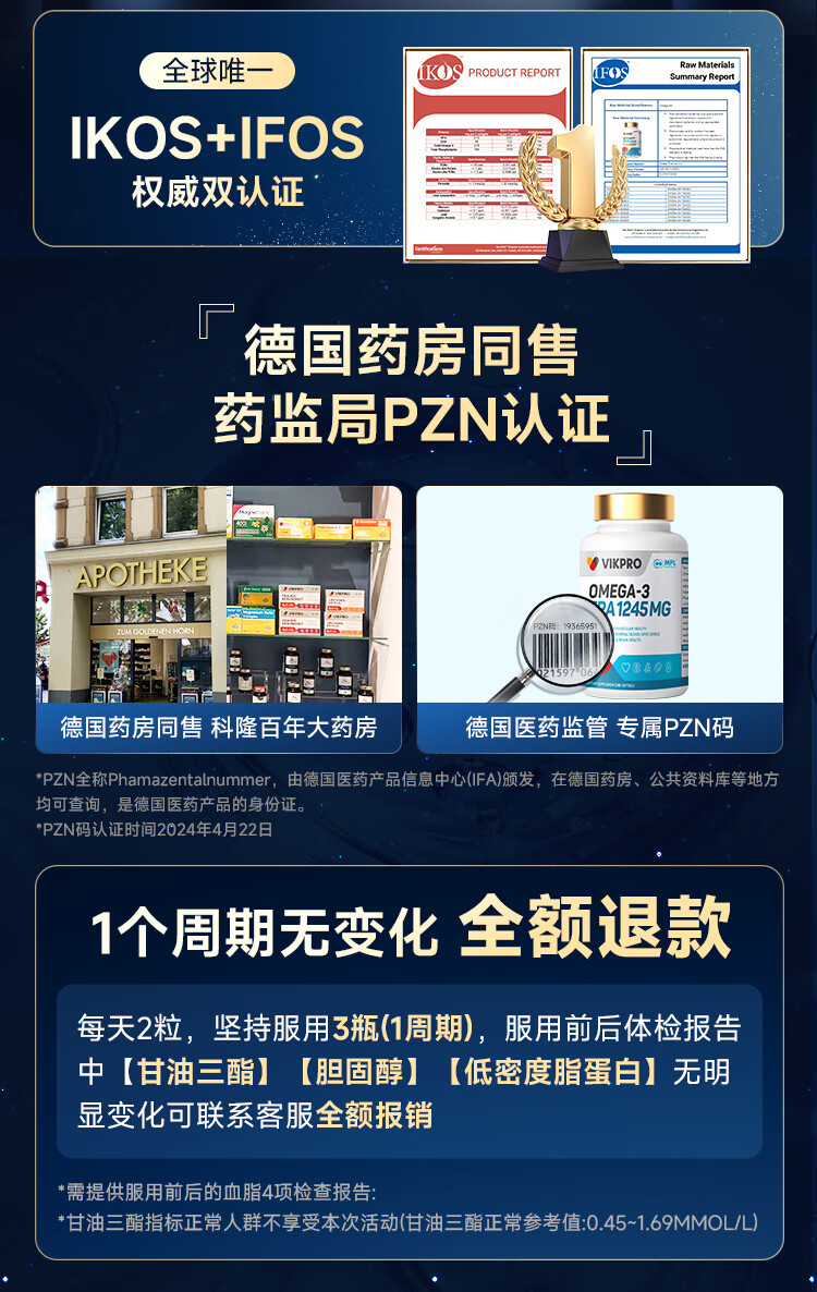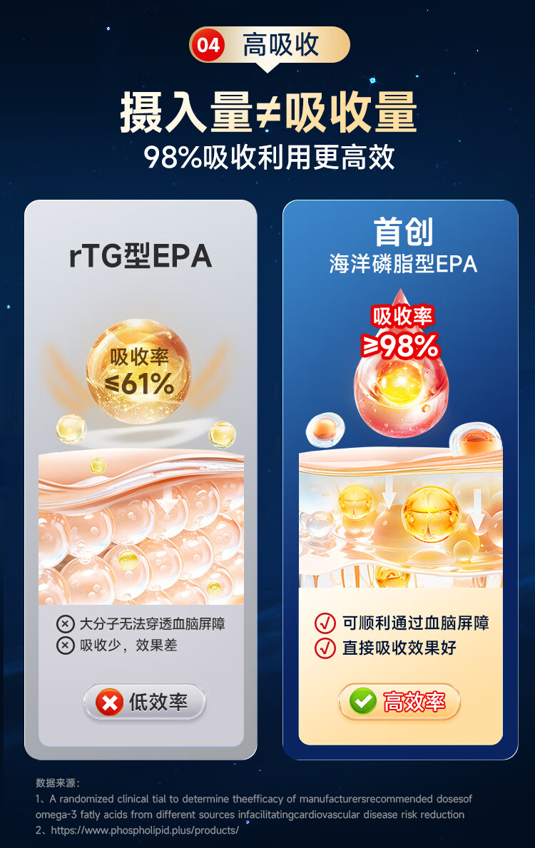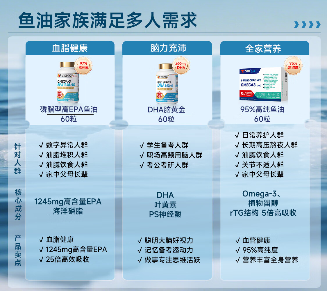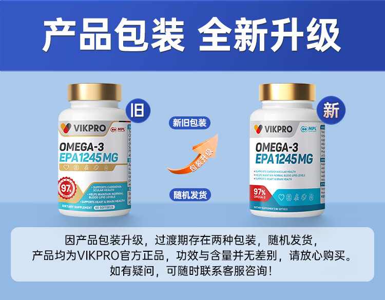 vikpro 97%高EPA鱼油60粒*2瓶 高吸收高纯度深海鱼油磷脂型omega-3