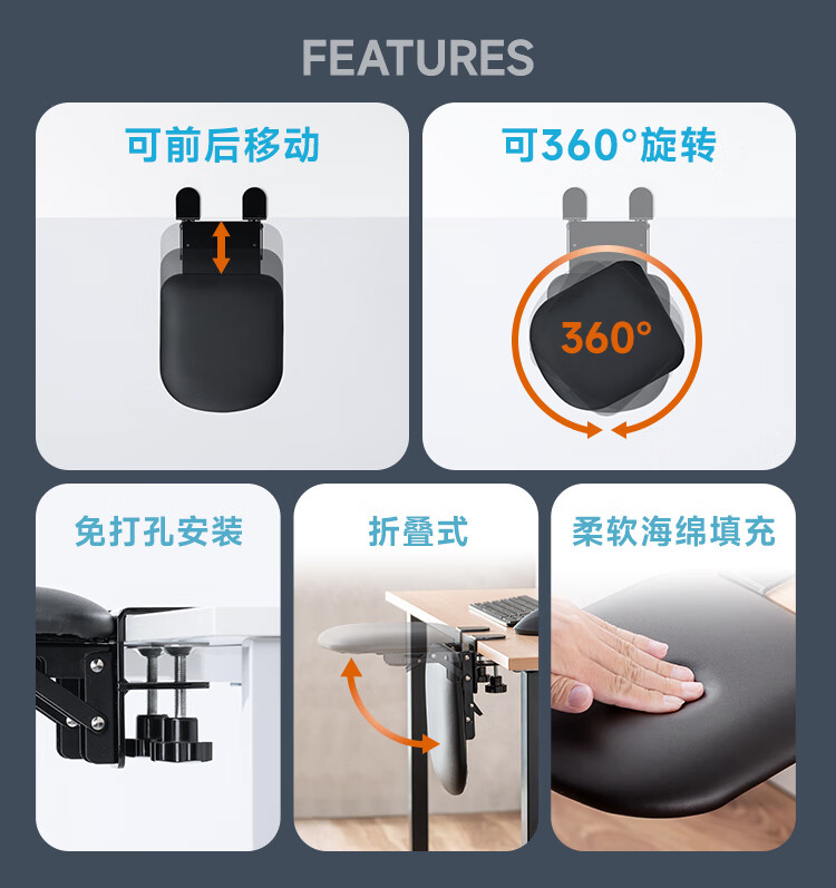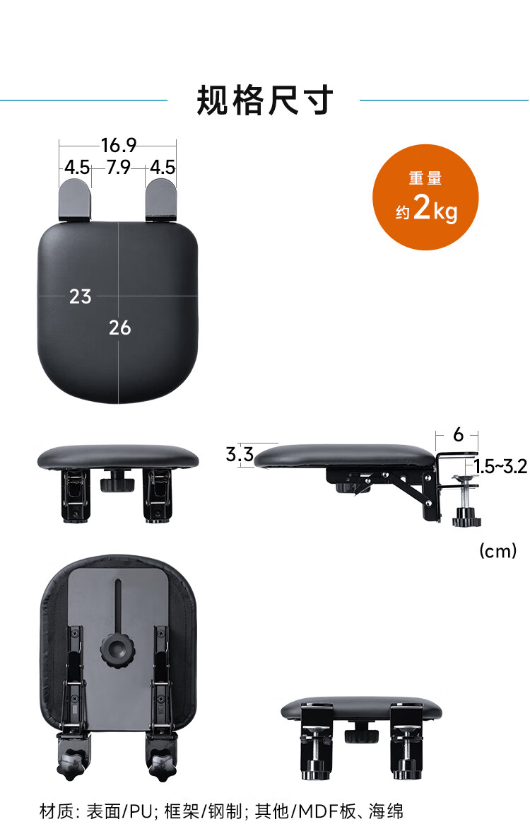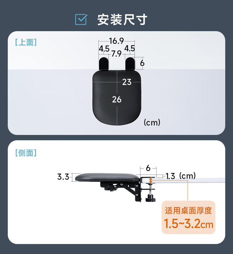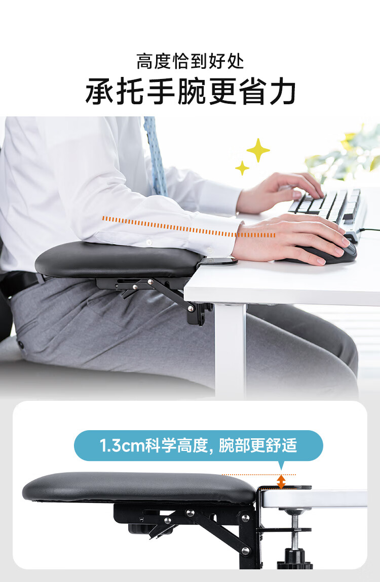 山业键盘托架免打孔扩展板 电脑手托架肘托延长板 键盘鼠标拓展板抽屉 桌下键盘支架 可折叠桌搭支撑板 可折叠抽拉/PU软垫-尺寸320*230*98mm