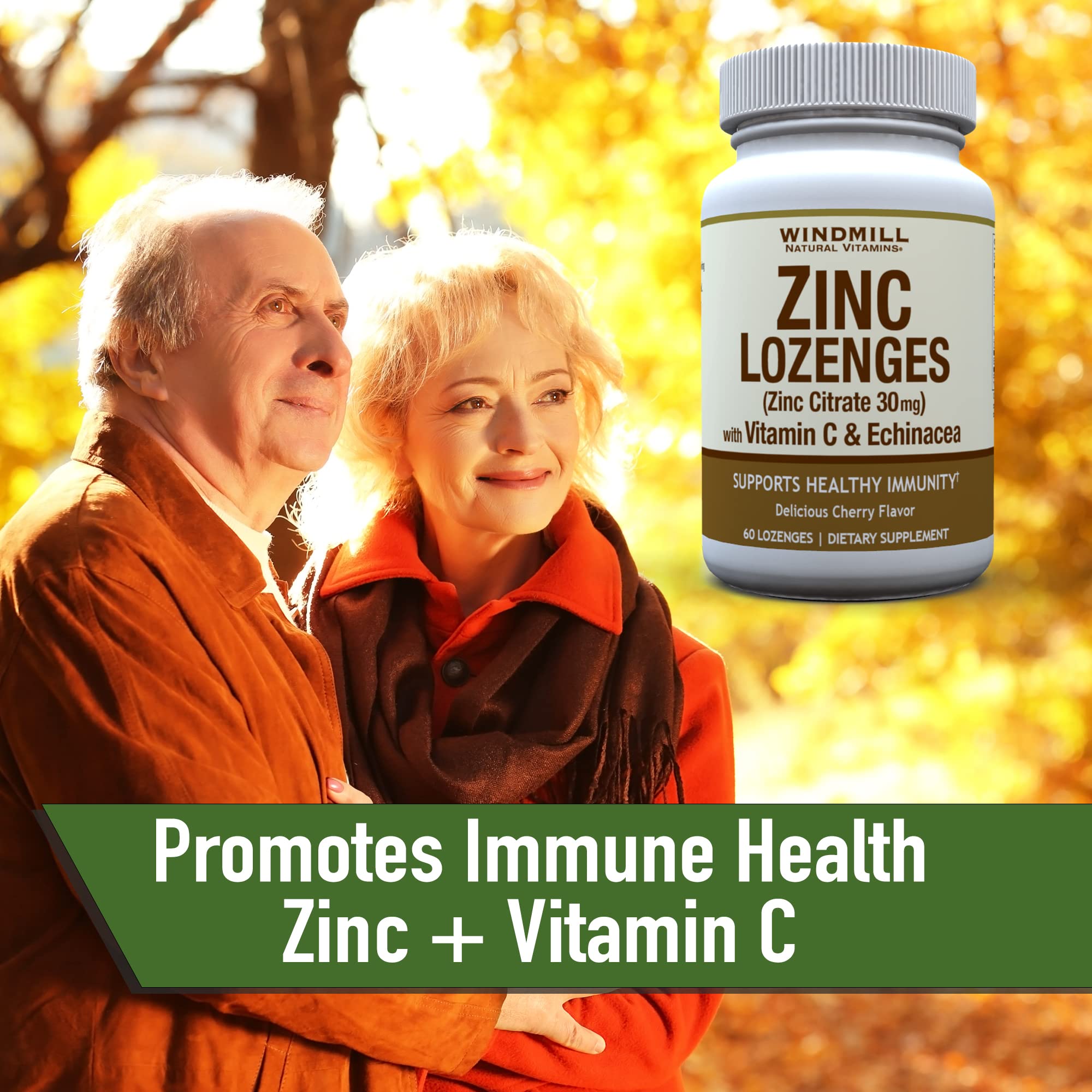 Windmill Health Products风车健康产品锌锭剂,免疫增强剂,含紫锥菊和维生素 C,60 片,60 片