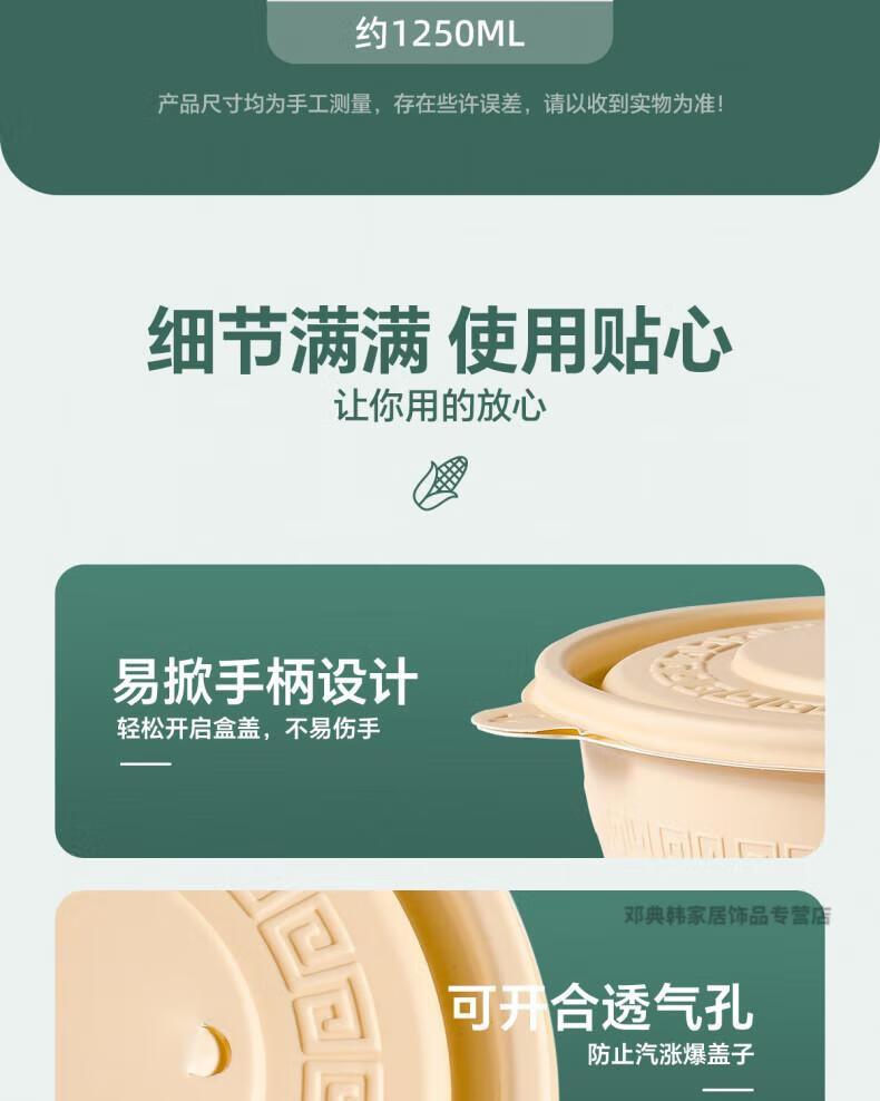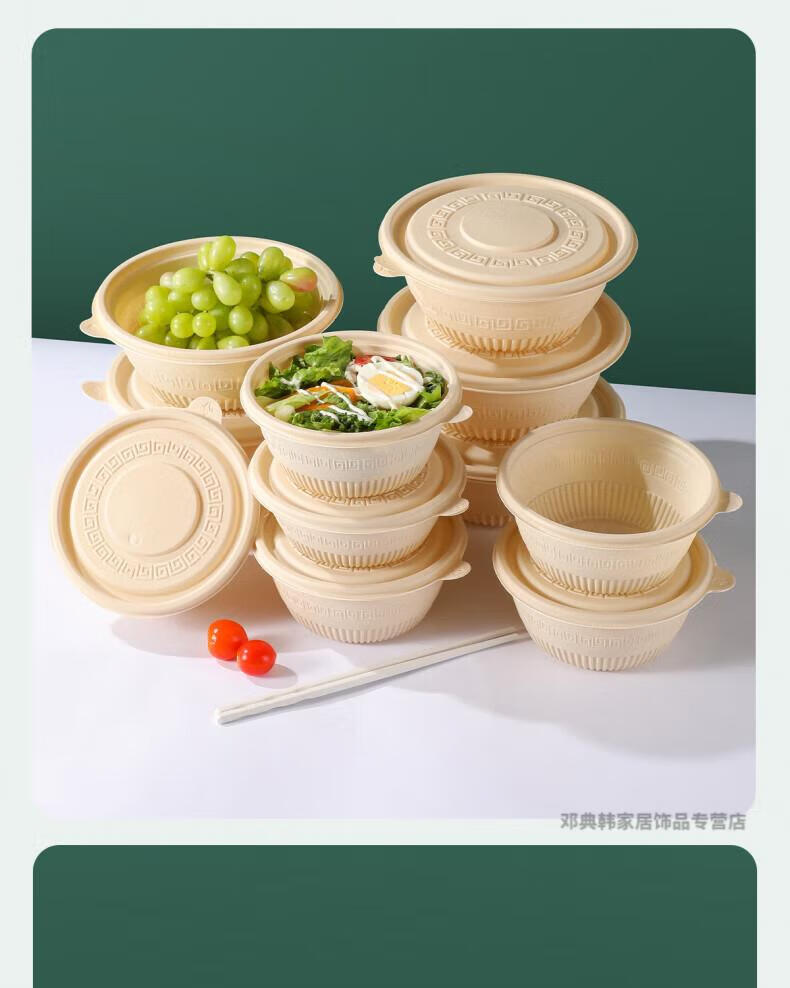 DEATKN德国一次性碗筷塑料碗打包加厚外卖小饭盒快餐盒带盖方形圆形汤碗 700型圆形-加厚【不带盖】食品级 100个碗+筷子