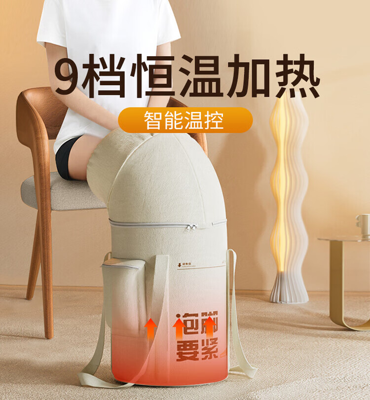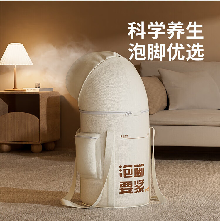 PWDDH德国洗脚泡脚桶可折叠恒温加热高深桶过小腿泡脚盆泡脚袋便携加高熏蒸过膝 米白高深款【恒温加热款】_送艾草足浴包90包