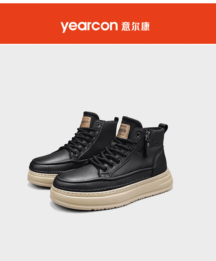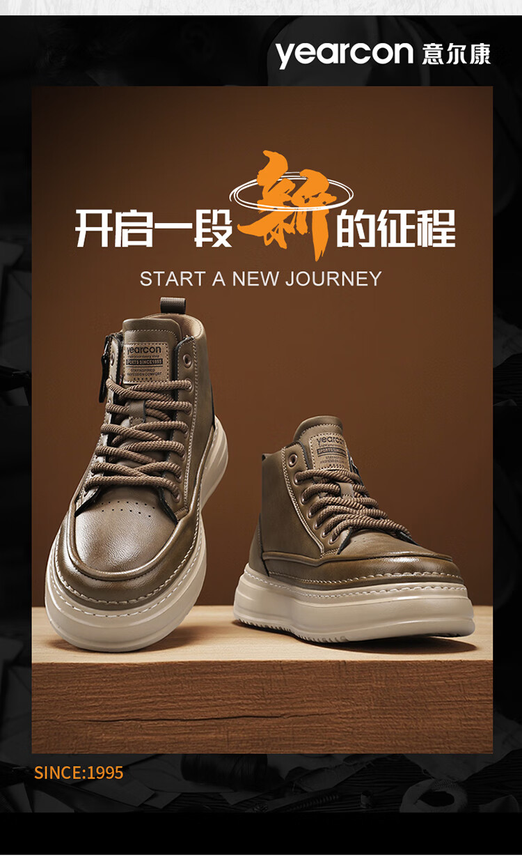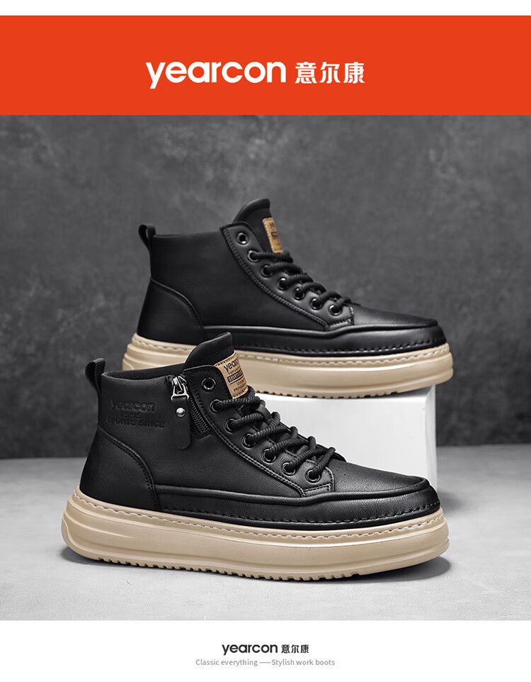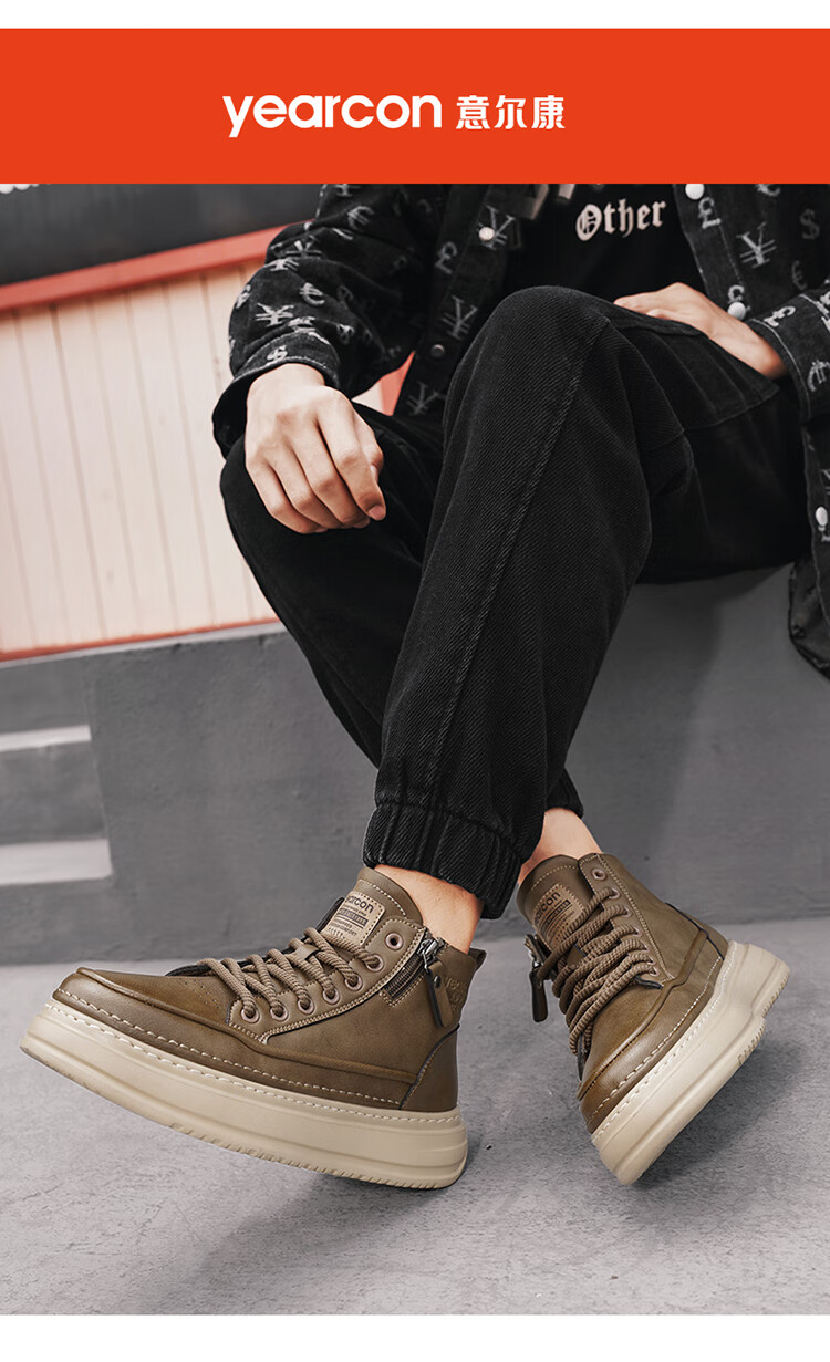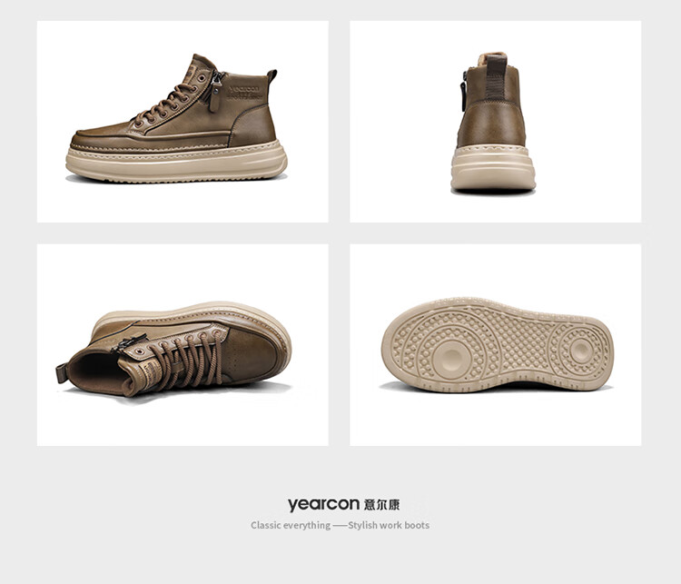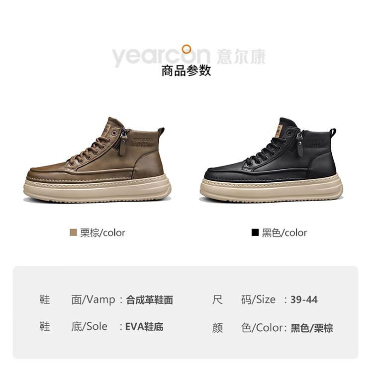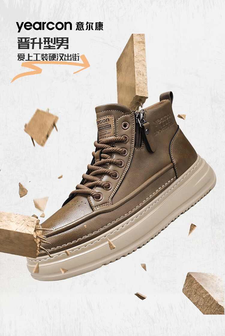 意尔康男鞋冬季新款时尚工装板鞋经典复古厚底马丁靴休闲鞋子男 栗棕 42