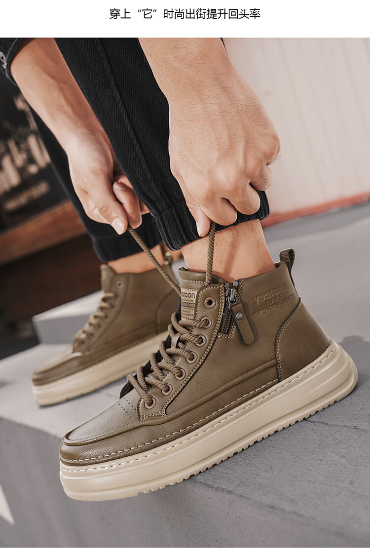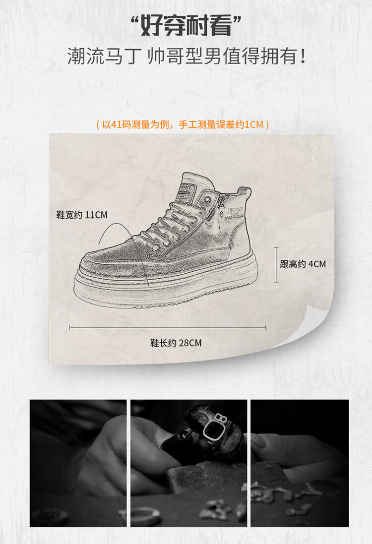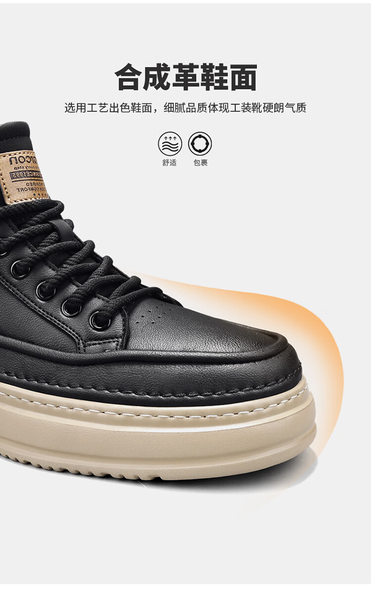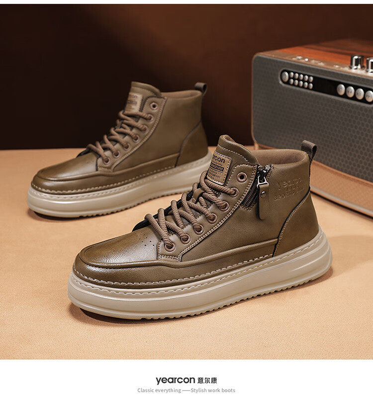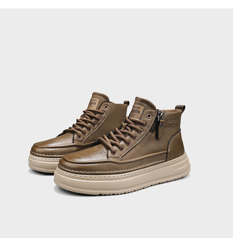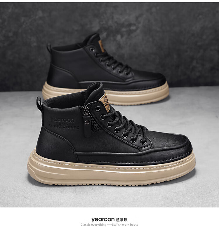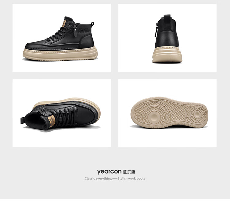 意尔康男鞋冬季新款时尚工装板鞋经典复古厚底马丁靴休闲鞋子男 栗棕 42