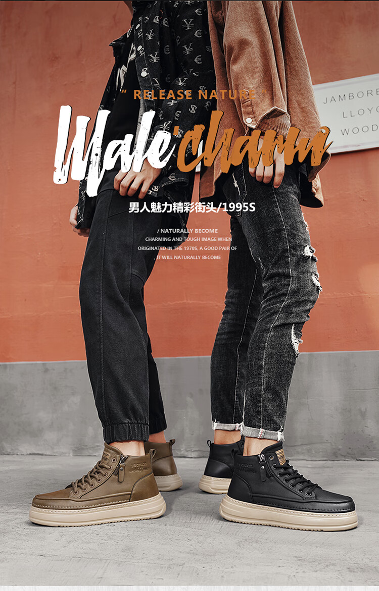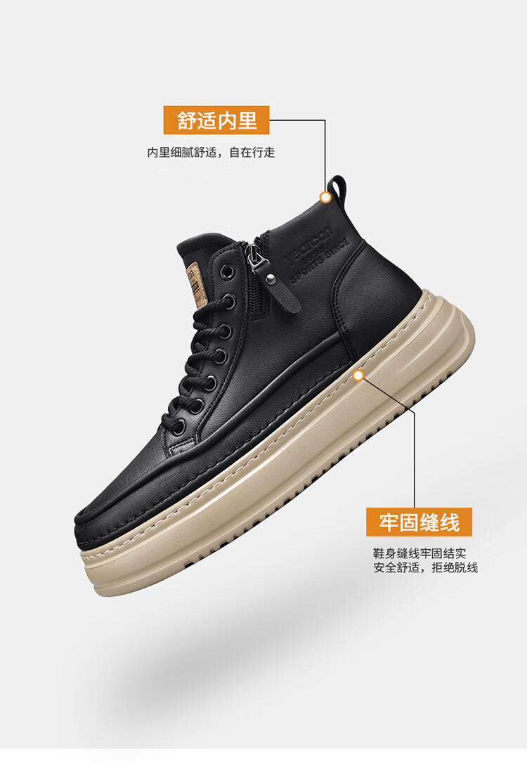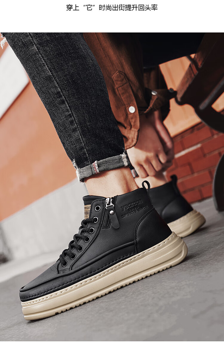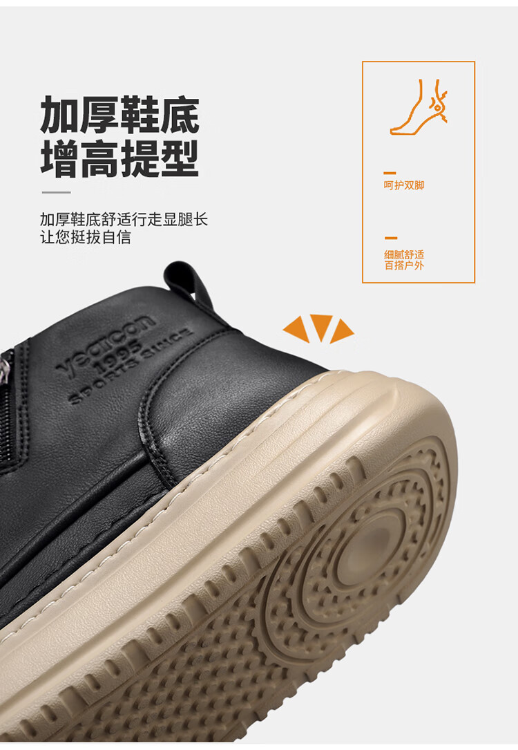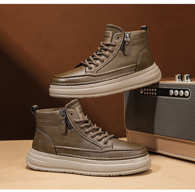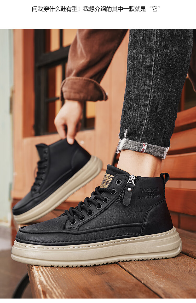 意尔康男鞋冬季新款时尚工装板鞋经典复古厚底马丁靴休闲鞋子男 栗棕 42