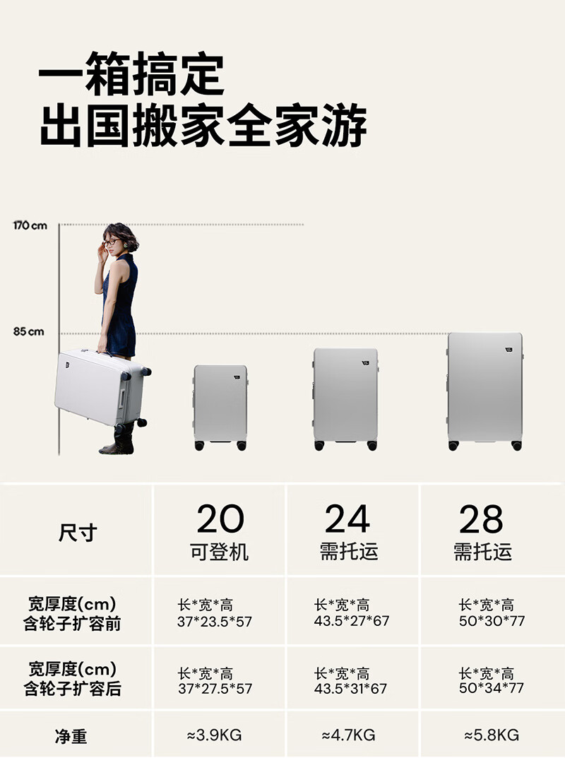 开放水域openwater行李箱大容量高颜值旅行拉杆箱扩容登机箱 冰川灰28英寸
