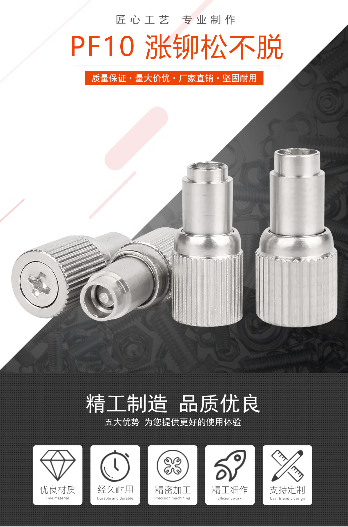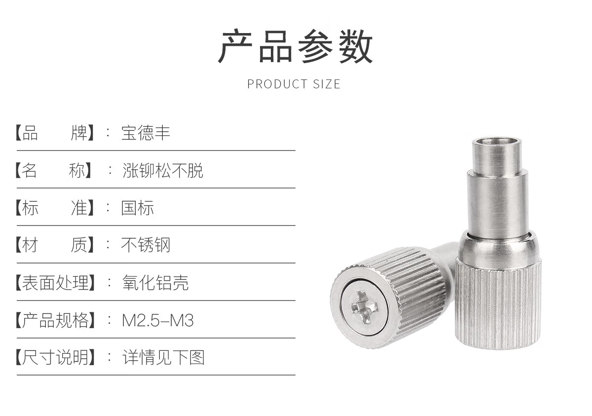 宝德丰压铆304不锈钢松不脱弹簧螺钉PF10-M2.5/M3涨铆机柜面板组合螺钉 PF10-M2.5-0 钉长14.5 板厚≥1.2[5只]