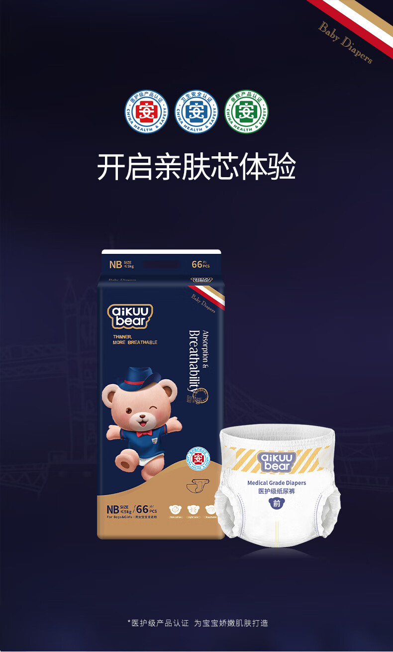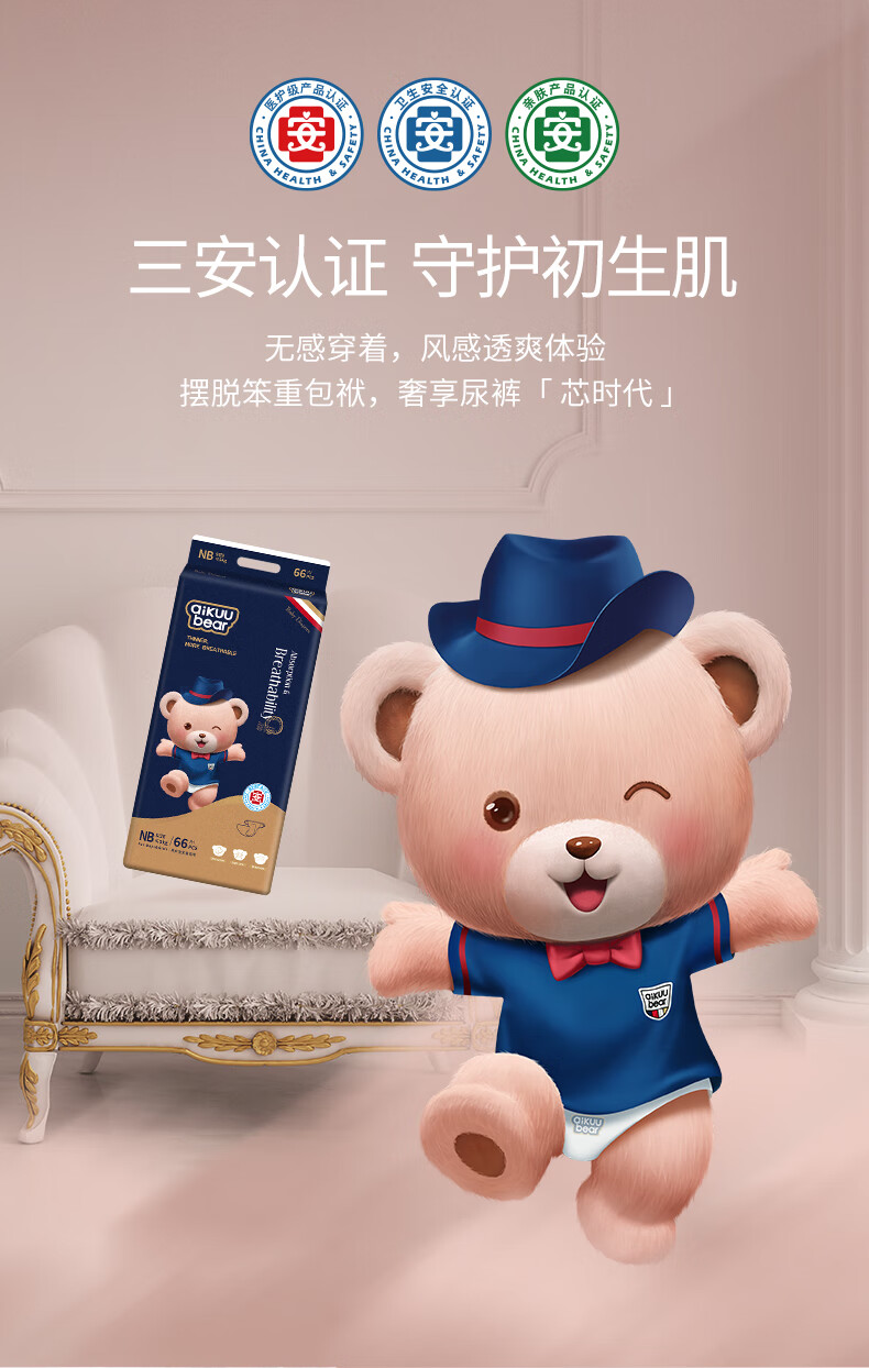 名典泰迪纸尿裤NB码66片【1-3kg】 新生婴儿尿不湿超薄透气干爽尿裤