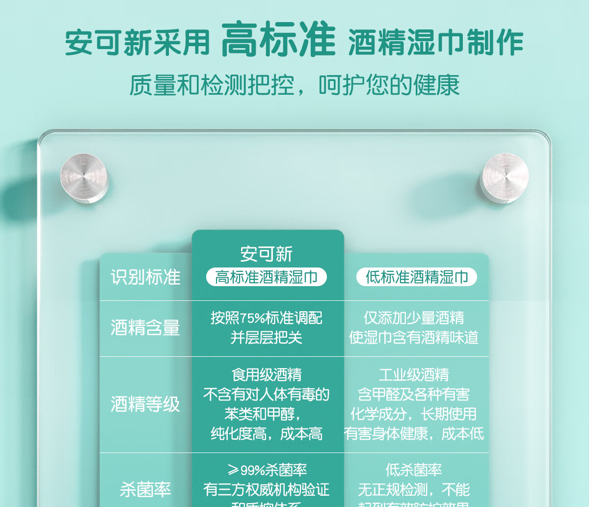 安可新 75% 酒精湿巾40抽5包杀菌率99%湿纸巾清洁卫生湿巾大尺寸18x16cm