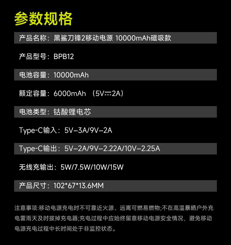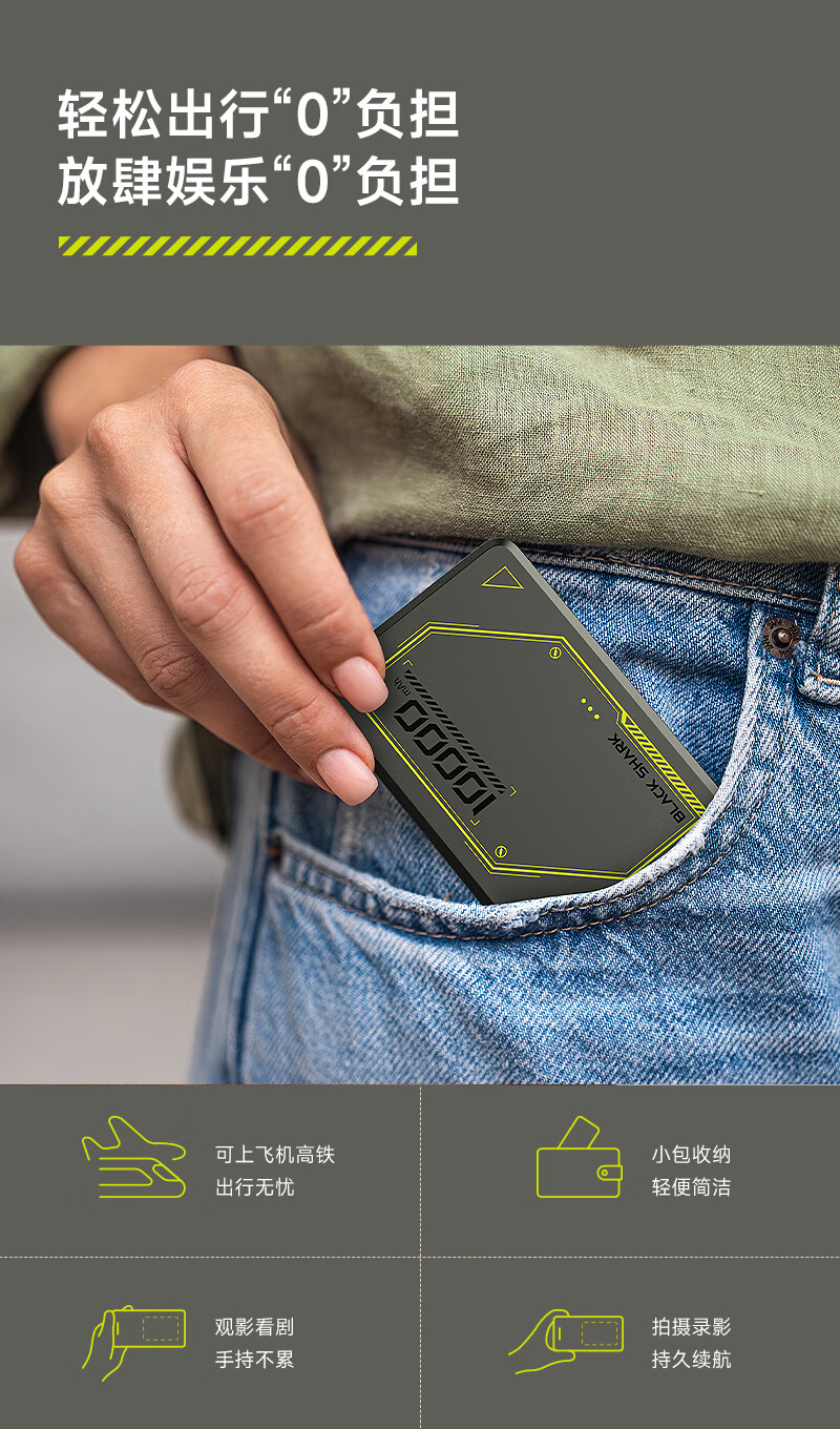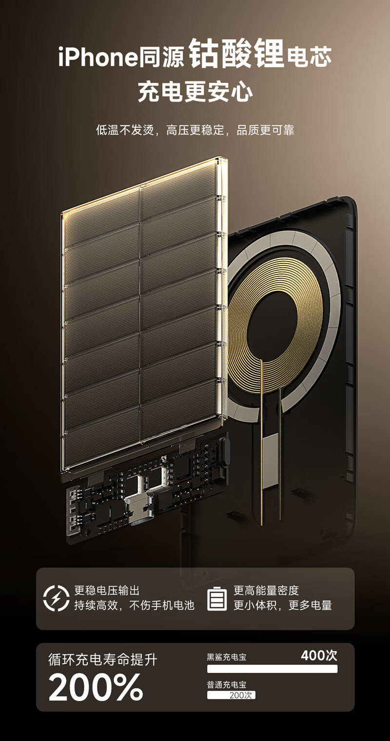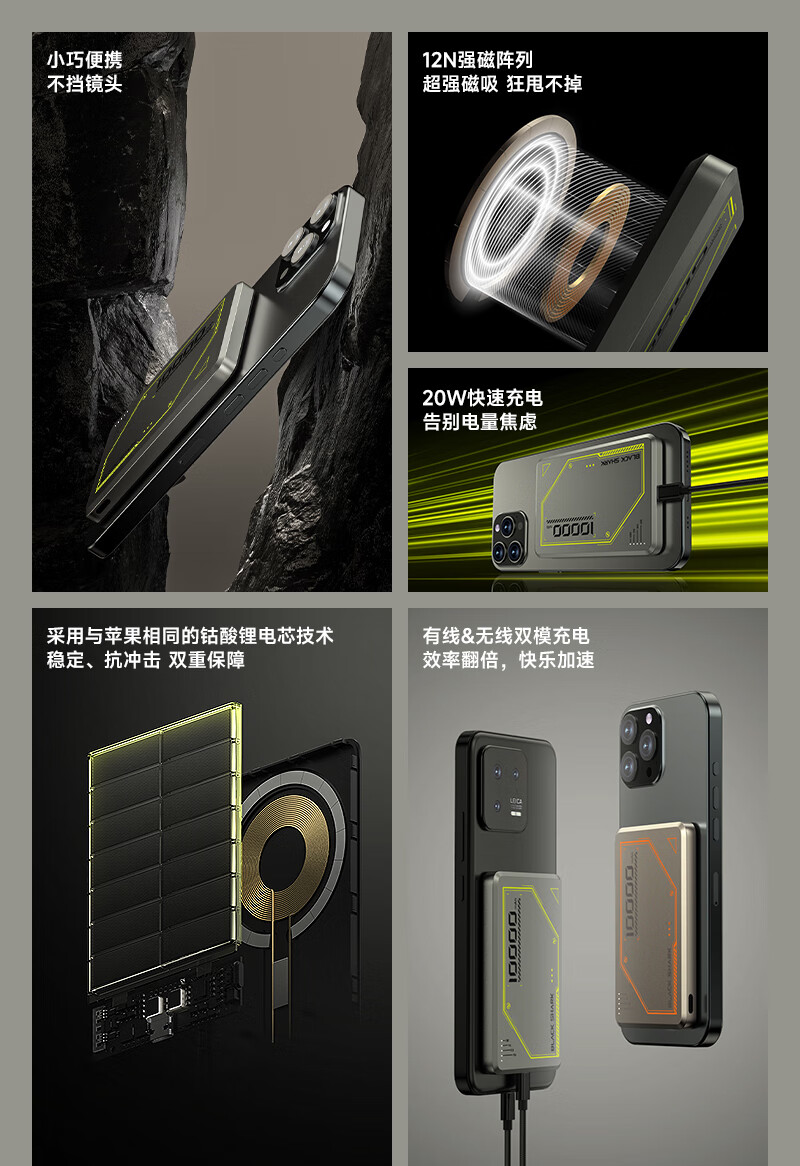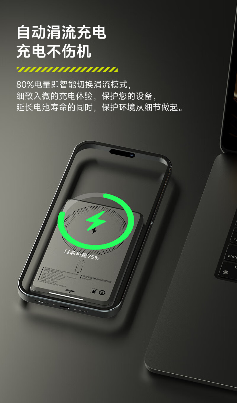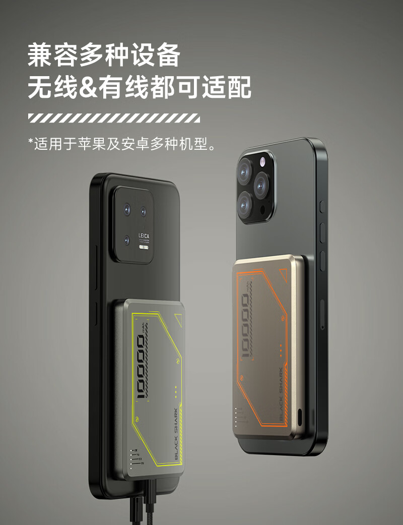 黑鲨【3C认证可上飞机】 刀锋2苹果磁吸无线充电宝支持MagSafe快充20W超薄10000毫安时适用iPhone17/16