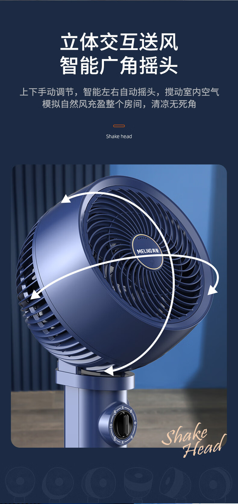 美菱(MeiLing)空气循环扇/家用电风扇落地办公涡轮换气对流扇摇头节能交流定频风扇台立两用MPF-DX501机械香薰款