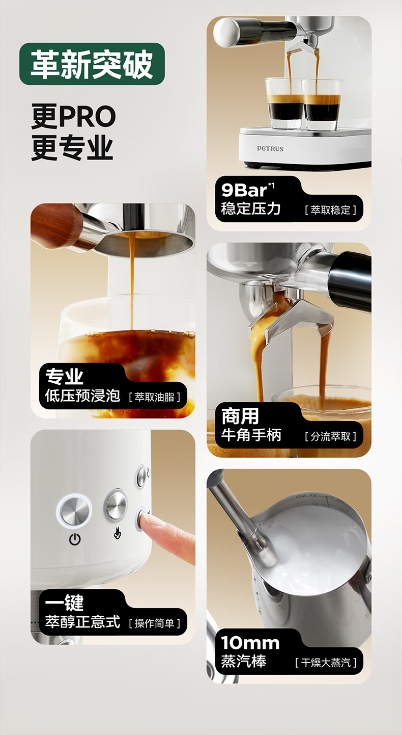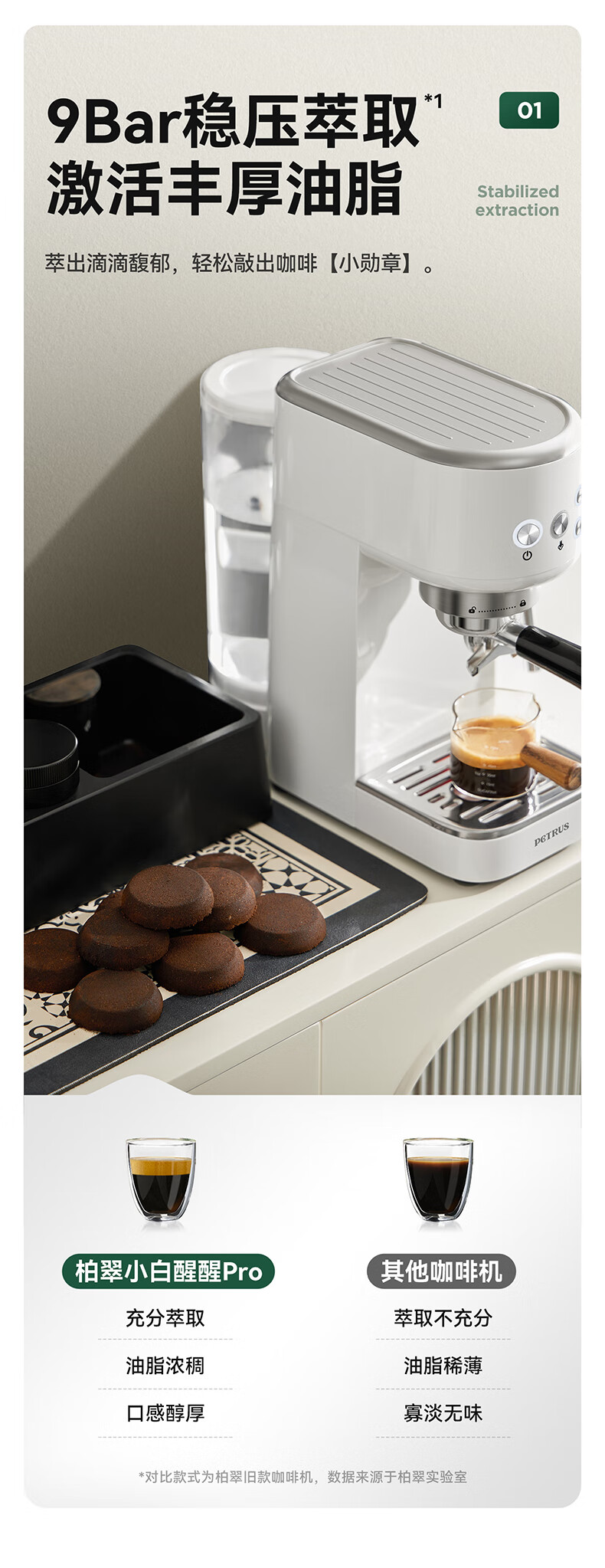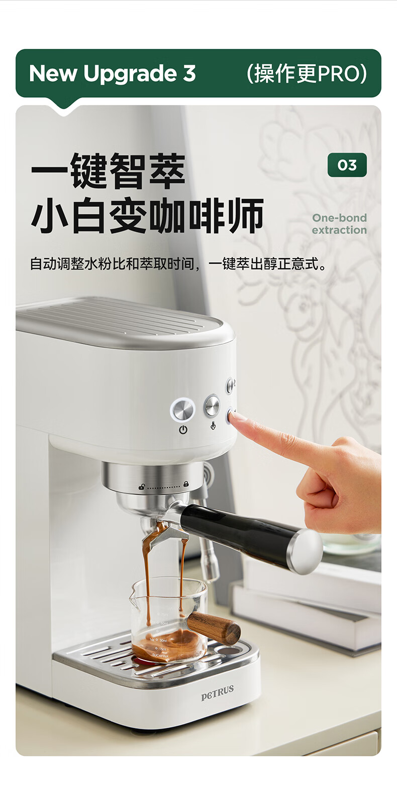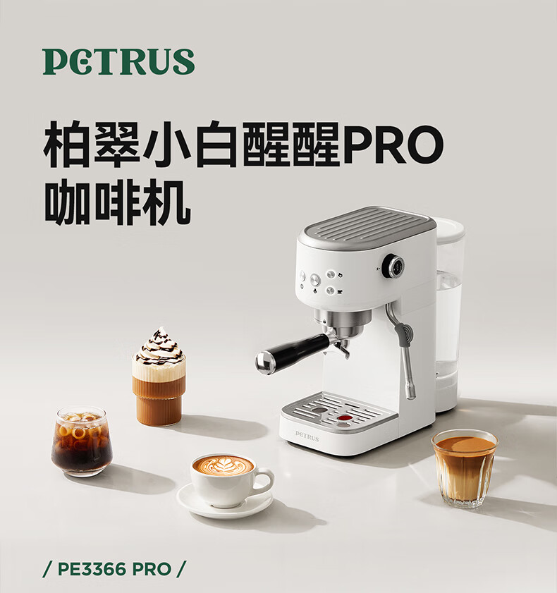 柏翠(petrus)咖啡机意式家用小型小白醒醒Pro复古迷你办公室用全半自动浓缩打奶泡一体机 PE3366Pro 节日送好物 小白醒醒Pro + PE3788磨豆机套装