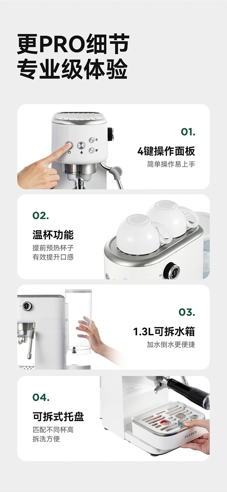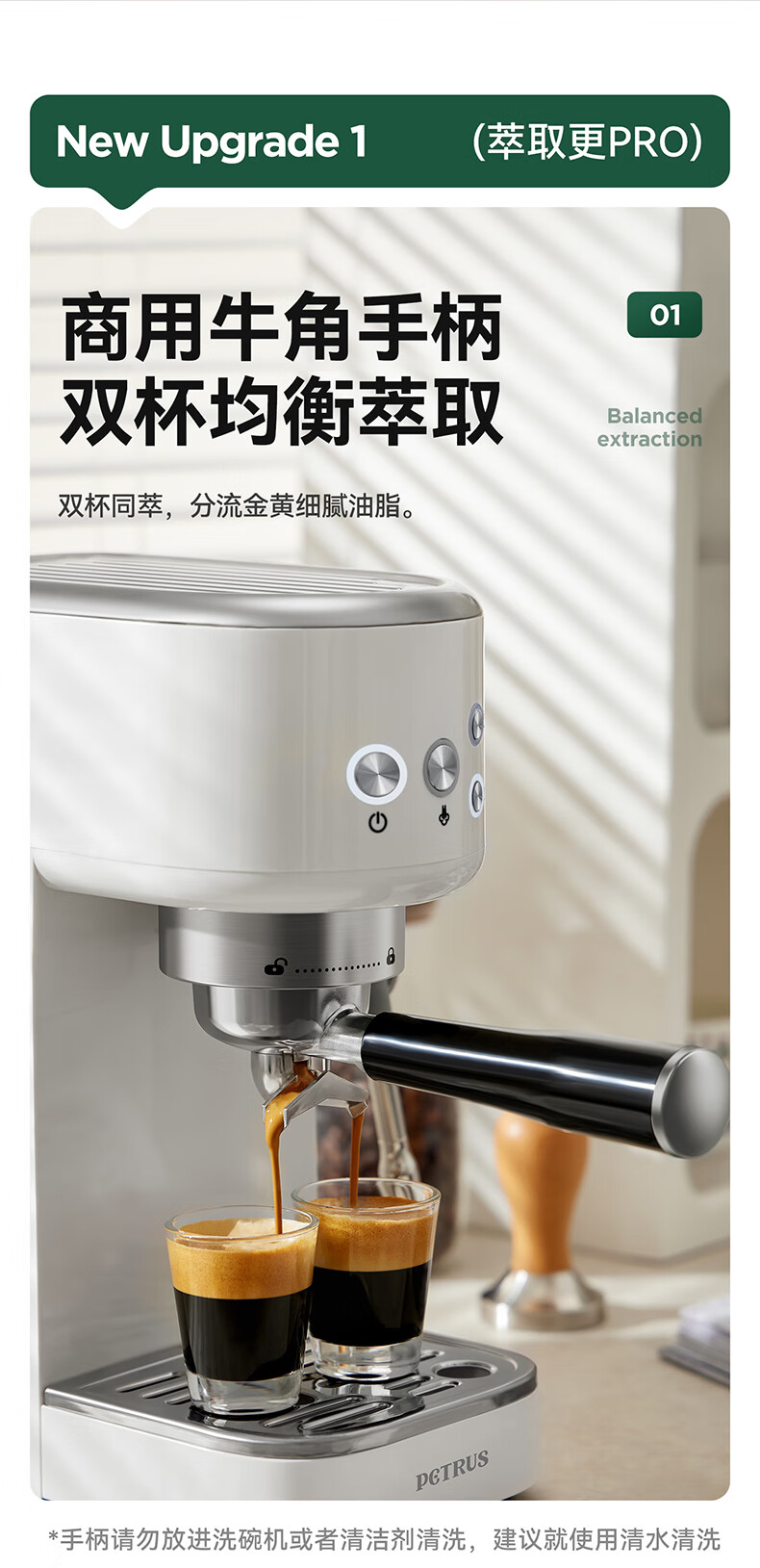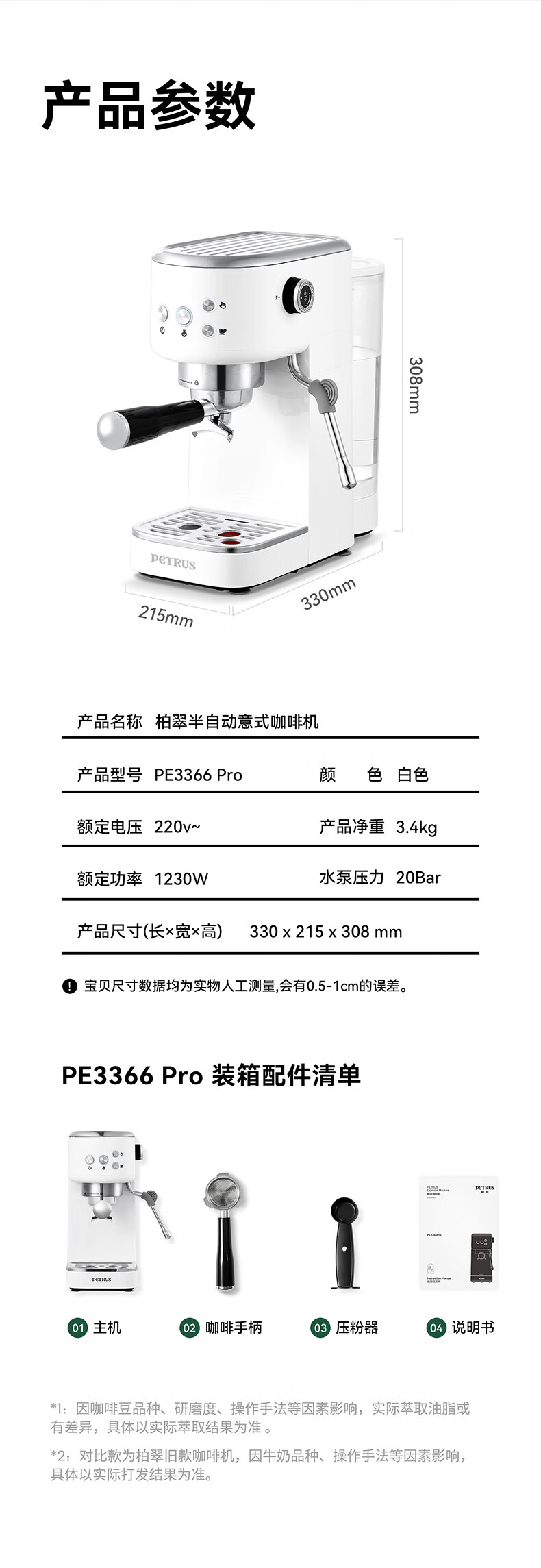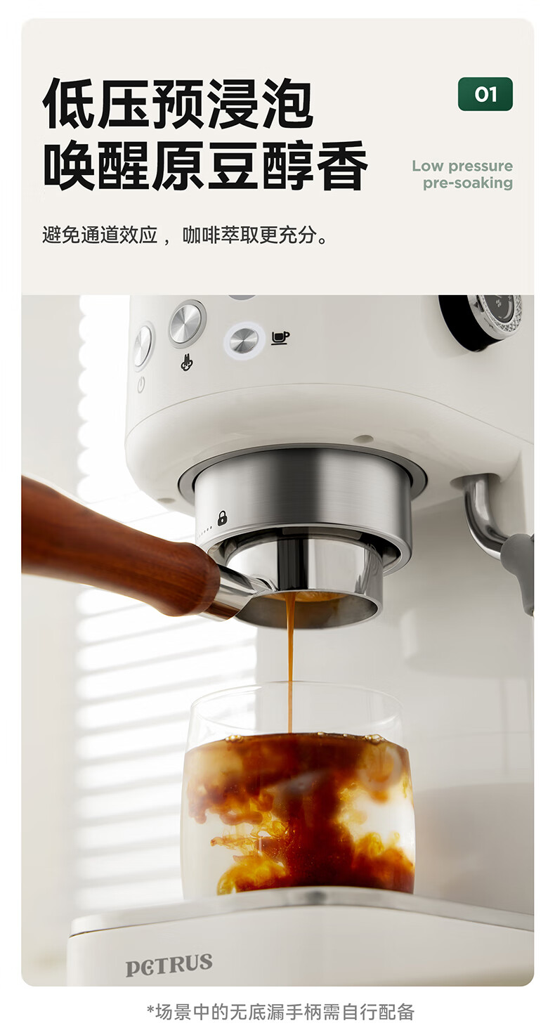 柏翠(petrus)咖啡机意式家用小型小白醒醒Pro复古迷你办公室用全半自动浓缩打奶泡一体机 PE3366Pro 节日送好物 小白醒醒Pro + PE3788磨豆机套装
