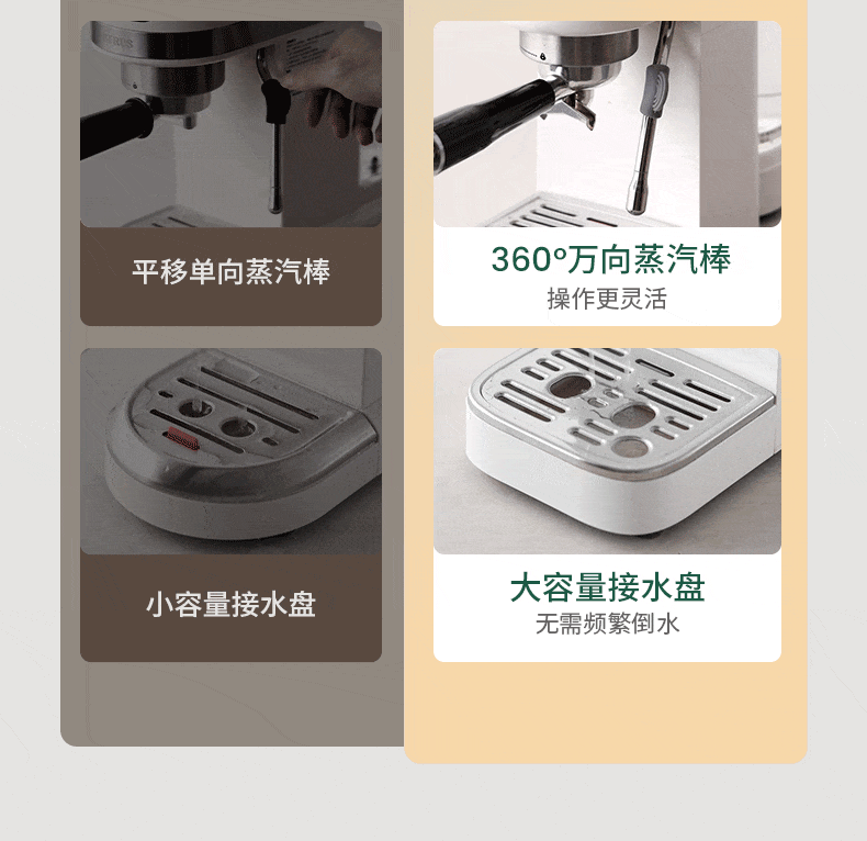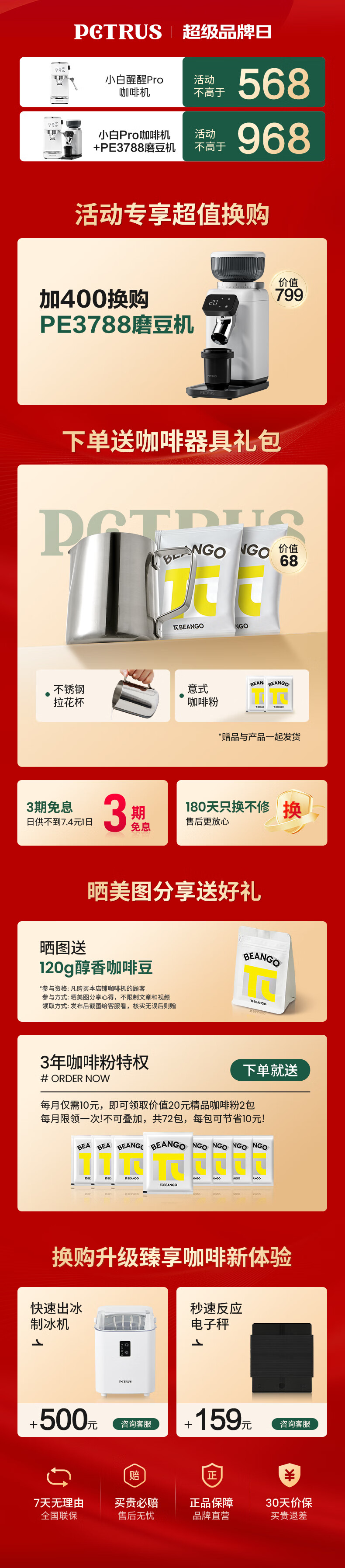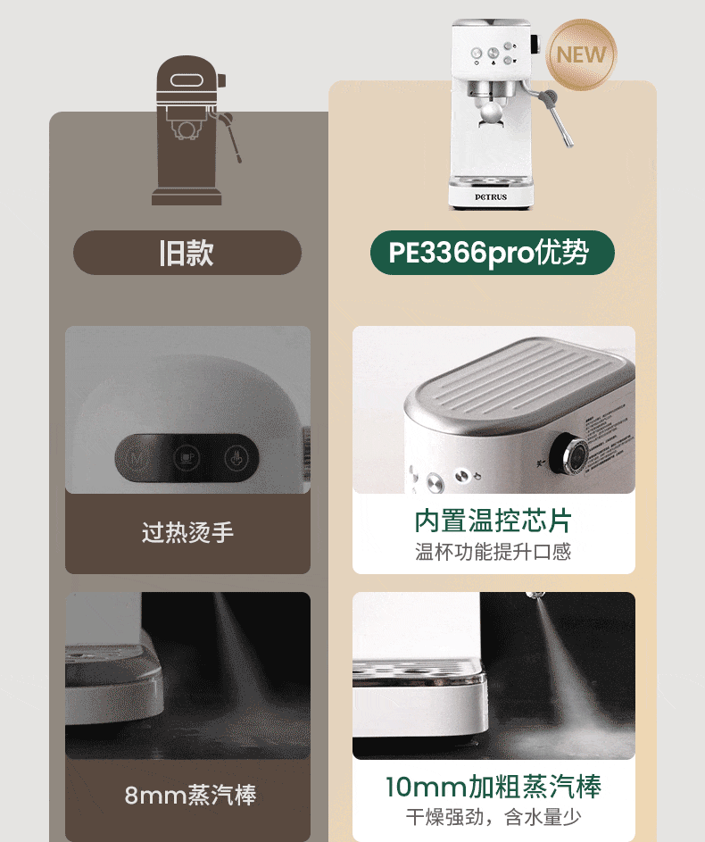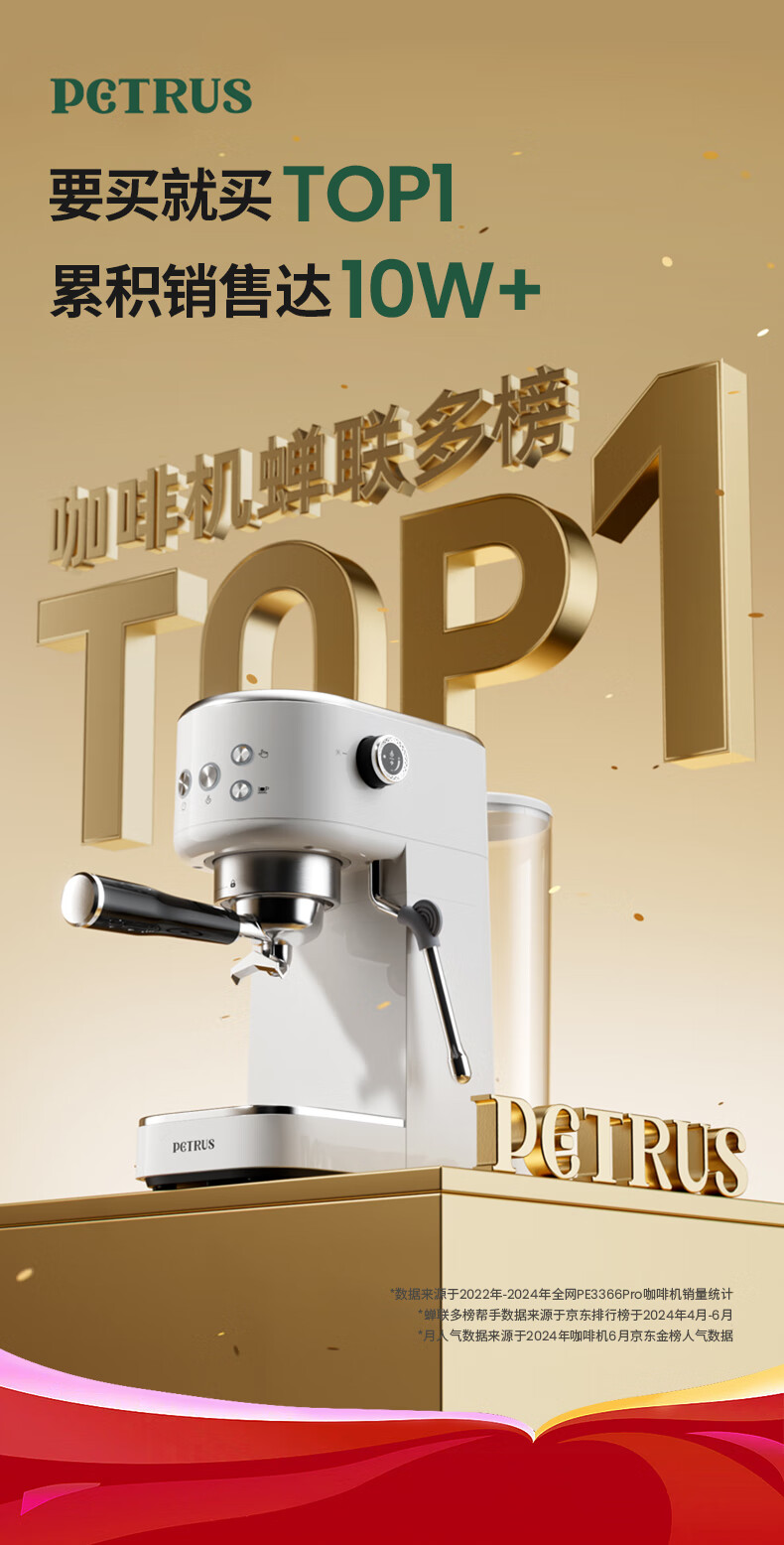柏翠(petrus)咖啡机意式家用小型小白醒醒Pro复古迷你办公室用全半自动浓缩打奶泡一体机 PE3366Pro 节日送好物 小白醒醒Pro + PE3788磨豆机套装