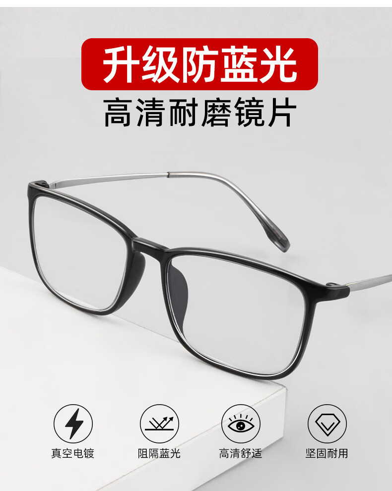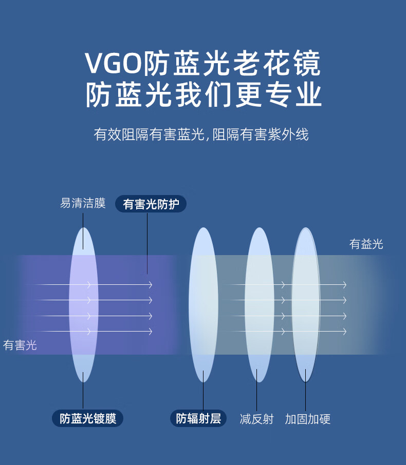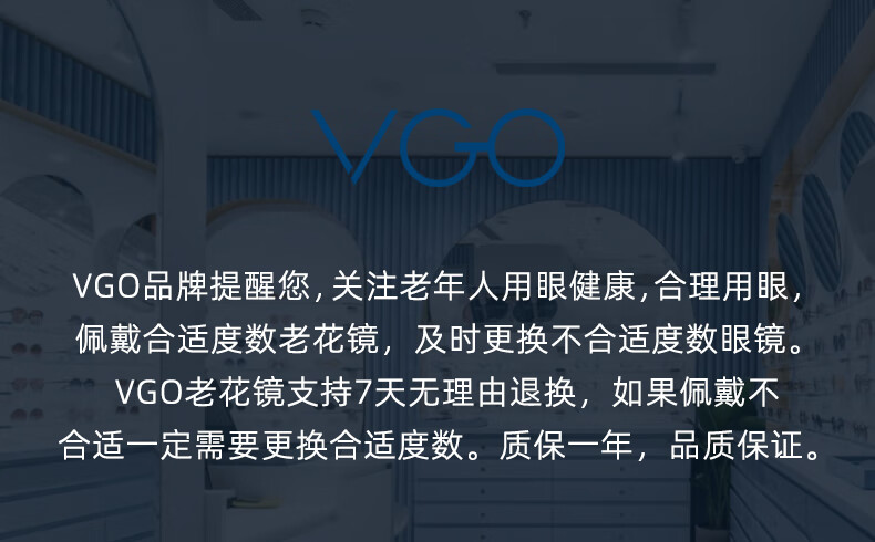 VGO老花镜男女通用时尚超轻高清防蓝光远光镜老年人眼镜201开学