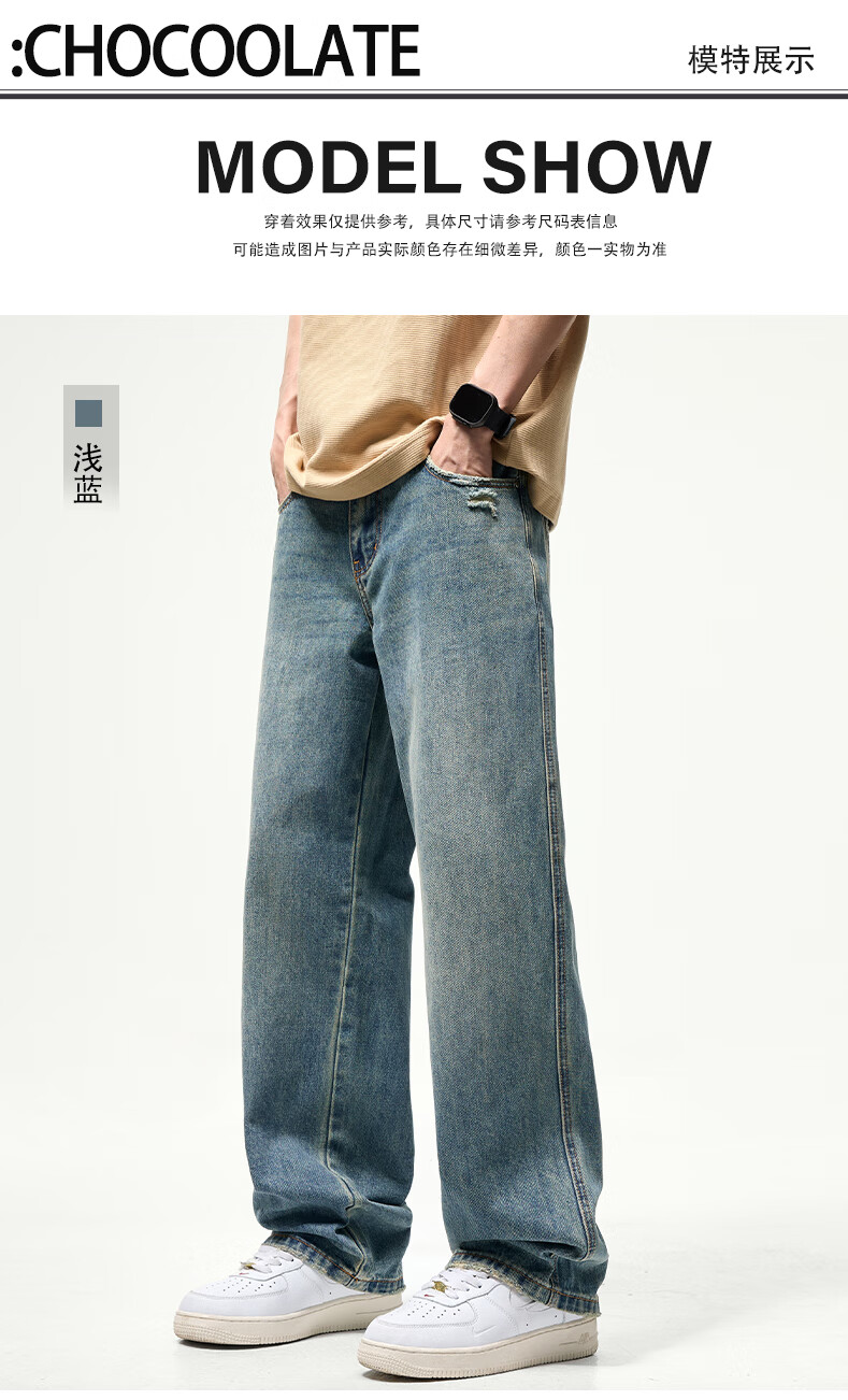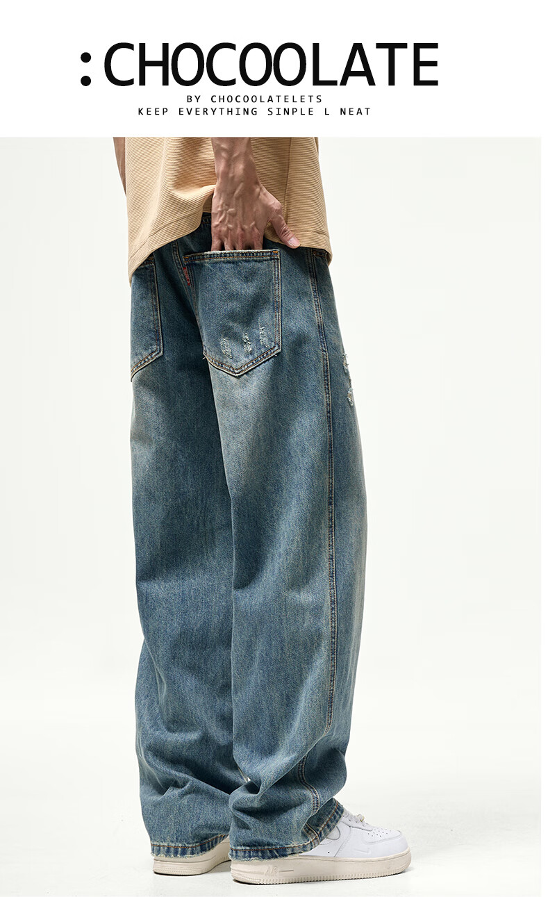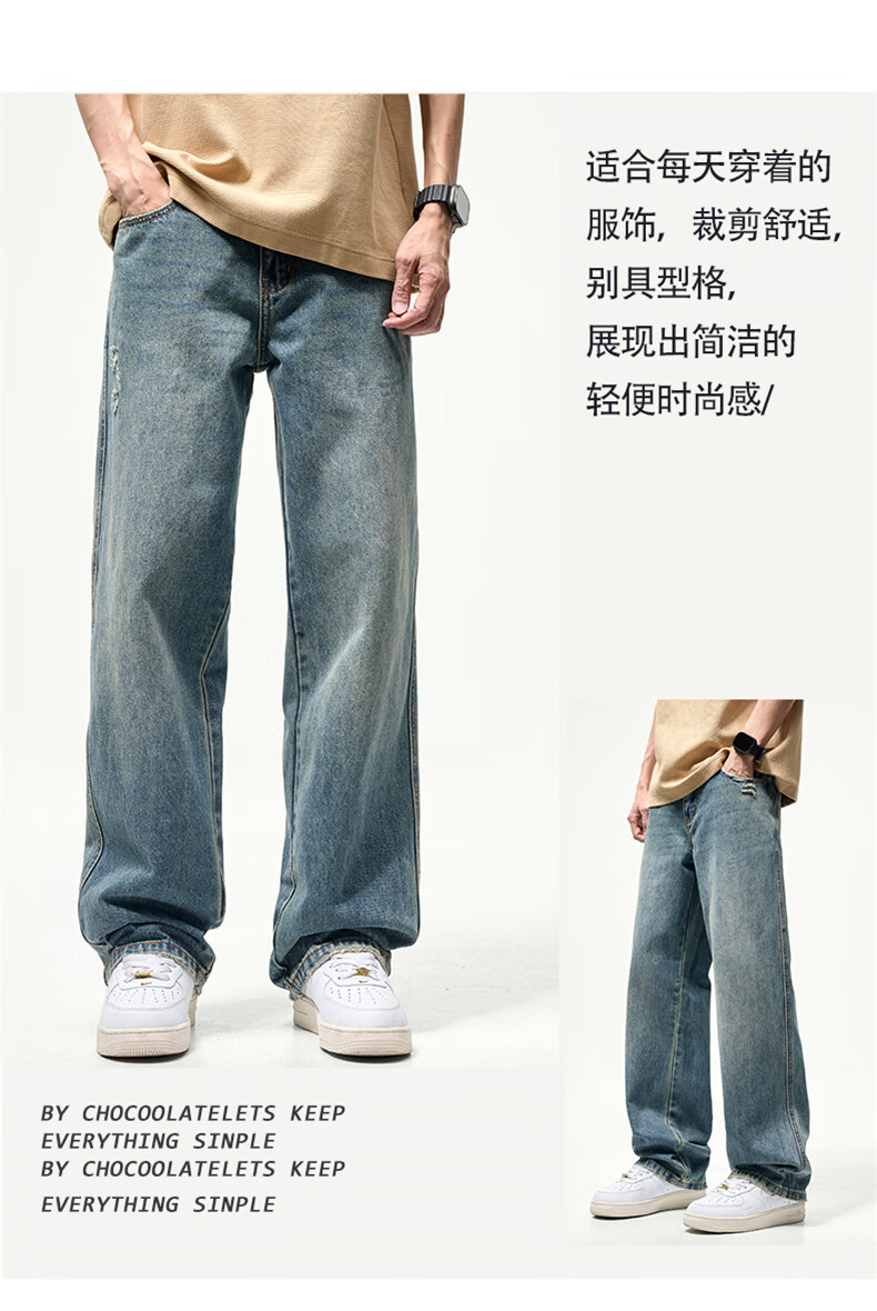 :CHOCOOLATEit美式复古牛仔裤男2025秋季新款潮流直筒宽松长裤子 浅蓝 32