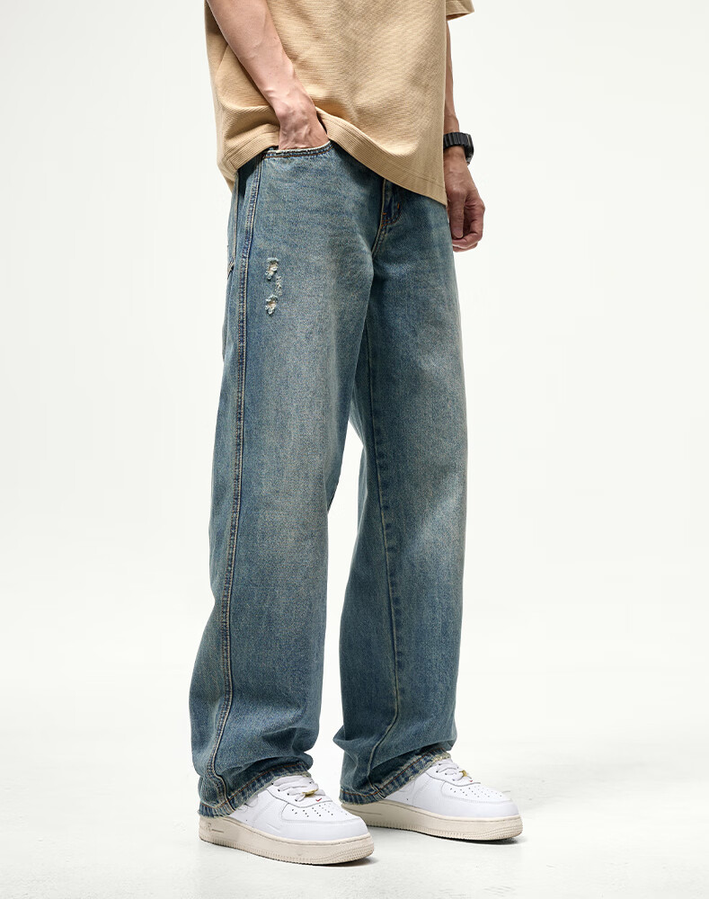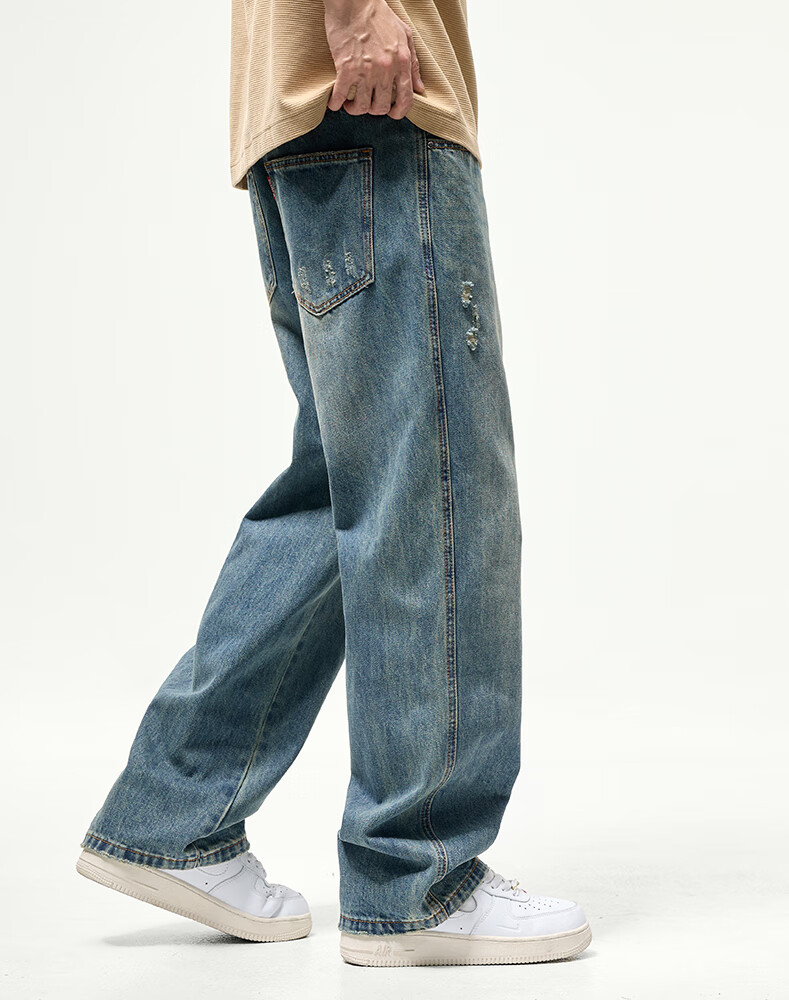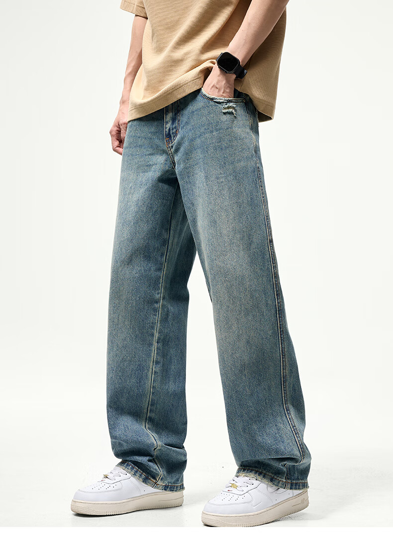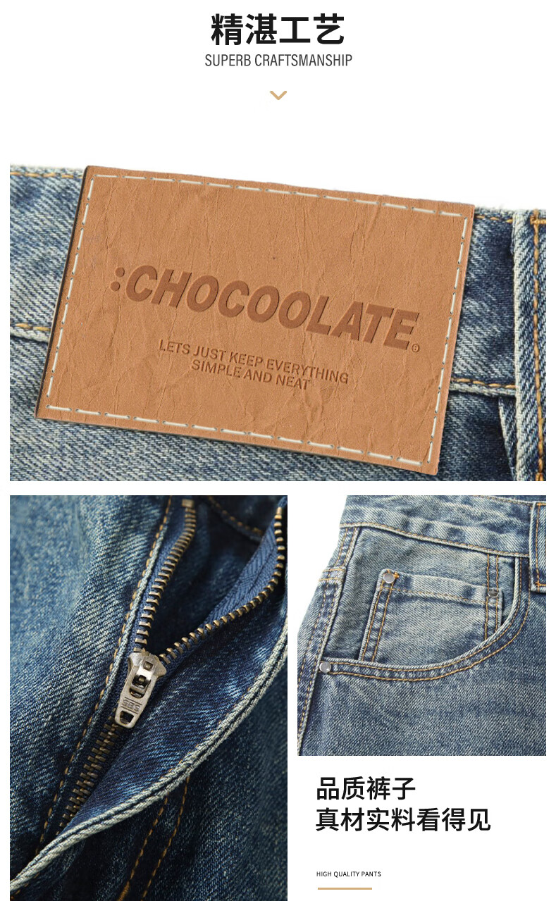 :CHOCOOLATEit美式复古牛仔裤男2025秋季新款潮流直筒宽松长裤子 浅蓝 32
