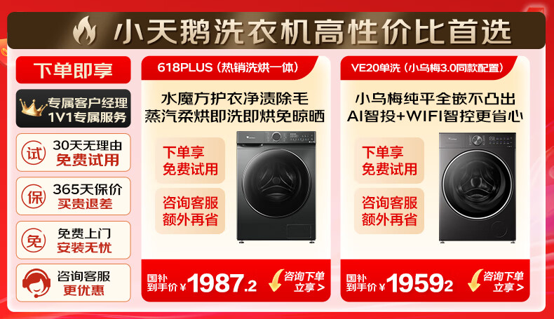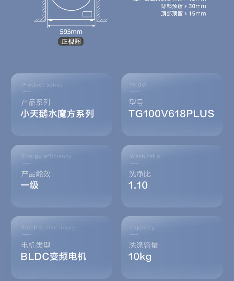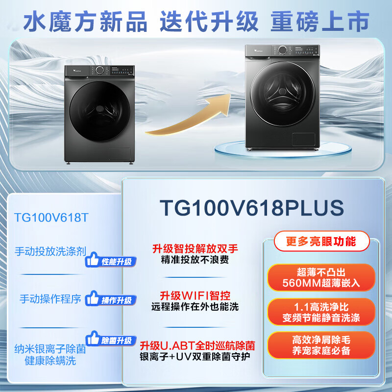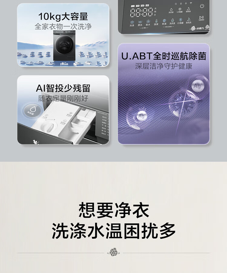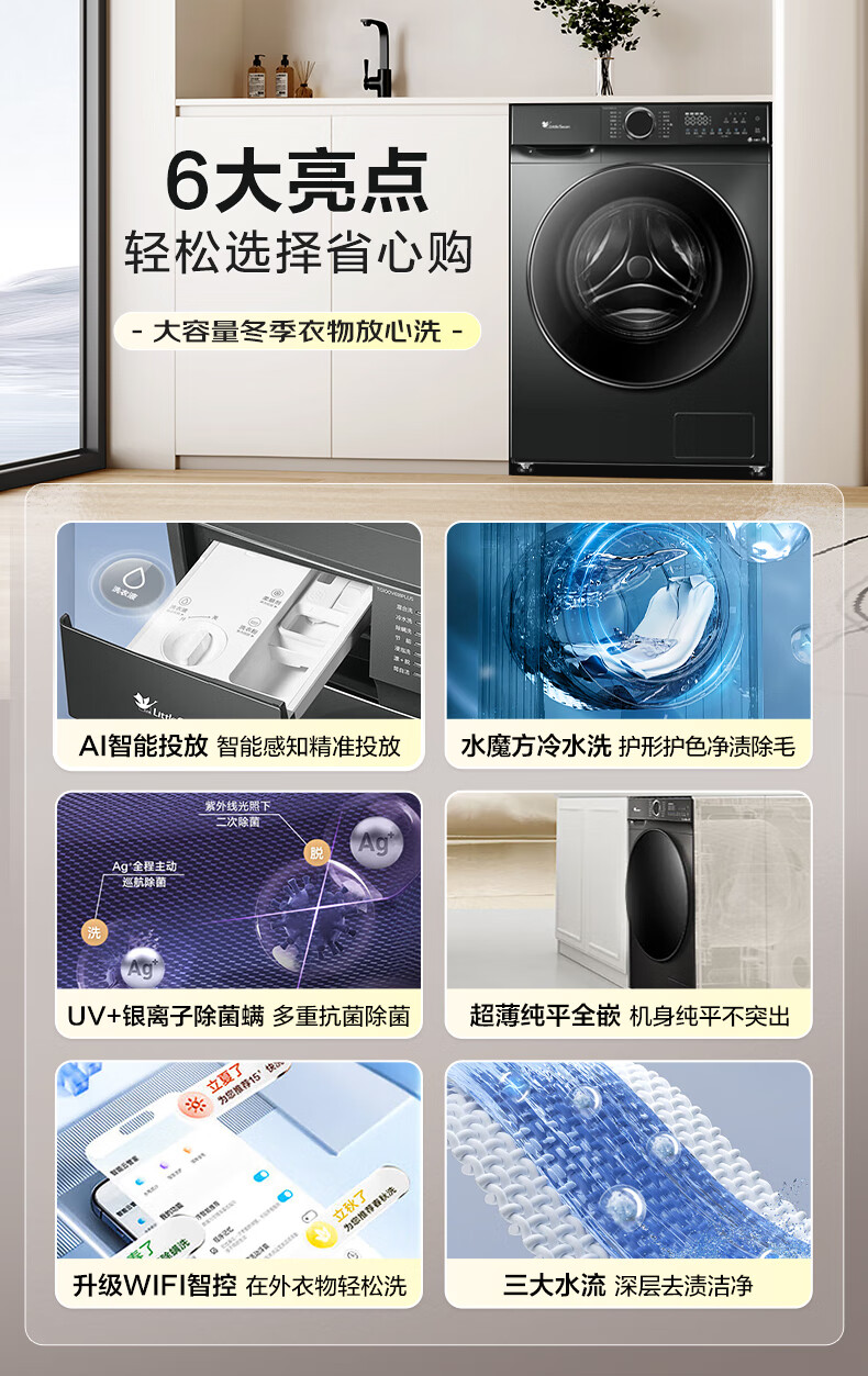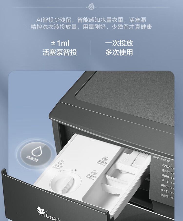 小天鹅(LittleSwan)滚筒洗衣机全自动家用 智投水魔方10公斤 TG100V618PLUS 纯平超薄 国家补贴20% 以旧换新 一级能效
