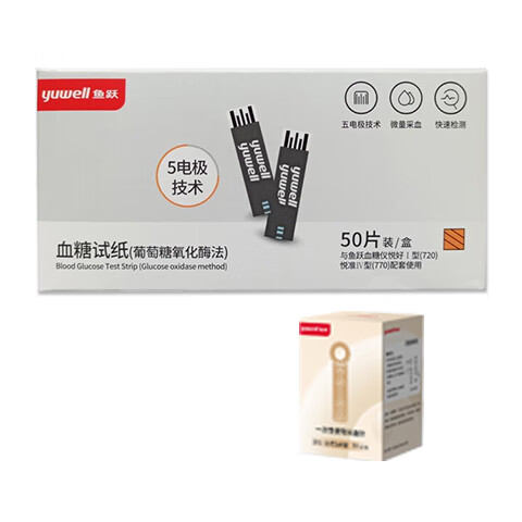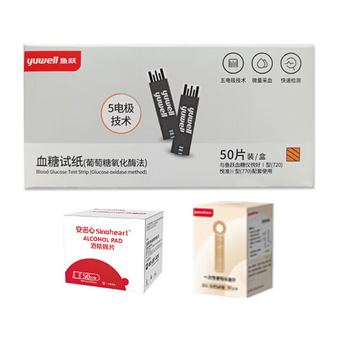 鱼跃720 770 740血糖仪试纸血糖测试条独立包装家用智能免调码 720/770血糖试纸50片+采血针+酒精棉