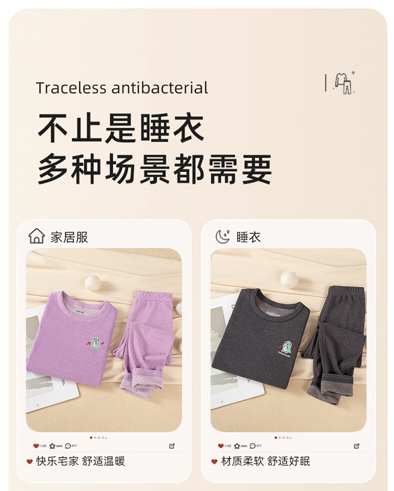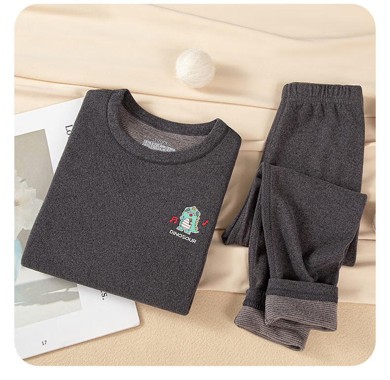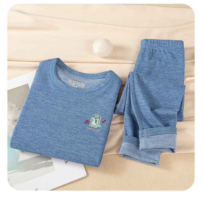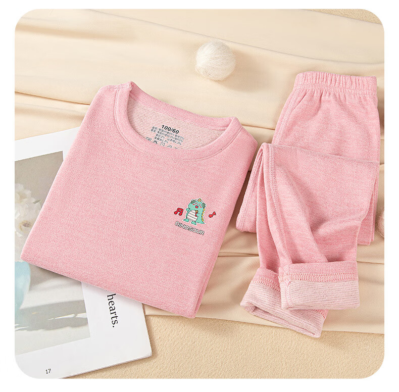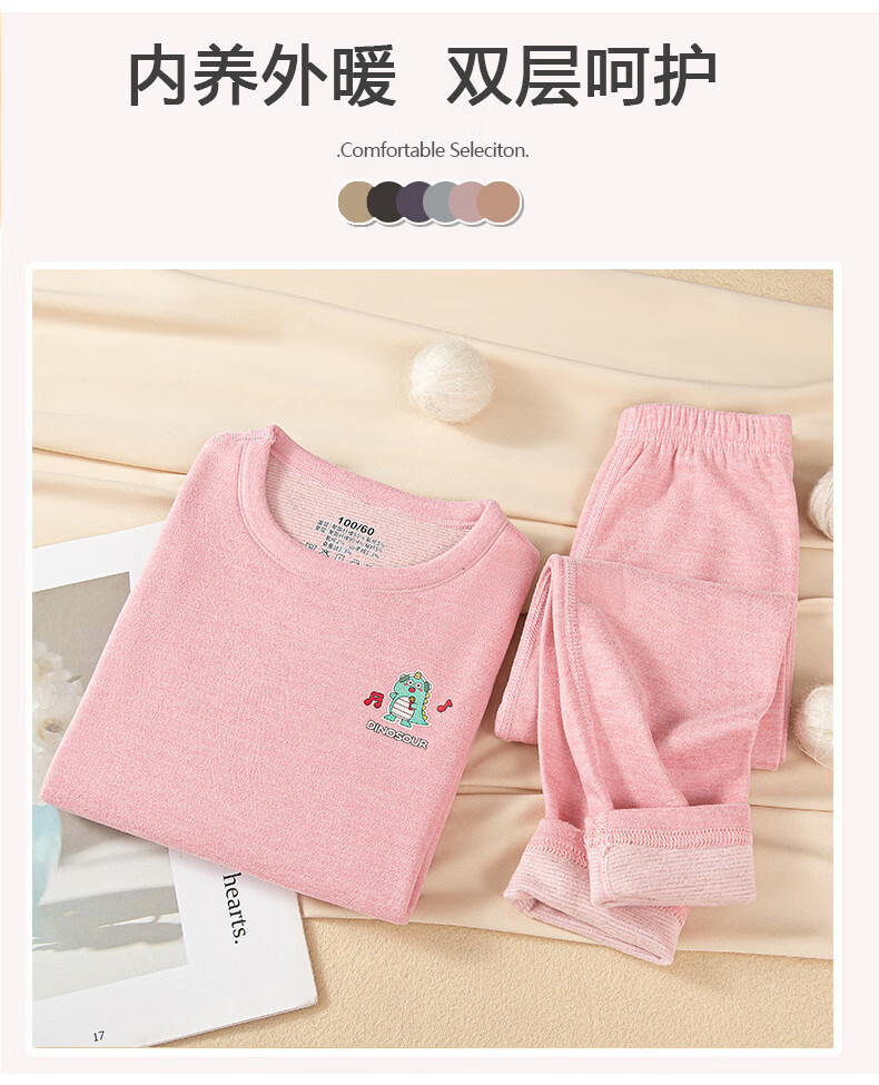 有只绵儿童保暖内衣套装羊绒蚕丝德双面绒磨毛男女童秋冬加厚两件套 山羊绒蚕丝恐龙紫色 均码 110cm