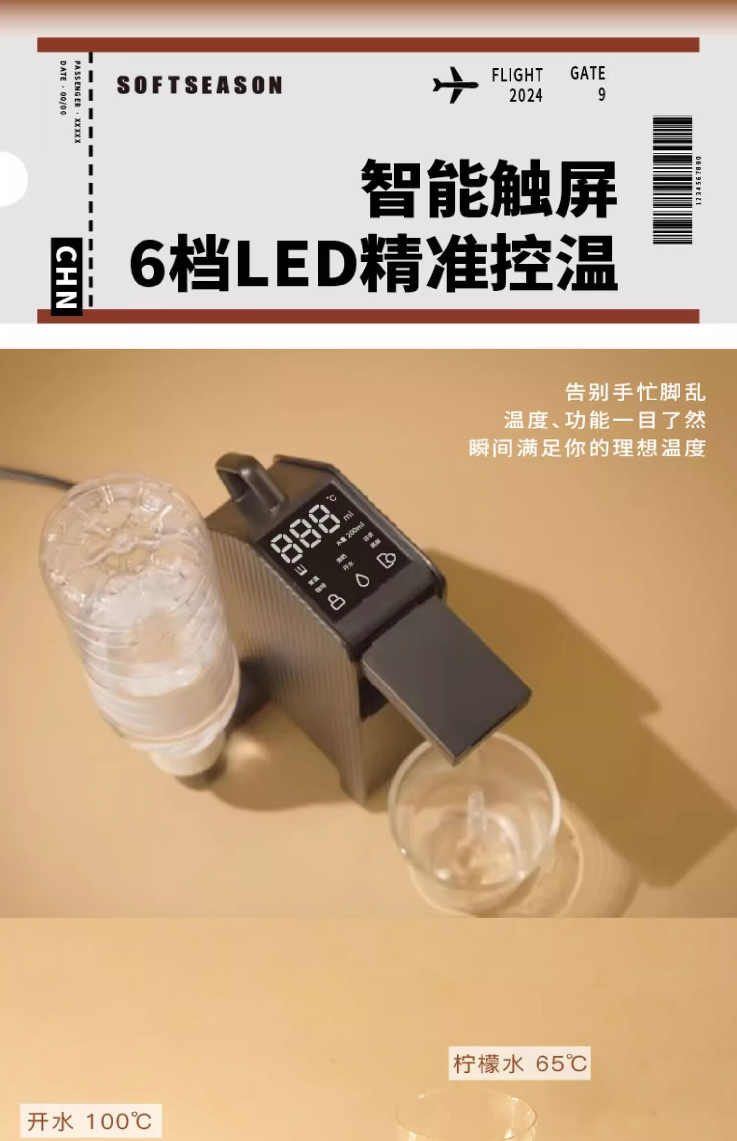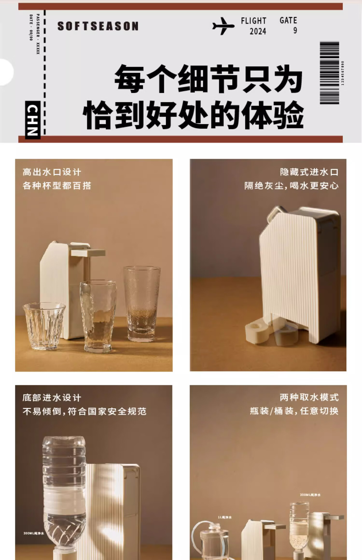 SOFT SEASON便携式即热饮水机 便携式烧水壶台式迷你茶吧机家用办公旅行折叠热水壶行李箱神器饮水机 【礼盒套装】月光白| 即热型