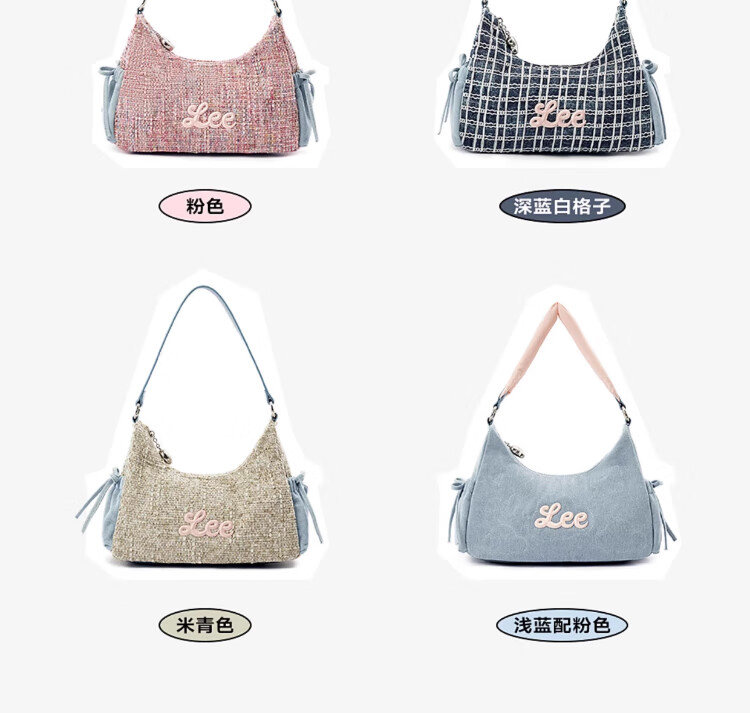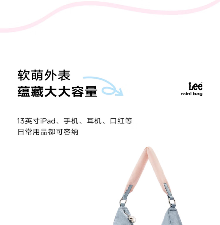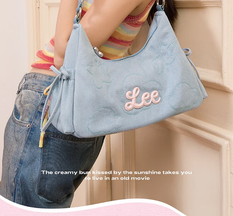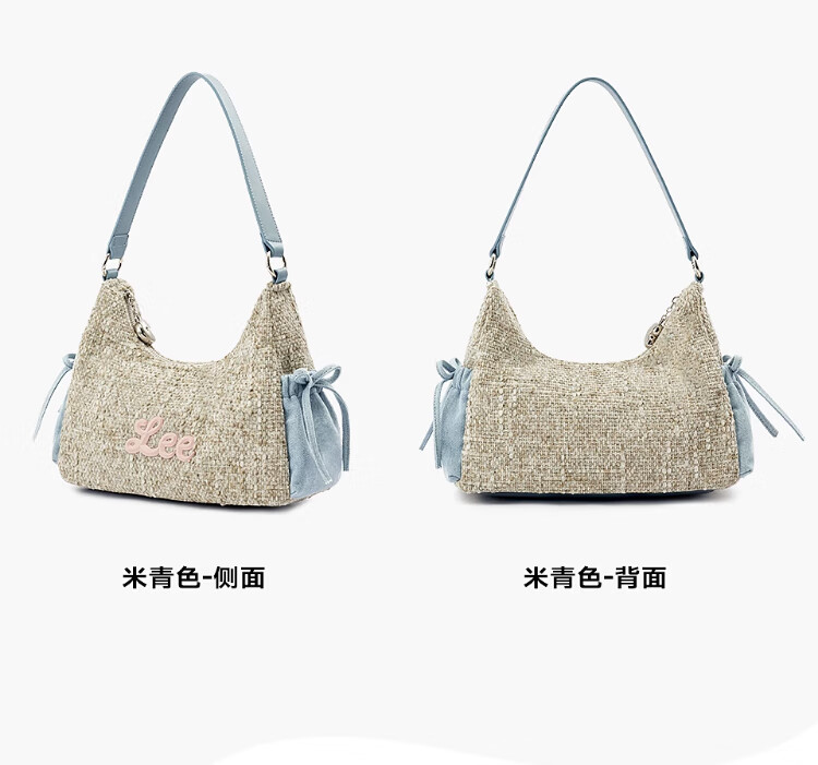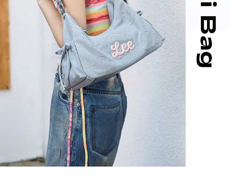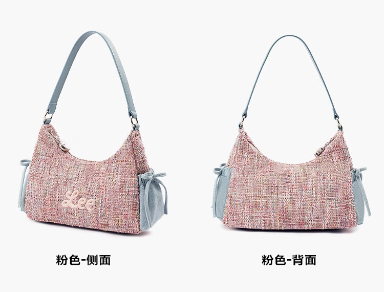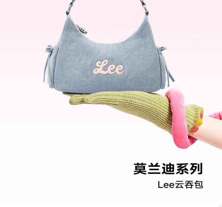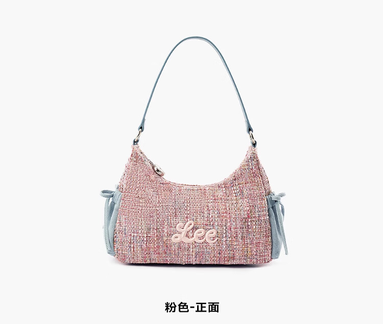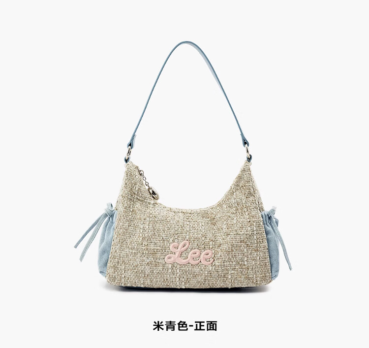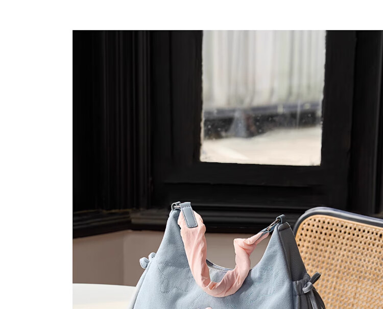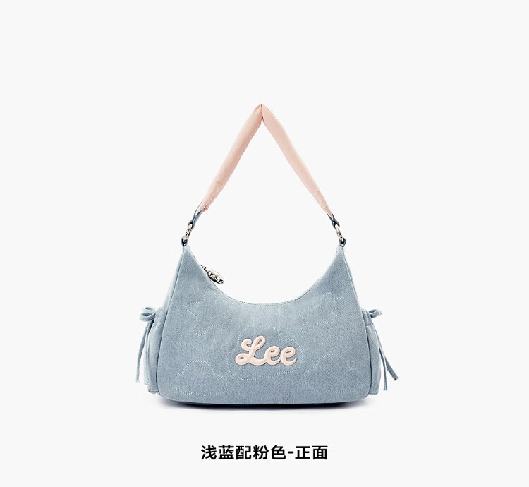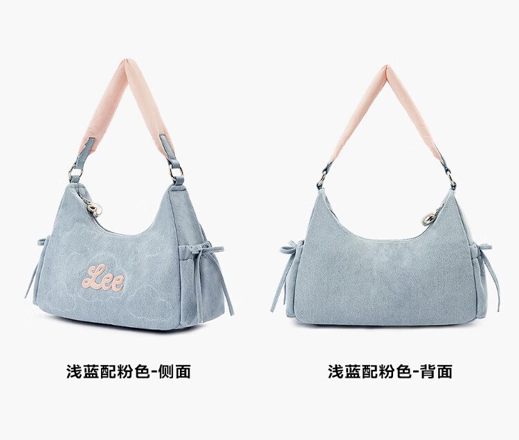 LEE2025新款云吞包手提单肩托特腋下饺子月牙女包上课通勤大学生书包 浅蓝配粉色