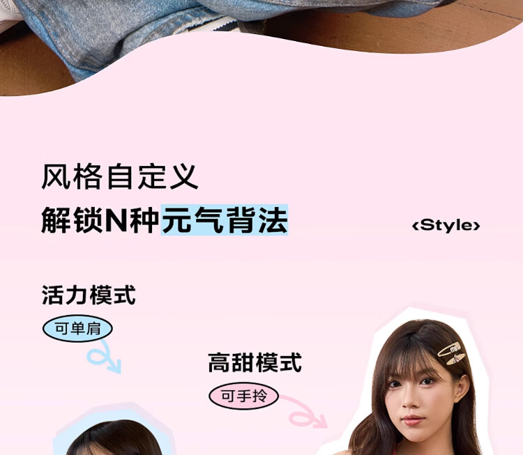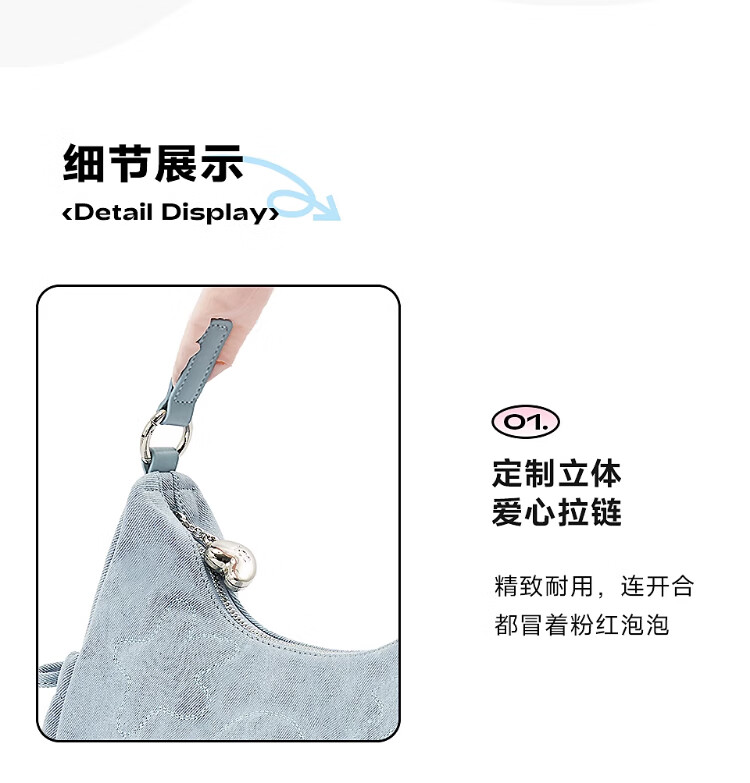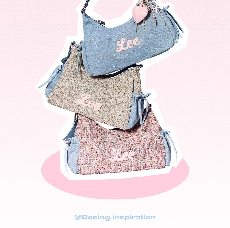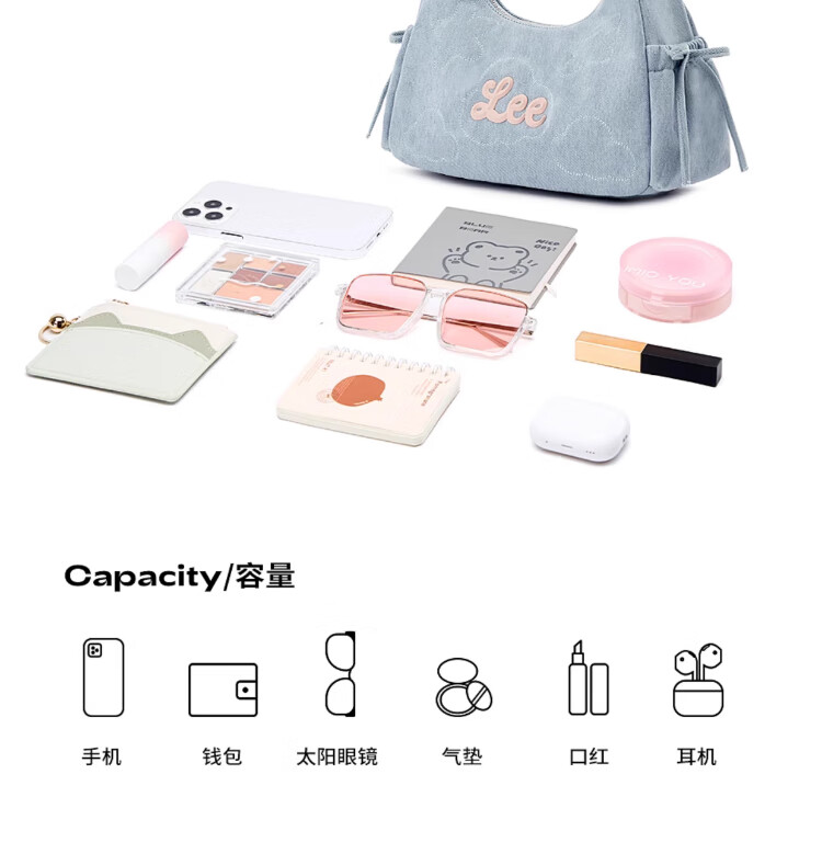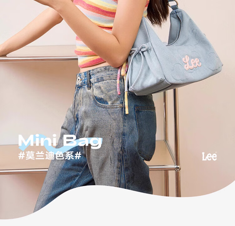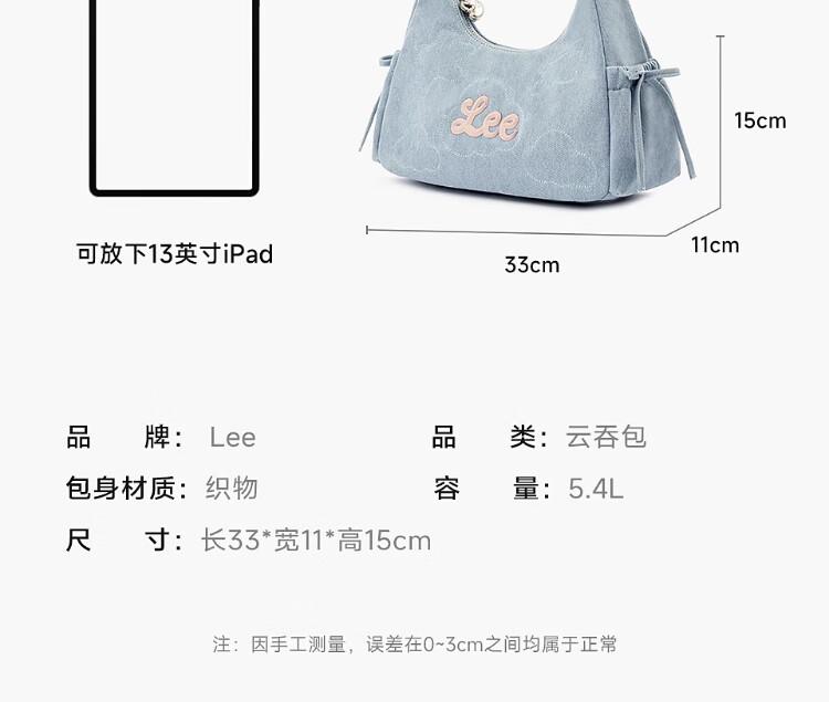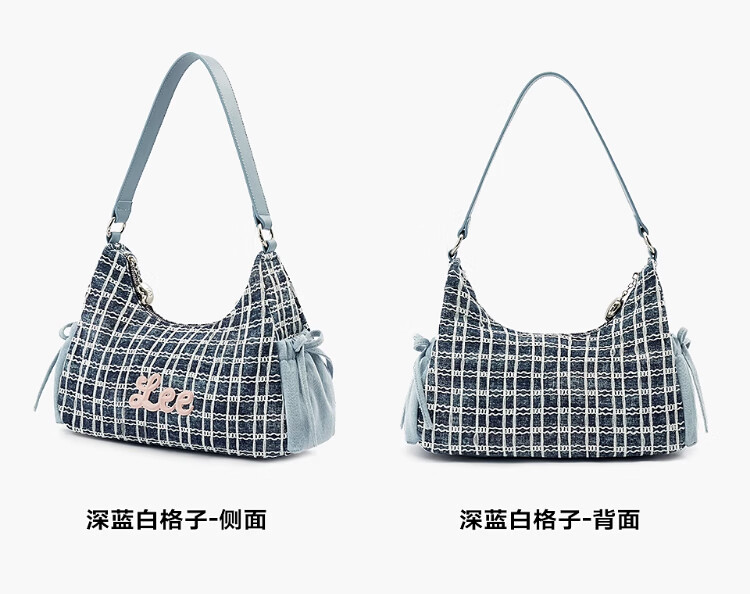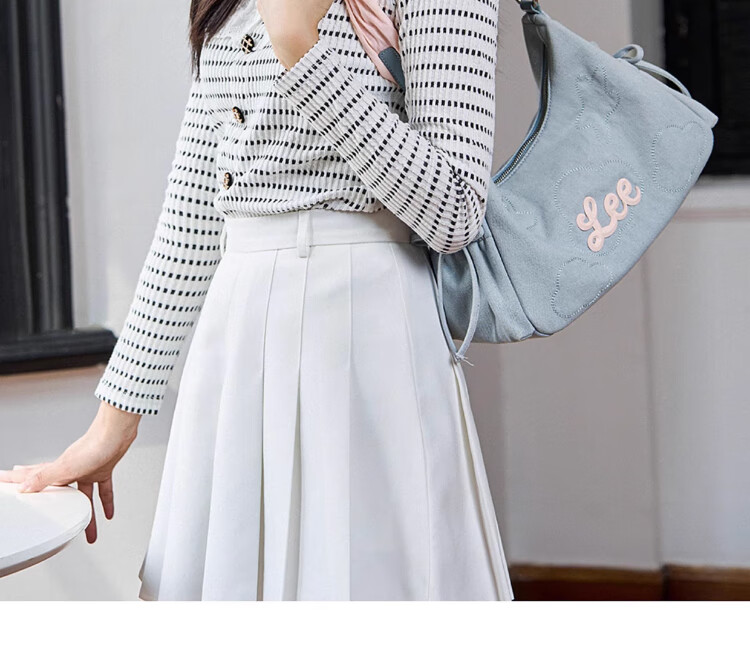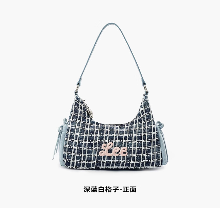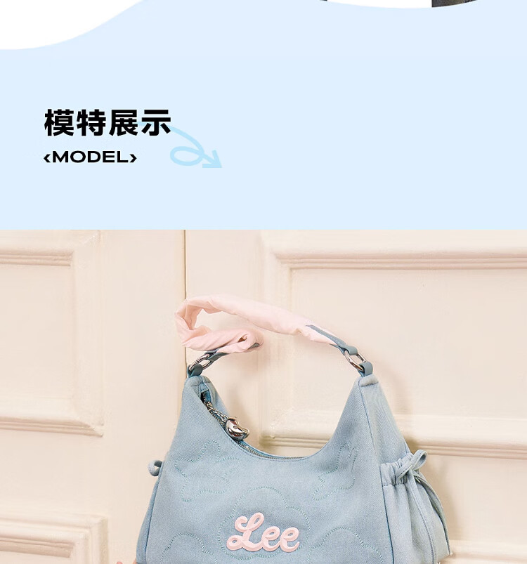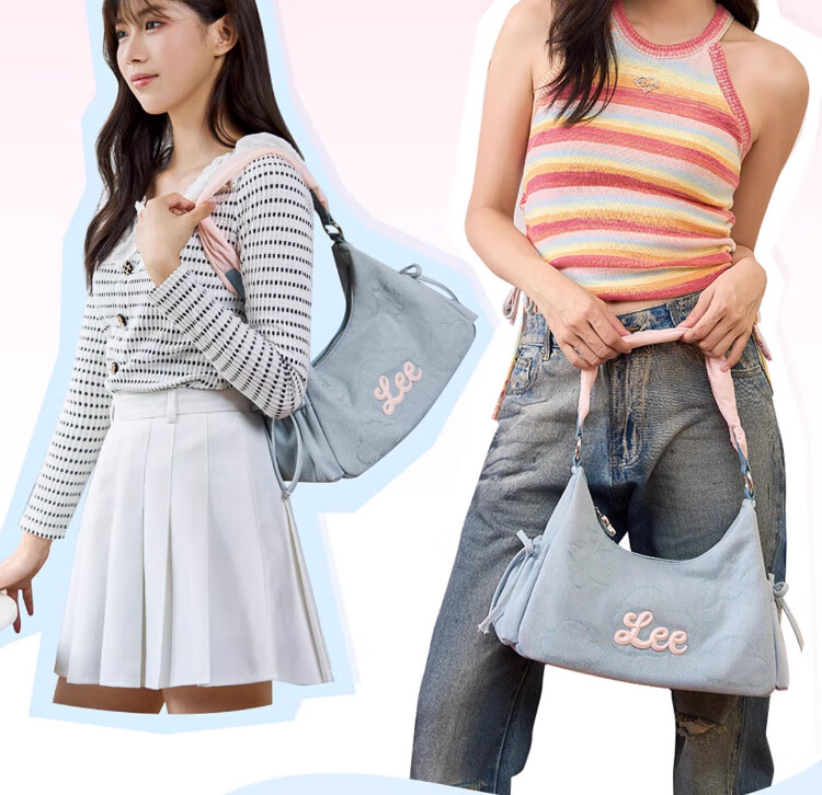 LEE2025新款云吞包手提单肩托特腋下饺子月牙女包上课通勤大学生书包 浅蓝配粉色