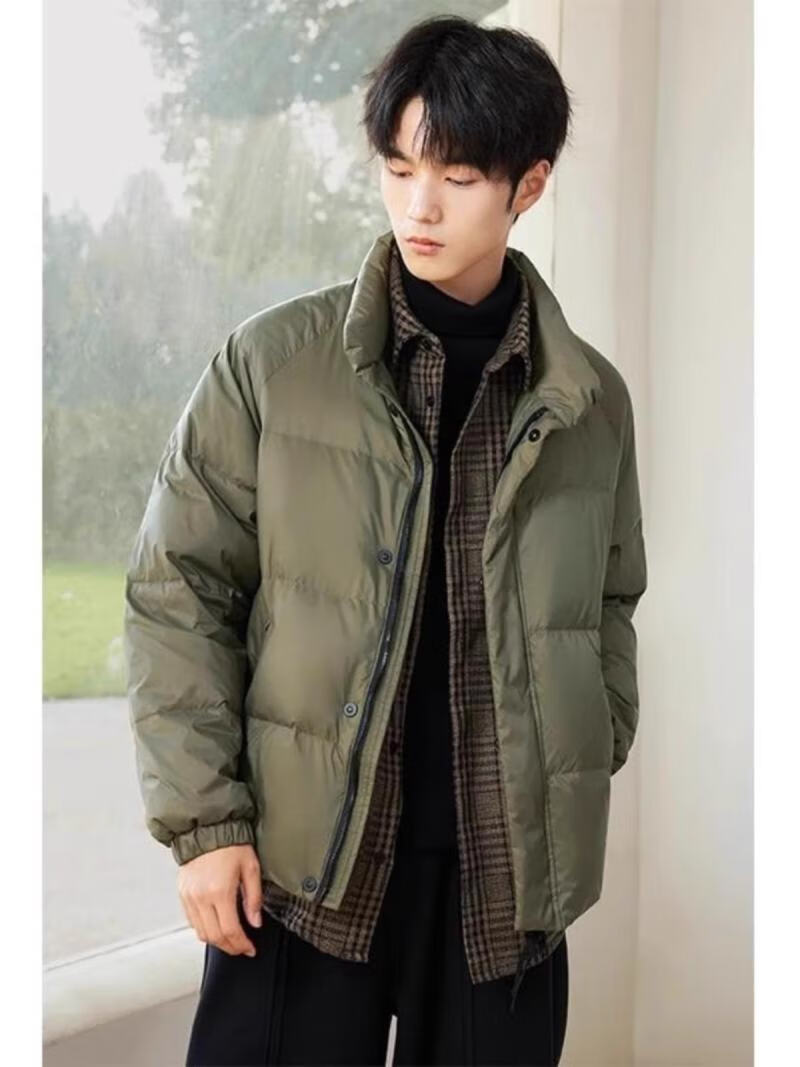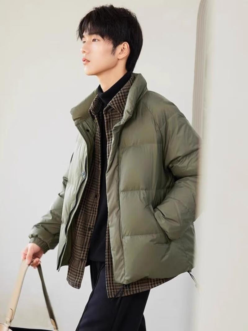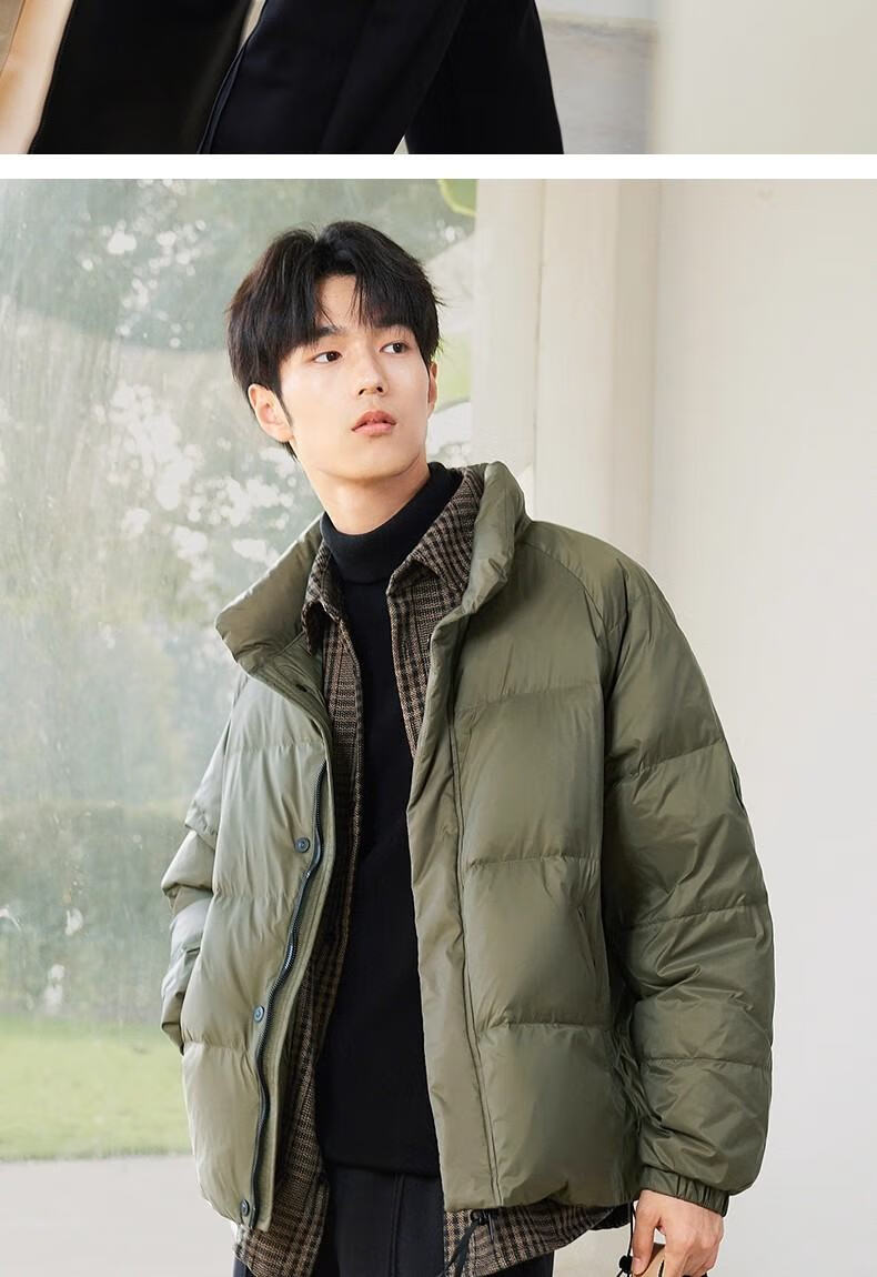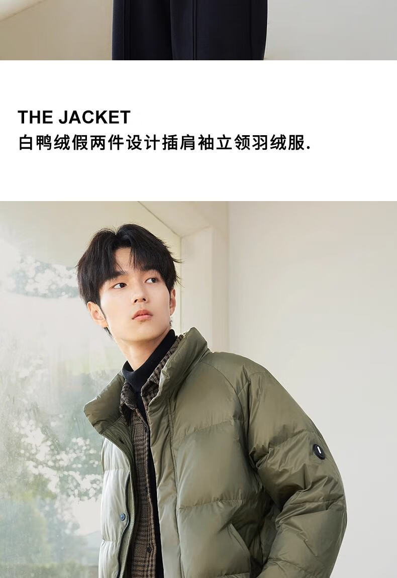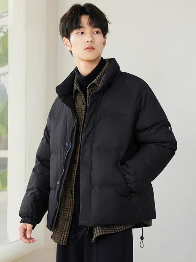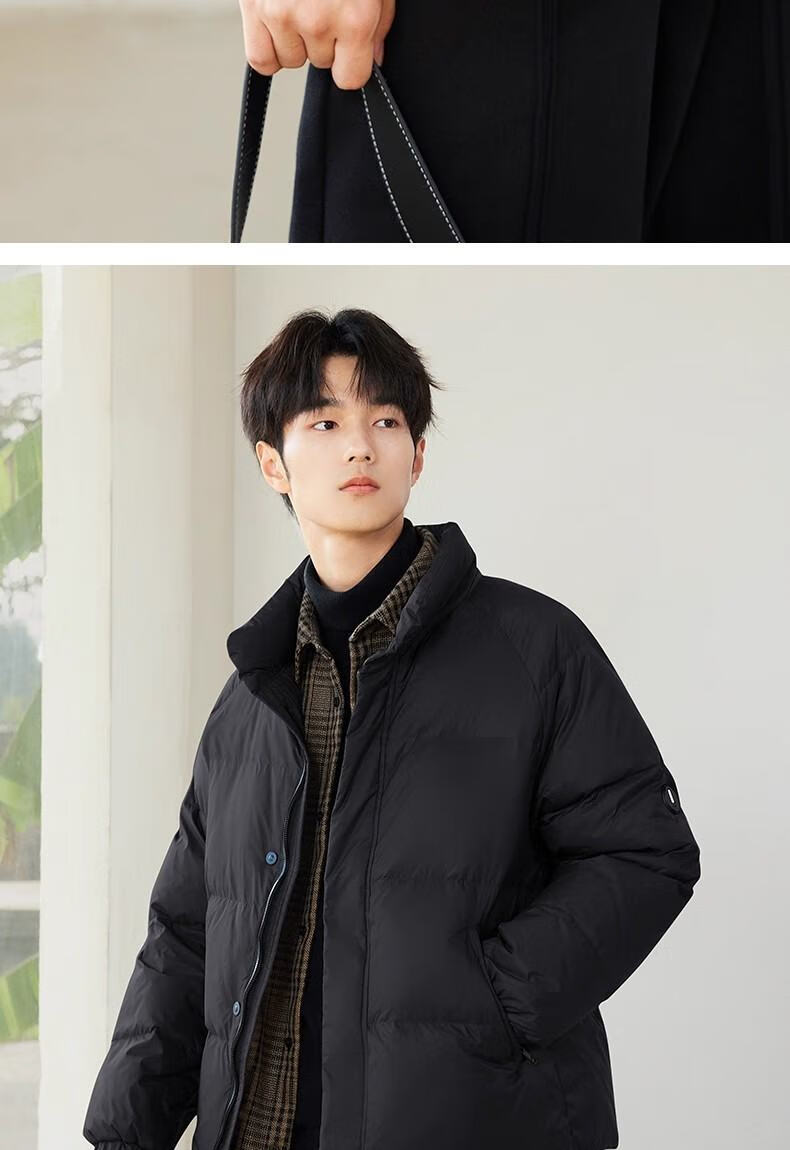 罗蒙(ROMON)假两件羽绒服男短款夹克秋冬季2025新款轻薄保暖加厚鸭绒男装外套 黑色 3XL