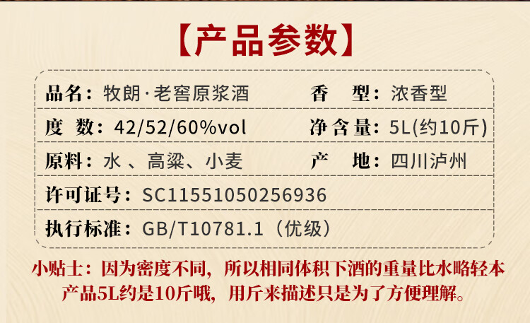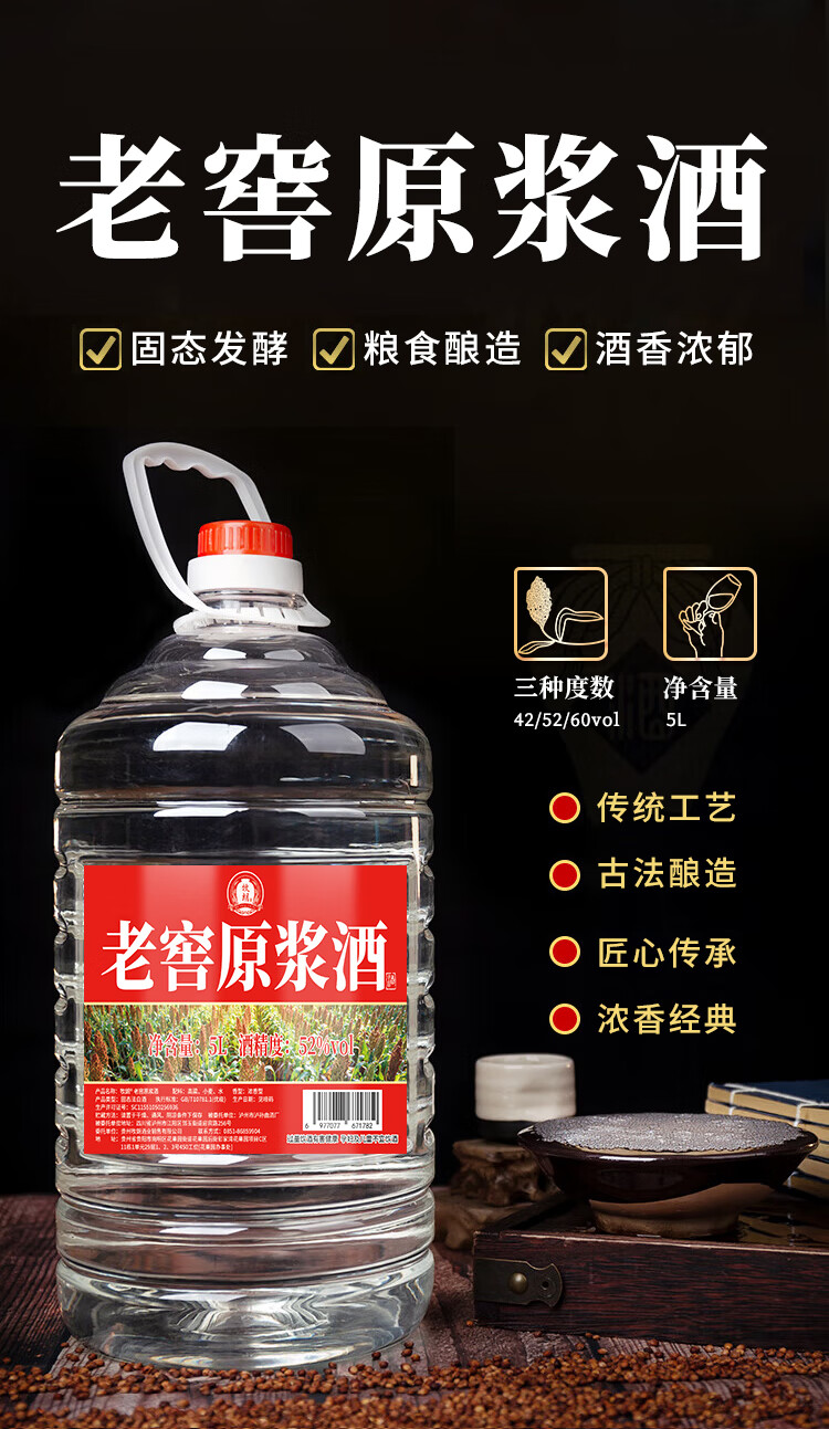 牧朗纯粮食白酒桶装高梁酒泡酒四川浓香型52度60度约十斤原浆白酒散装 52度 5L 1桶 原浆酒 自饮/泡酒皆可