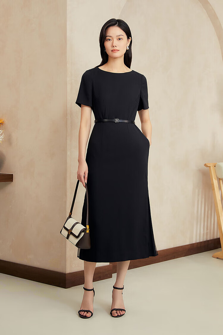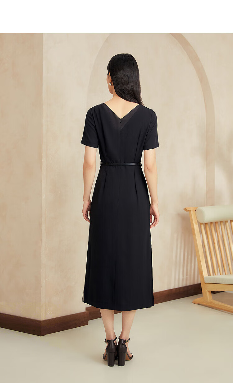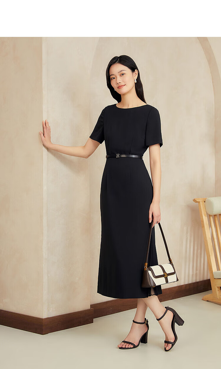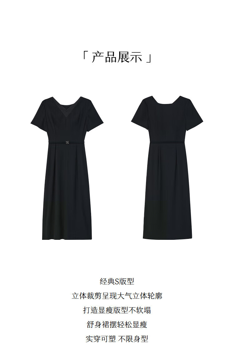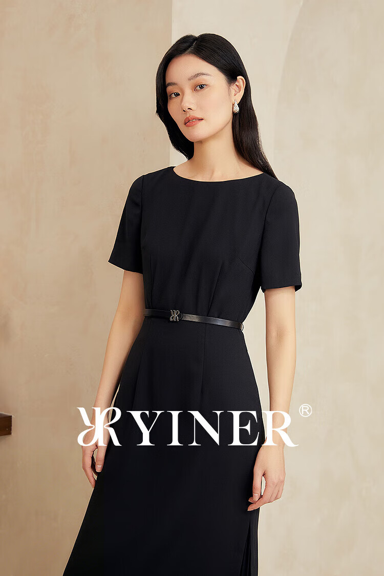 YINER音儿2025年夏季女装【醋酸系列】法式小黑裙通勤收腰连衣裙 黑色 XL 42