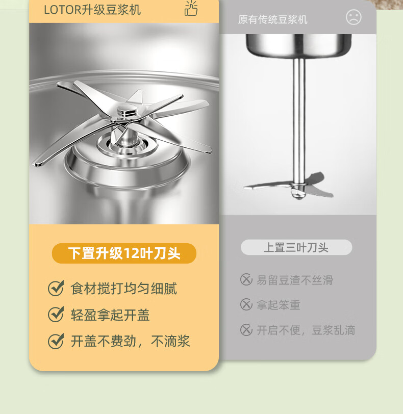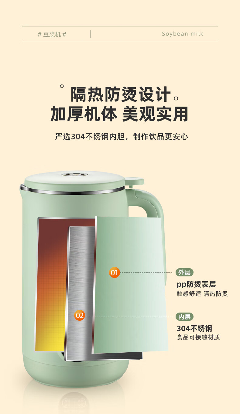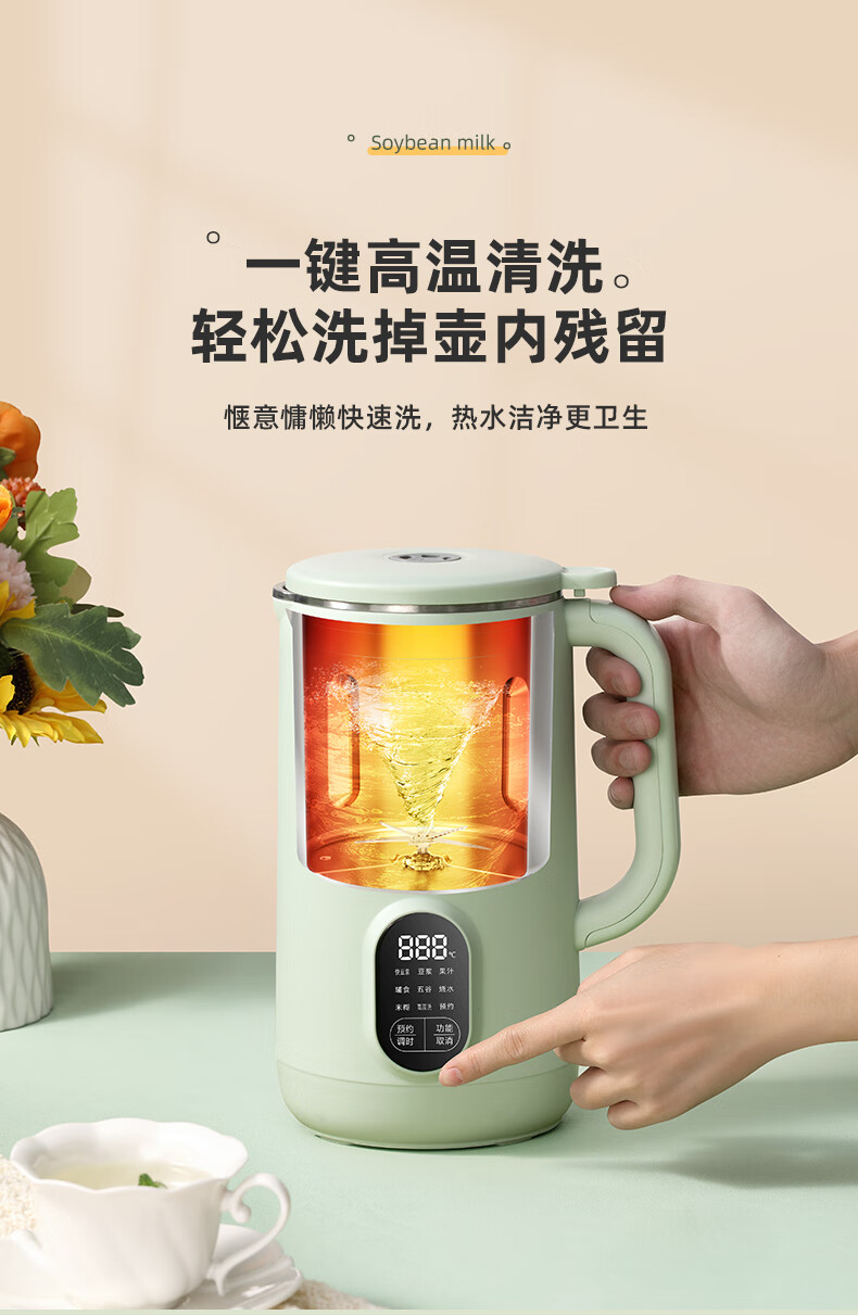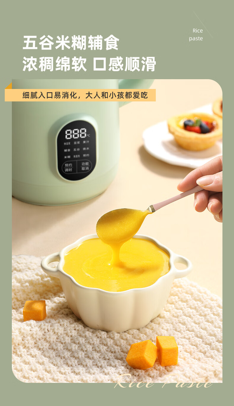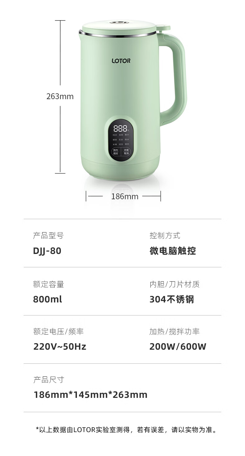LOTOR迷你豆浆机家用小型破壁机五谷杂粮全自动免过滤1-2人食3米糊榨汁机 绿色 1L 大屏款