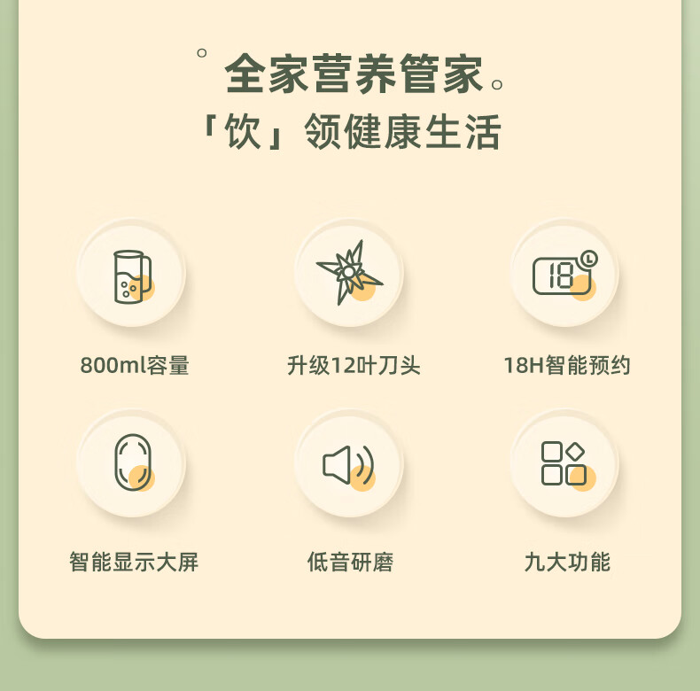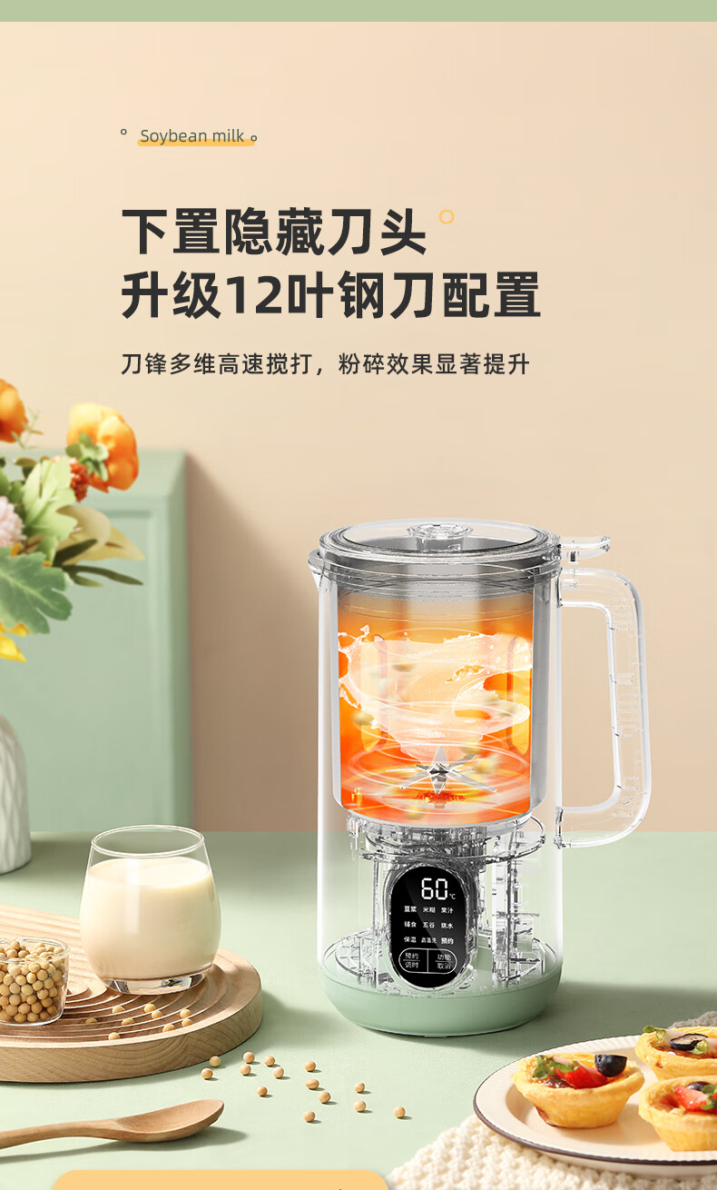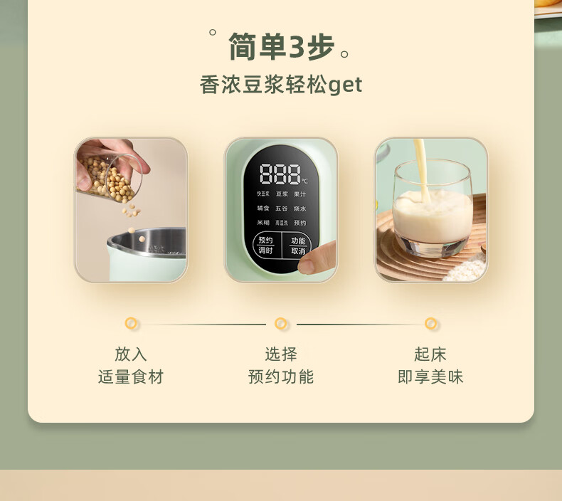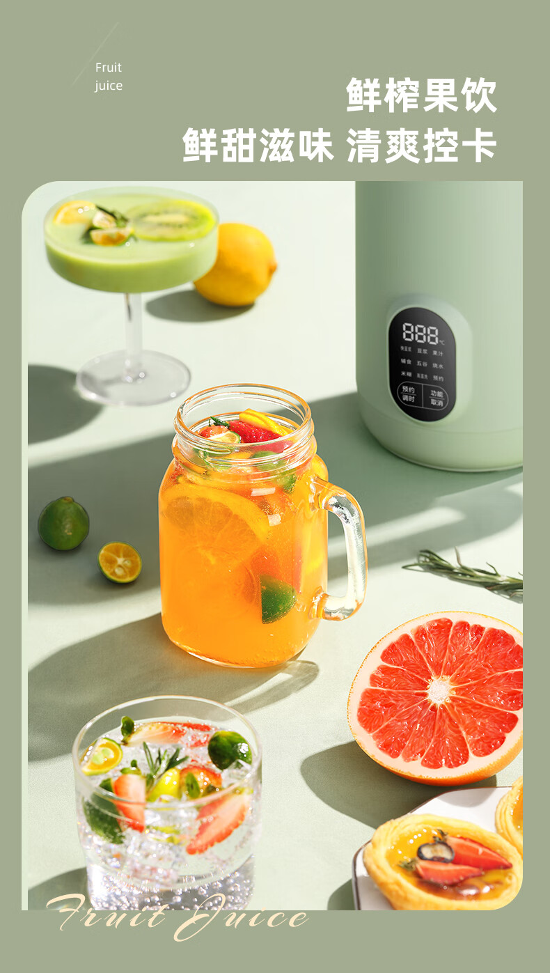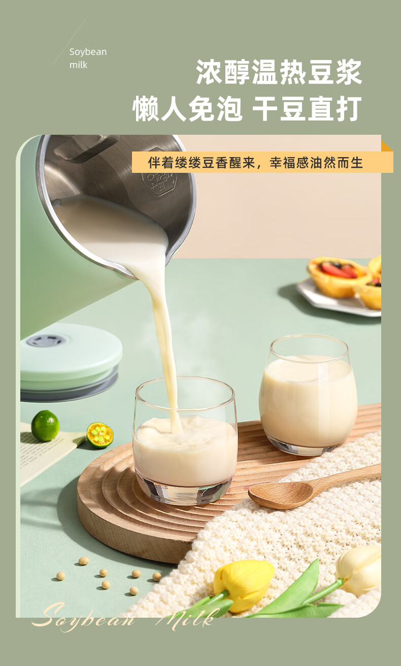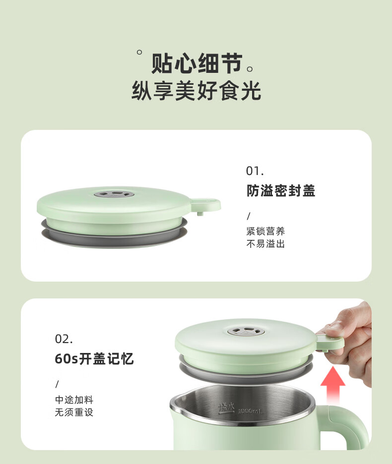 LOTOR迷你豆浆机家用小型破壁机五谷杂粮全自动免过滤1-2人食3米糊榨汁机 绿色 1L 大屏款