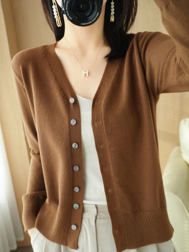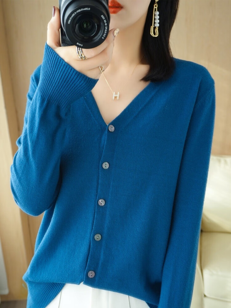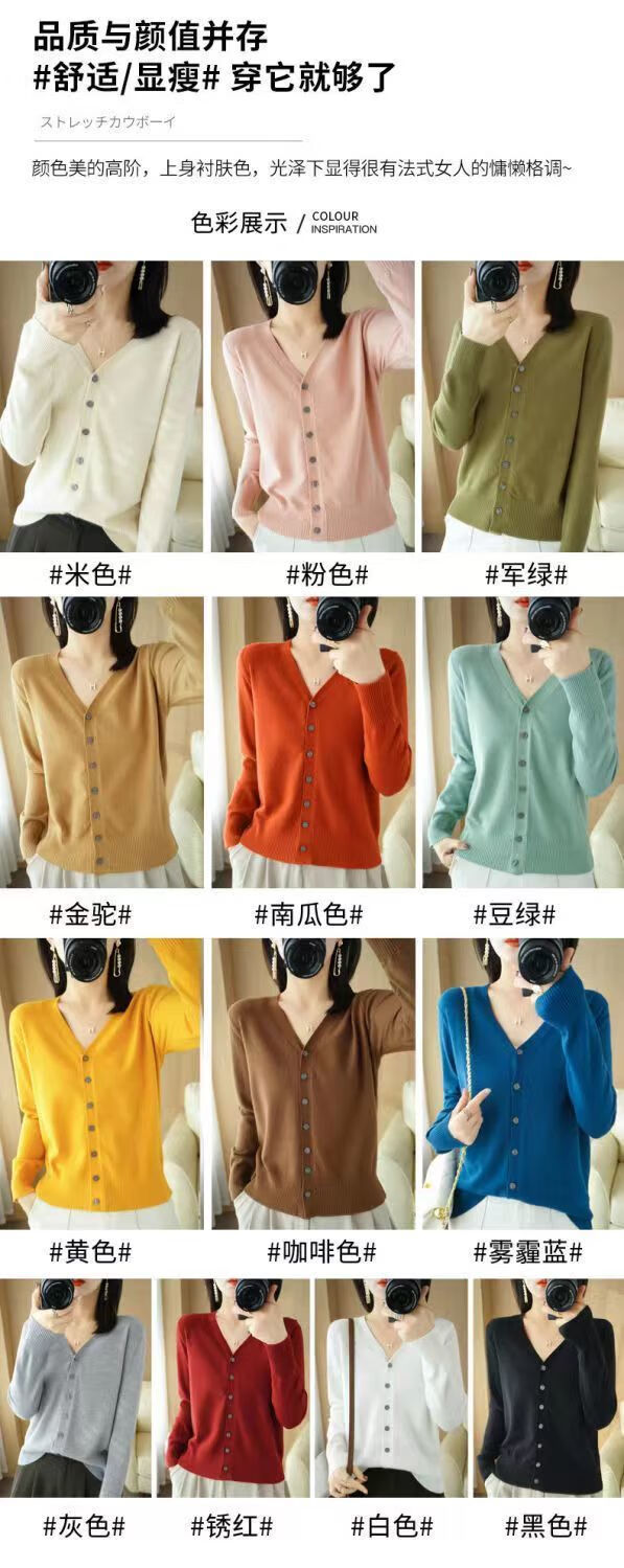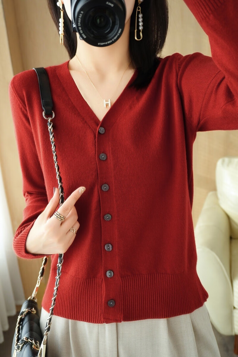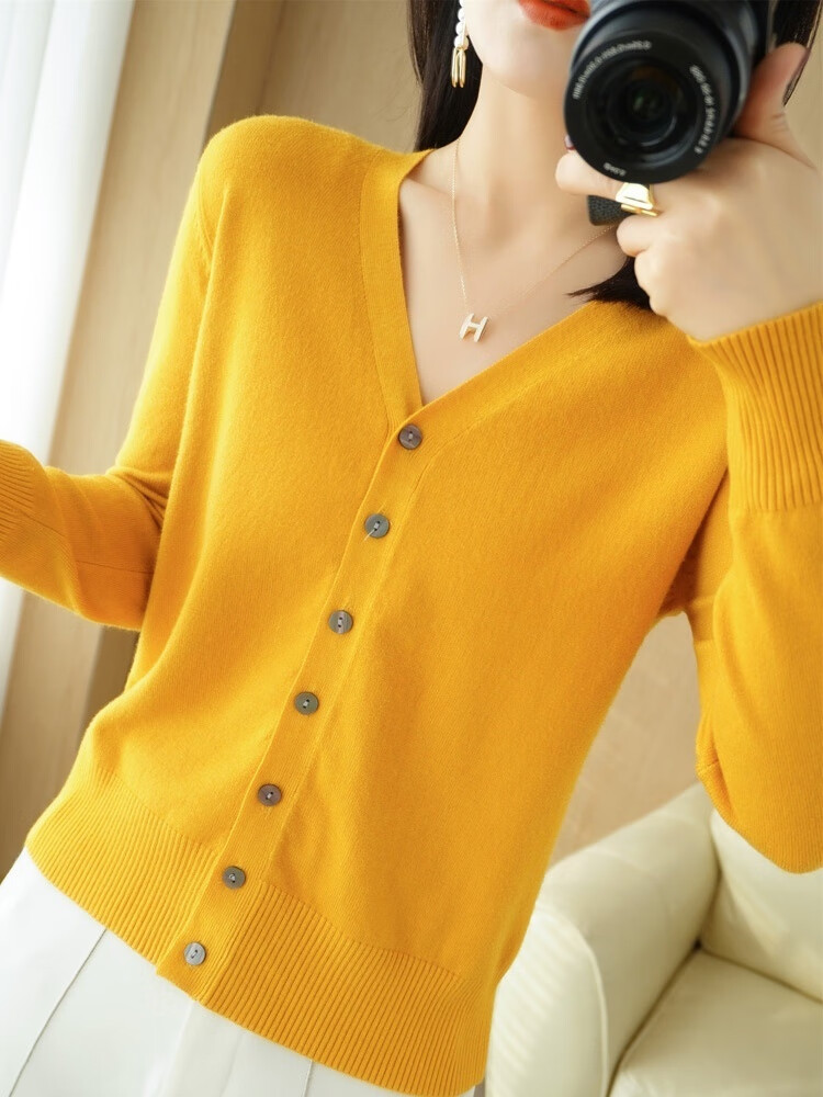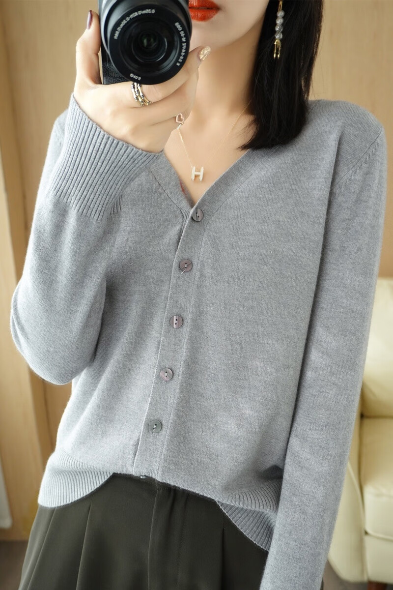 恒源祥春夏秋新款开衫女V领纯色上衣宽松气质百搭毛衣薄款羊.毛针织外套 南瓜色 XL (125-135)
