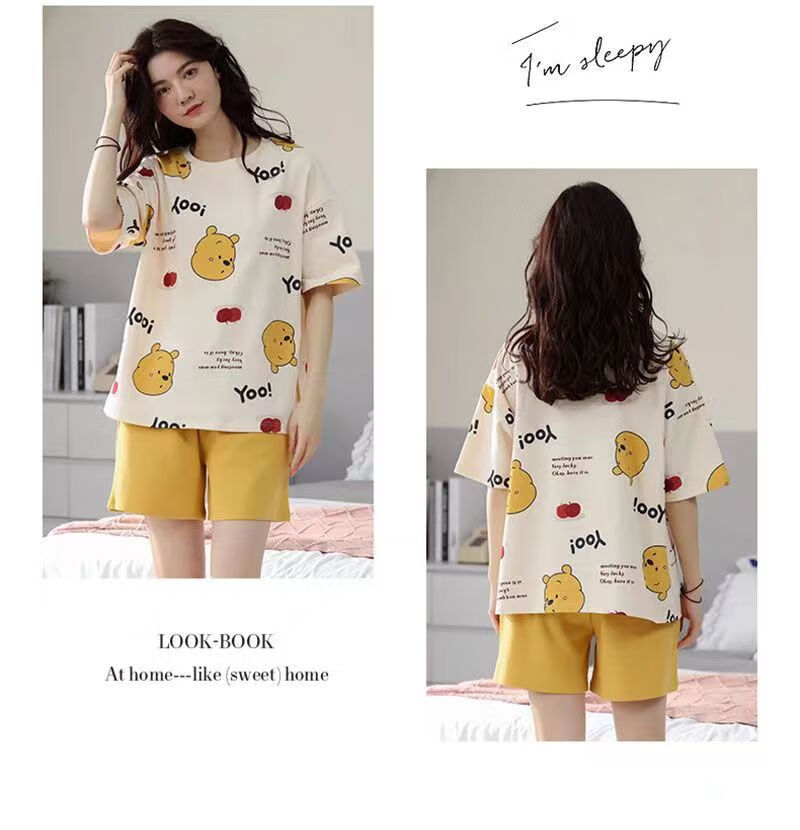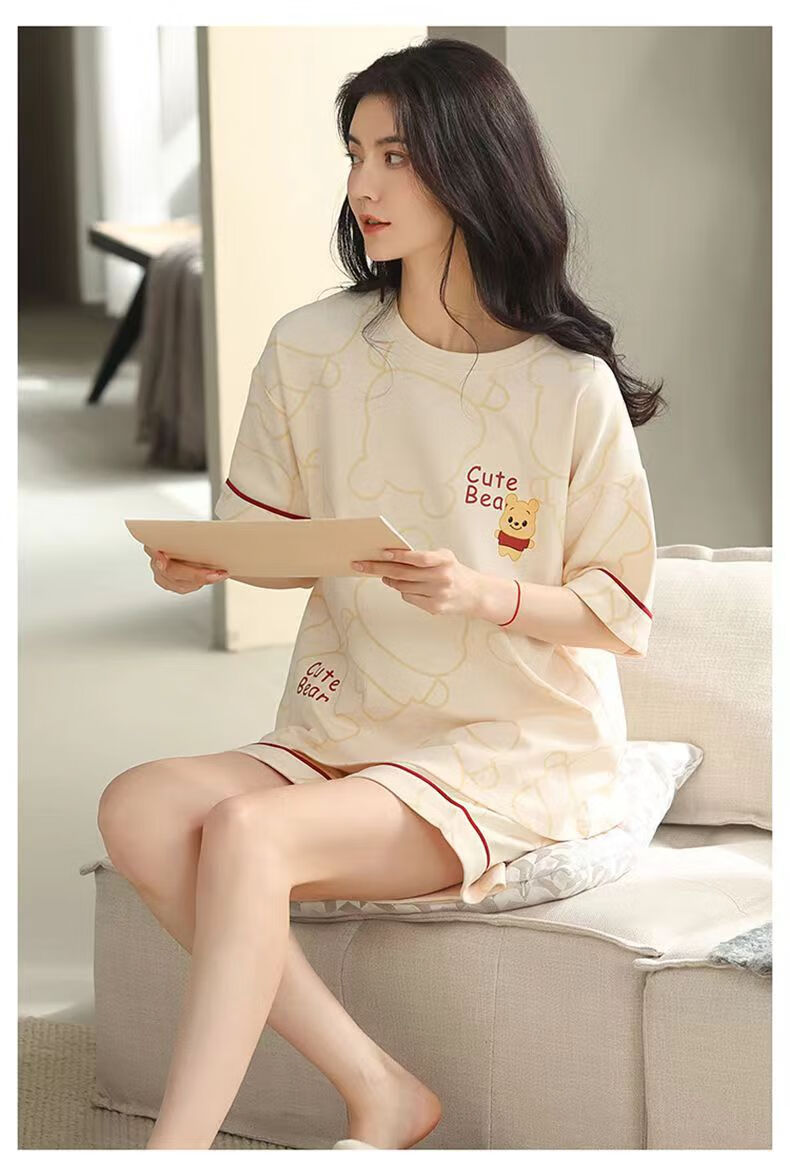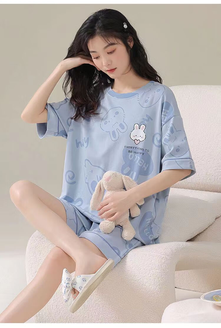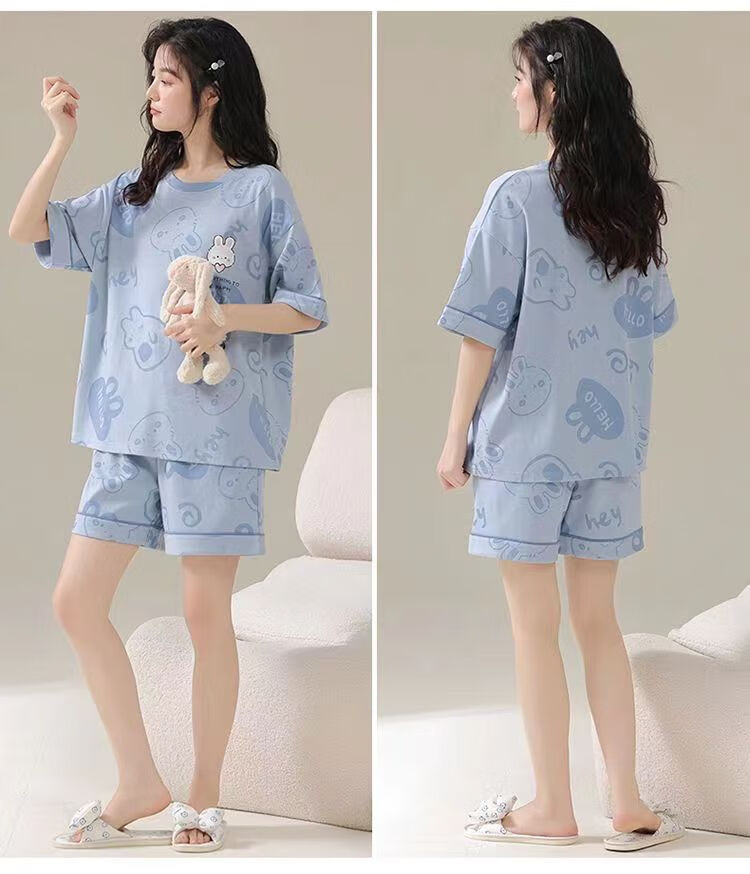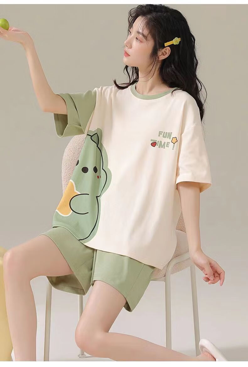 【优选直发】少女短袖短裤圆领睡衣学生卡通宿舍套装夏季可外穿女 云朵星星不带胸垫 M 女