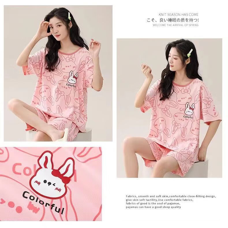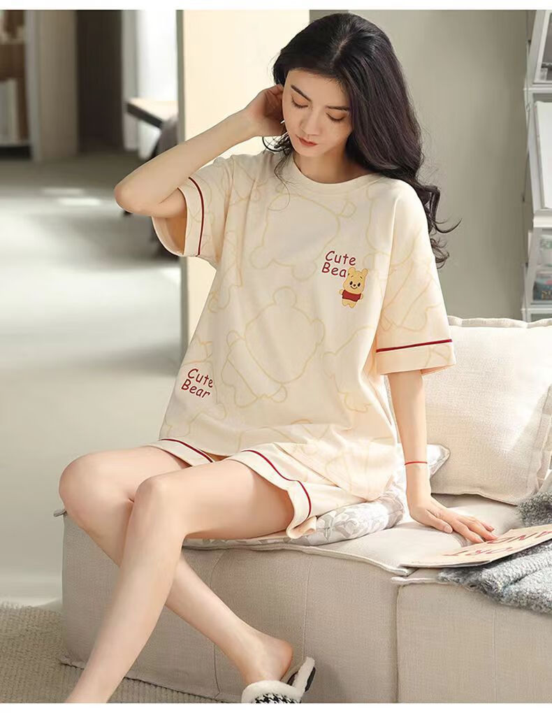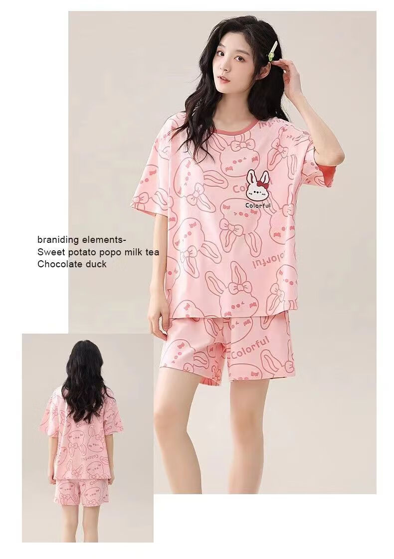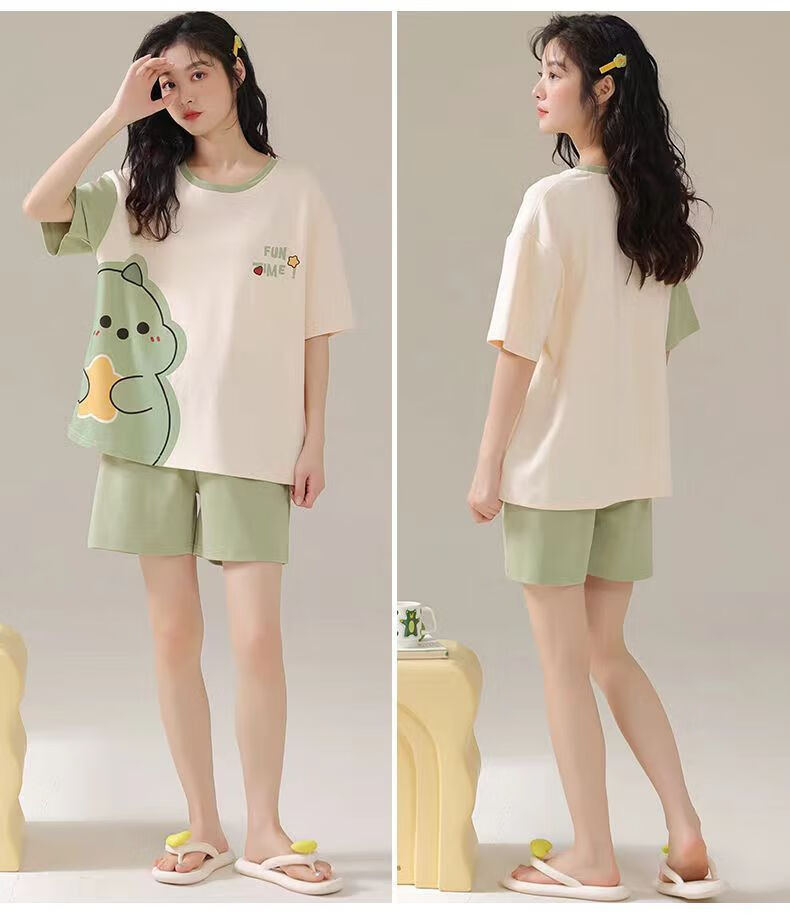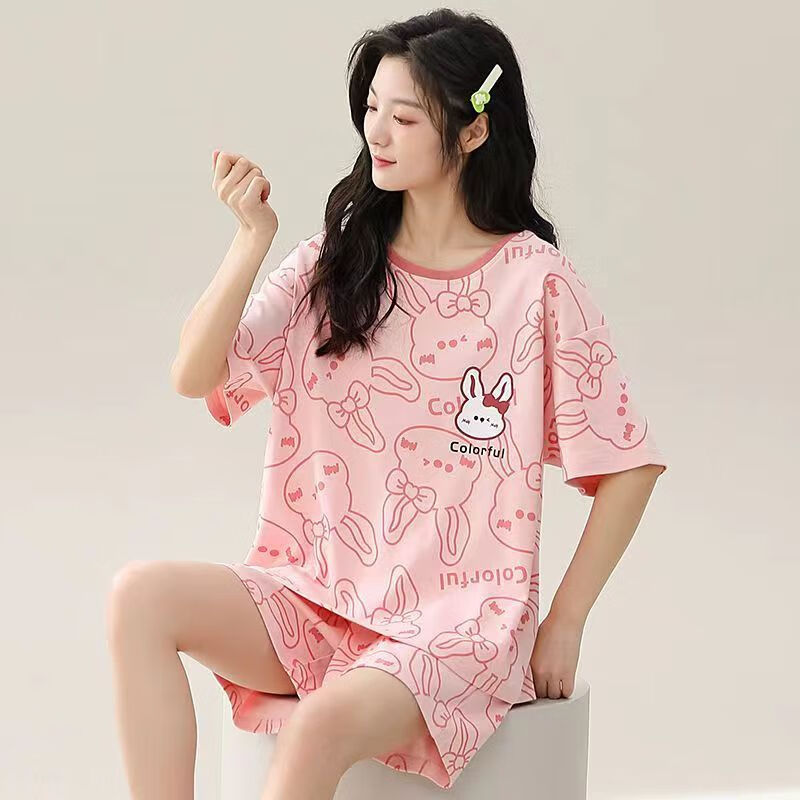 【优选直发】少女短袖短裤圆领睡衣学生卡通宿舍套装夏季可外穿女 云朵星星不带胸垫 M 女
