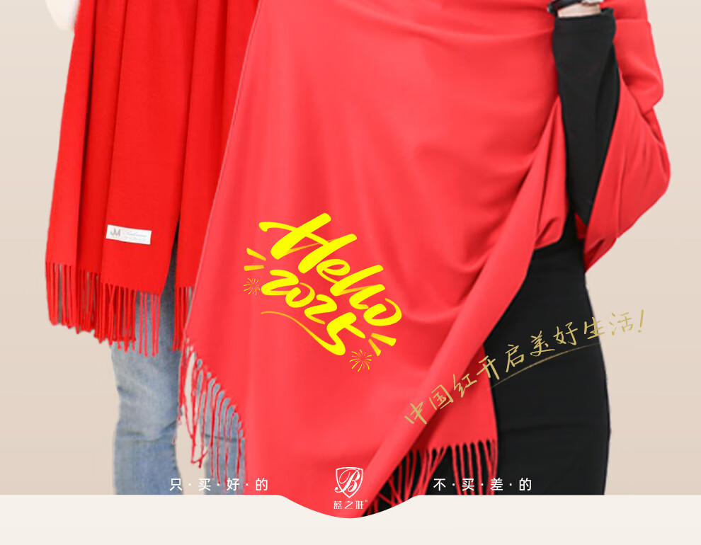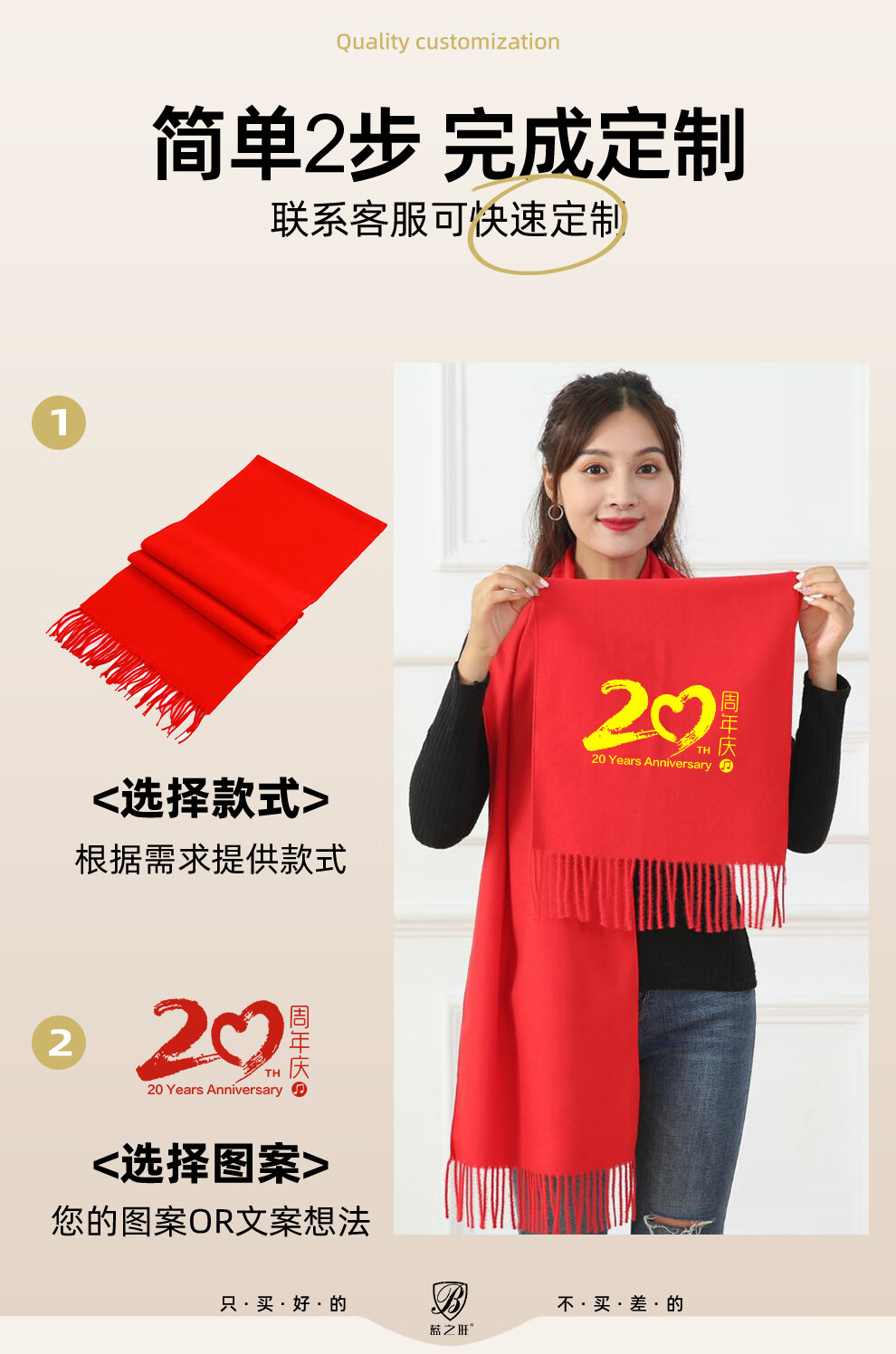 蓝之旺红色围巾定制中国红披肩公司年会活动同学聚会寿宴周年庆围巾印字 小刺毛(110g)