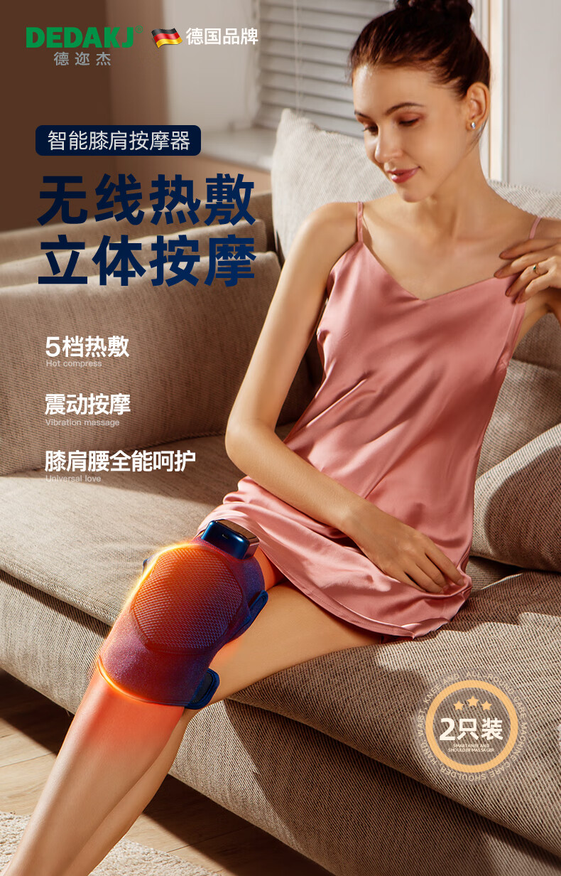 DEDAKJ【德国品牌】膝盖按摩仪热敷护理膝关节理疗肩膀护膝仪腿酸全身可用热敷按摩送爸妈高档实用礼物 【热敷可艾灸】多部位养护双支K-HK32