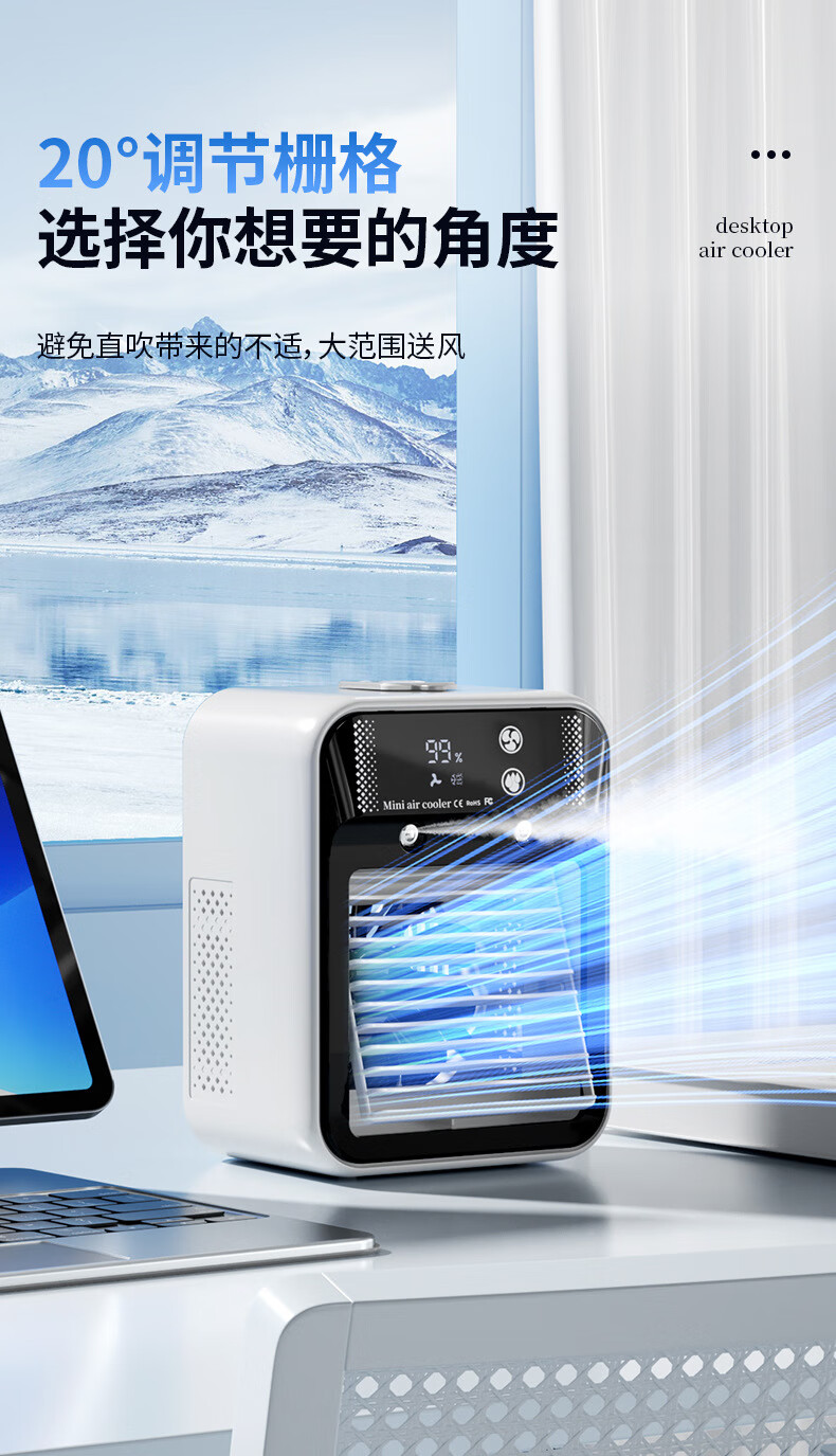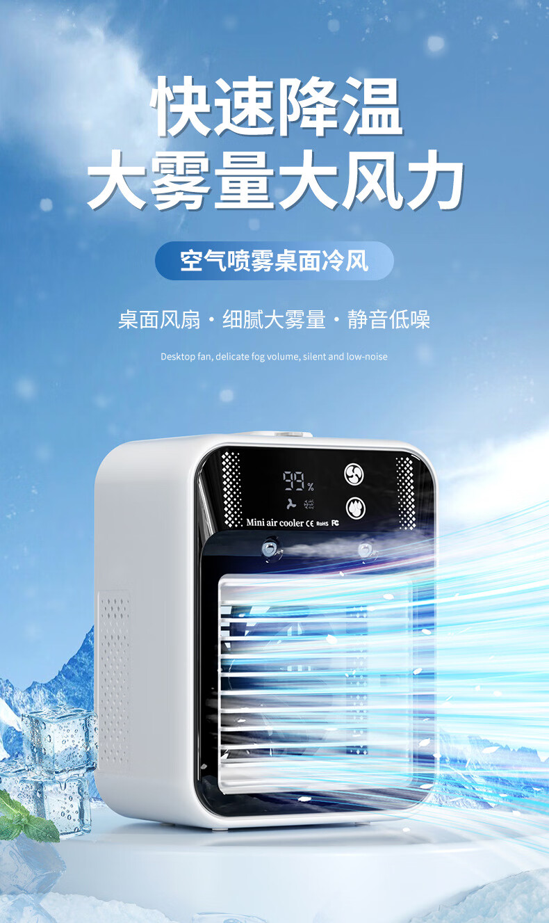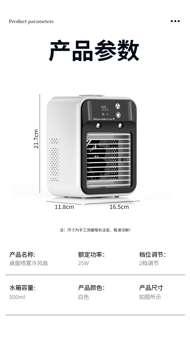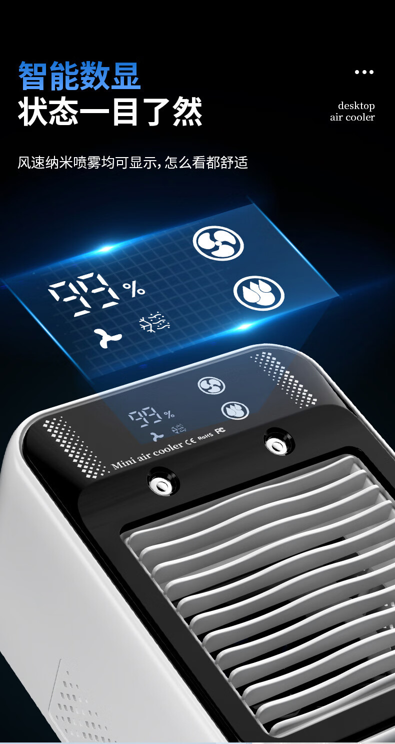 【精选直发】USB喷雾加湿迷你小空调扇桌面水冷风扇宿舍移动制冷 L7中文(充电插电两用白色