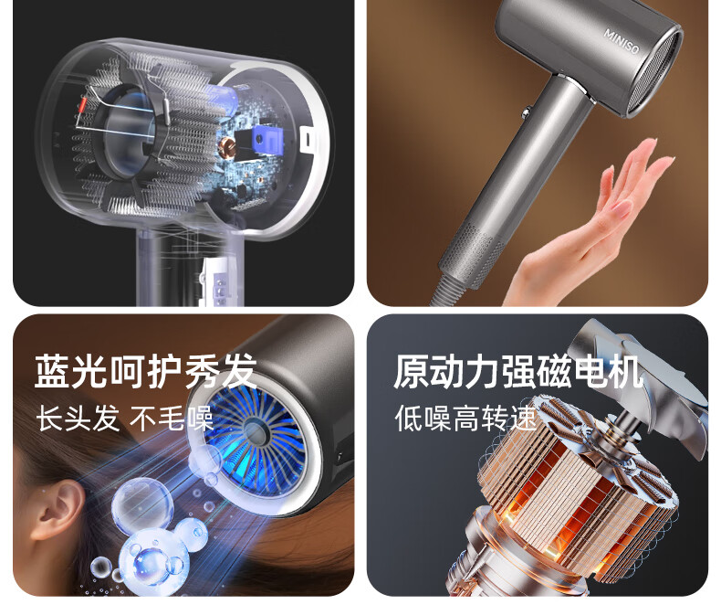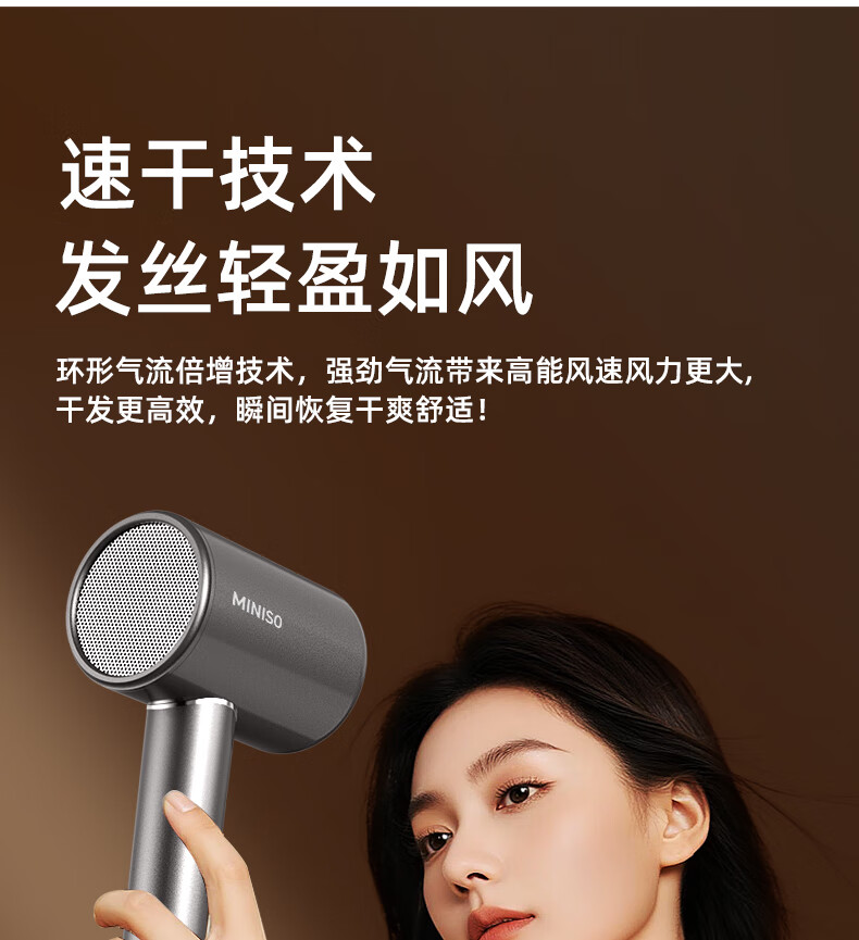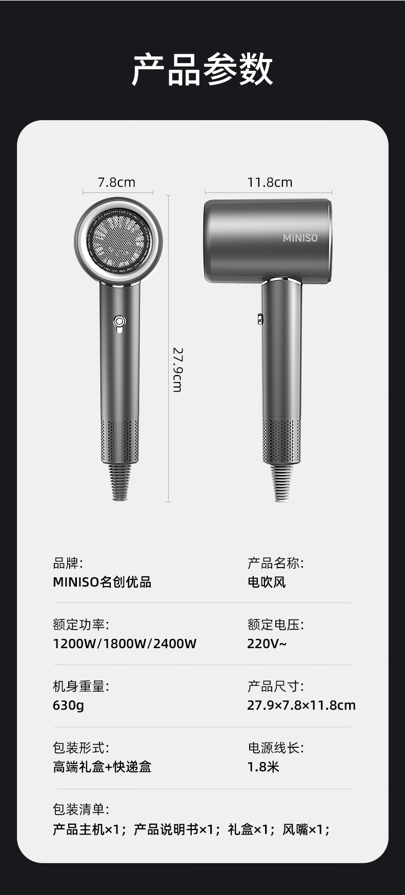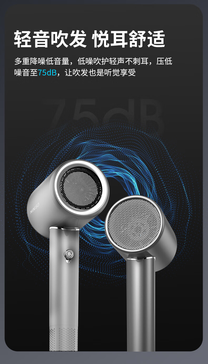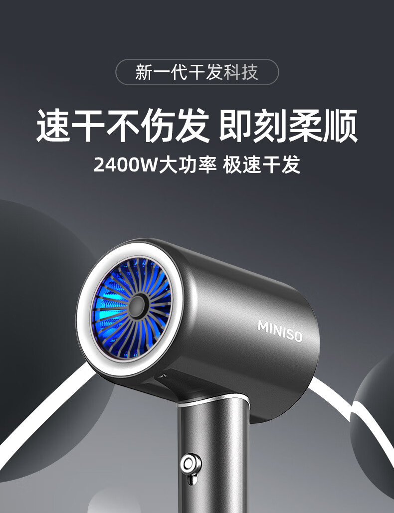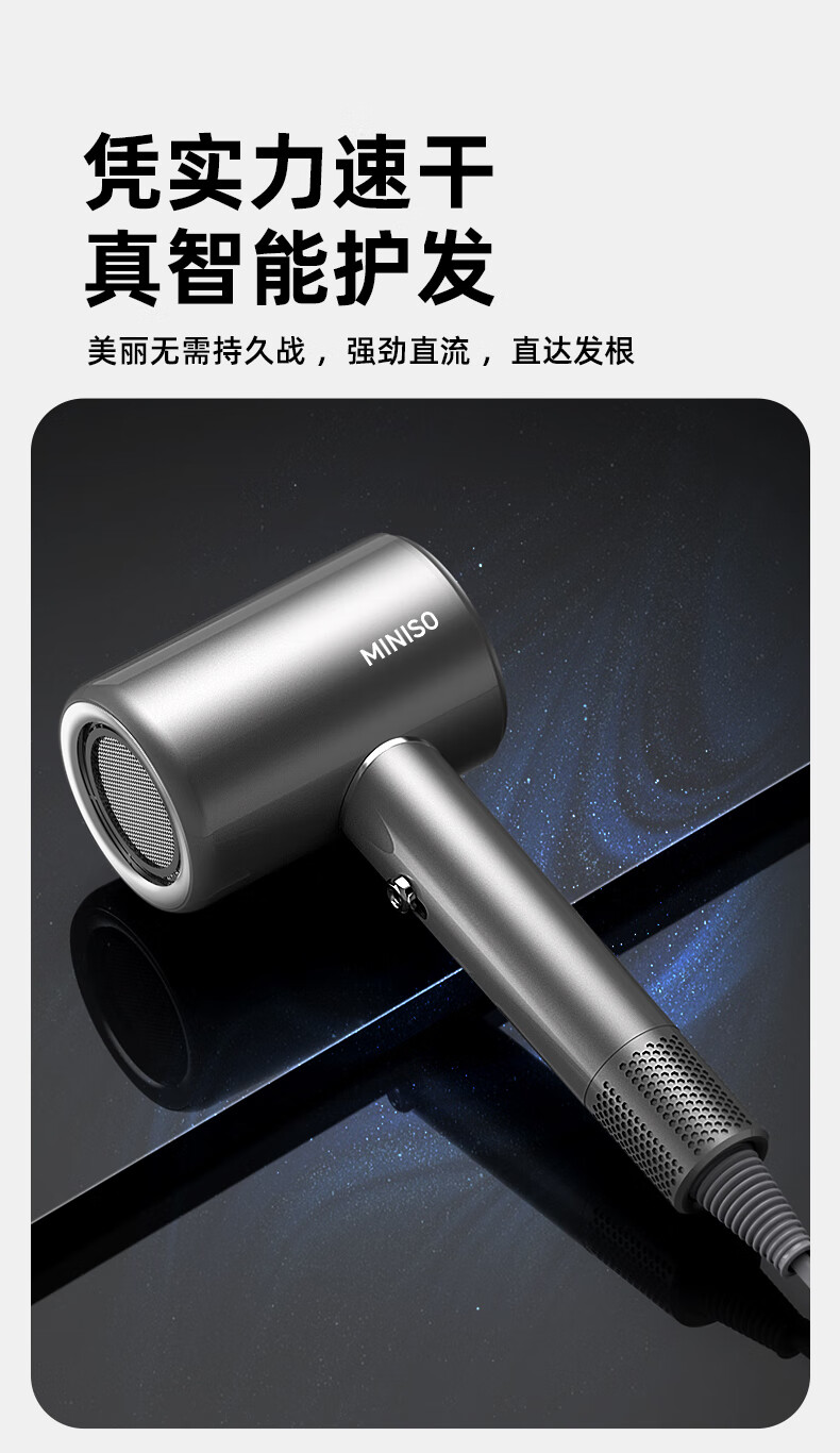 名创优品(MINISO)高速吹风机家用负离子护发静音大功率3C认证大风力速干电吹风筒折叠轻便学生宿舍礼男女生 旗舰款【星空灰】 1200W+蓝光护发