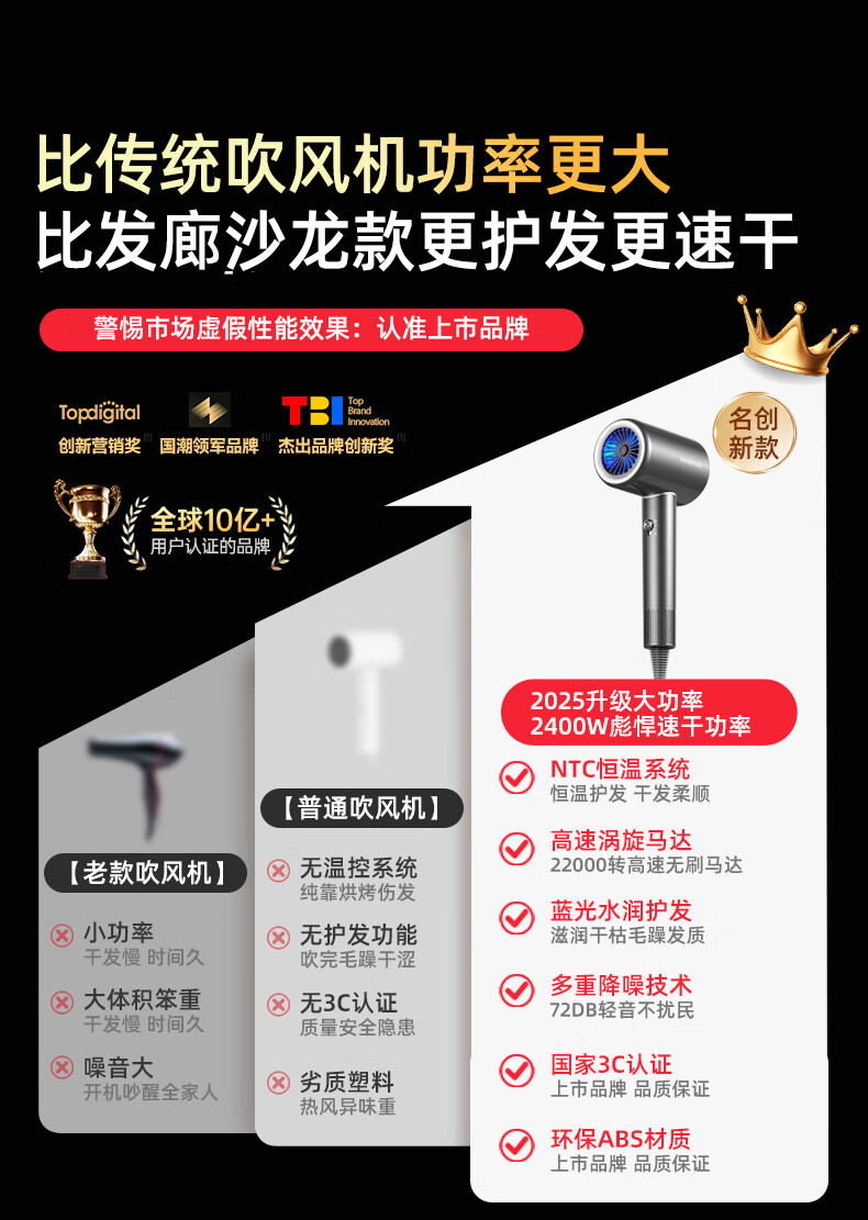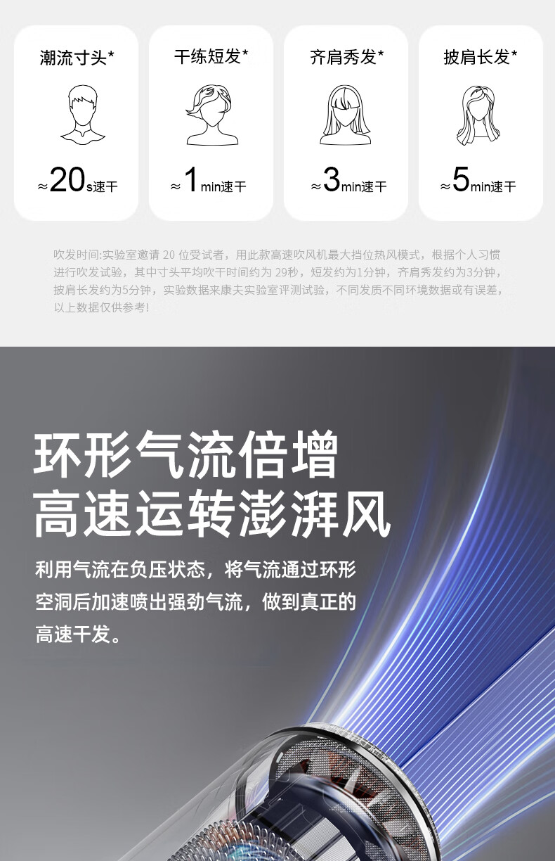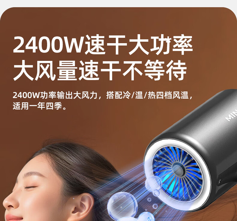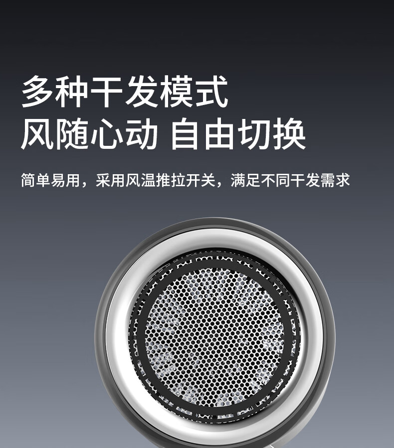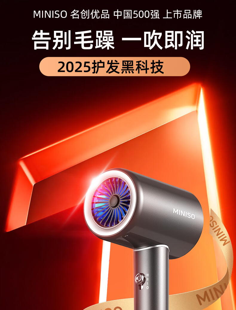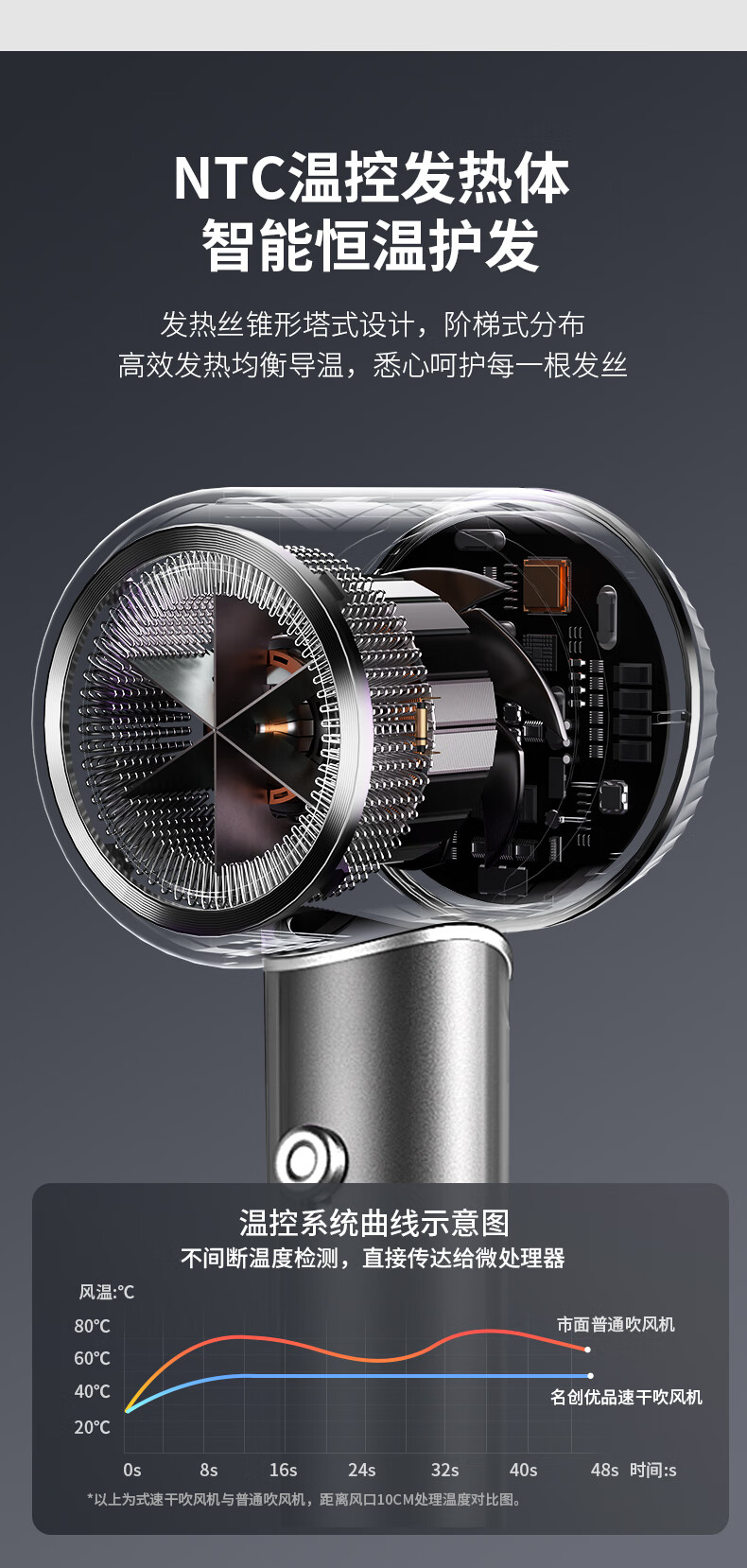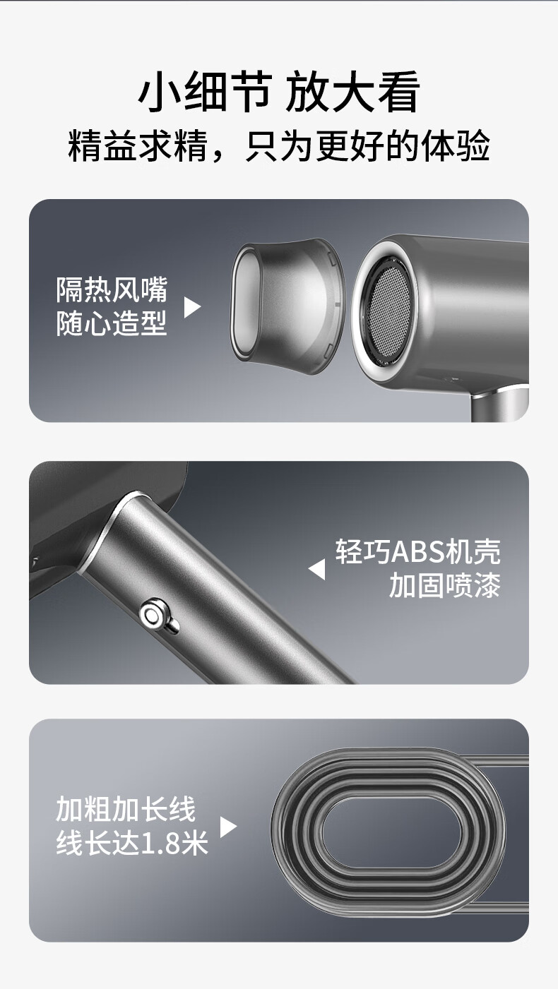 名创优品(MINISO)高速吹风机家用负离子护发静音大功率3C认证大风力速干电吹风筒折叠轻便学生宿舍礼男女生 旗舰款【星空灰】 1200W+蓝光护发