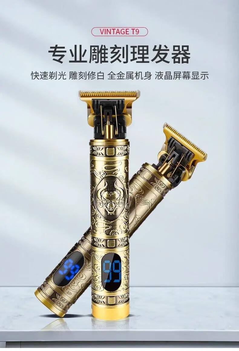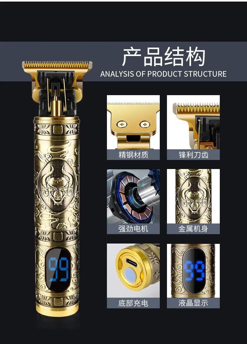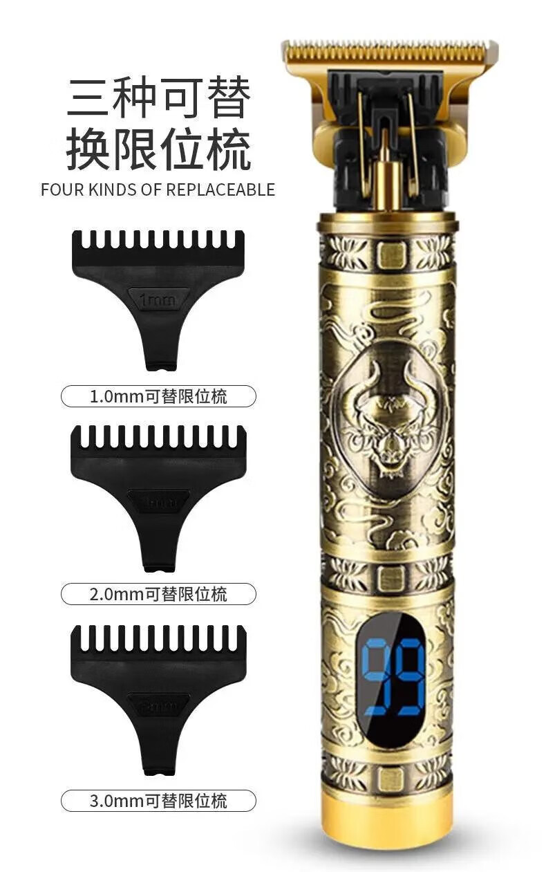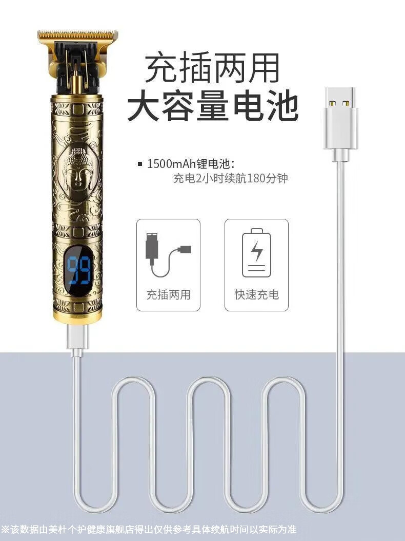 美杜 剃头理发器电推剪家用推白修边电推子雕刻油头推剪剃头刀刻痕雕刻专业发廊剃光头神器 理发推数显款【牛头液晶款】