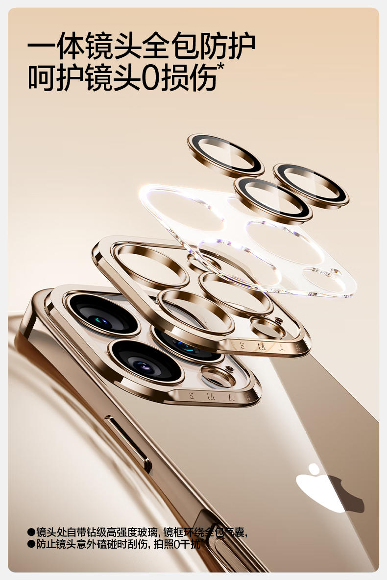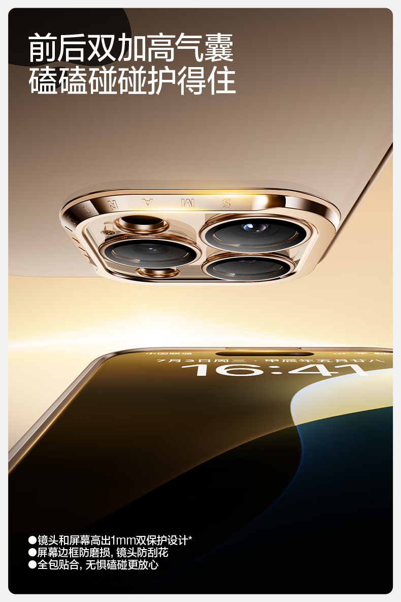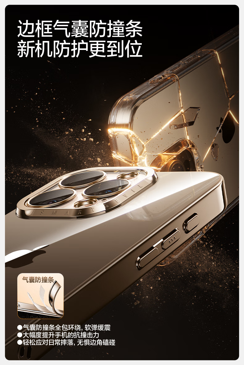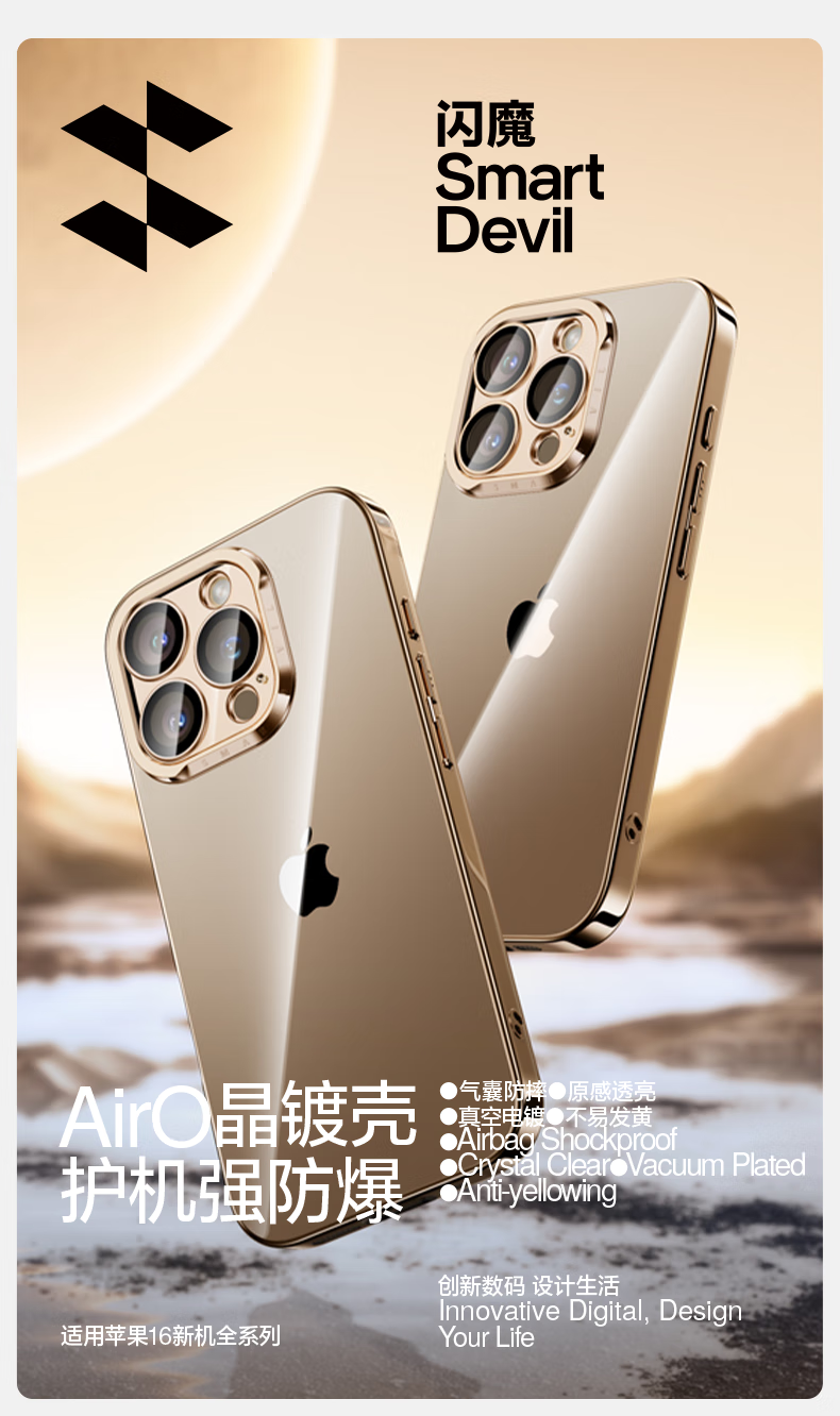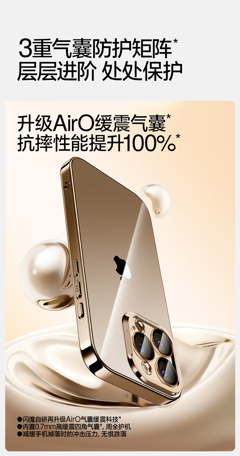闪魔【甄选直发】适用iphone16系列手机壳 苹果套 镜头全包透明防摔硅胶气囊电镀男女款 16ProMax【银白色】自带镜头膜