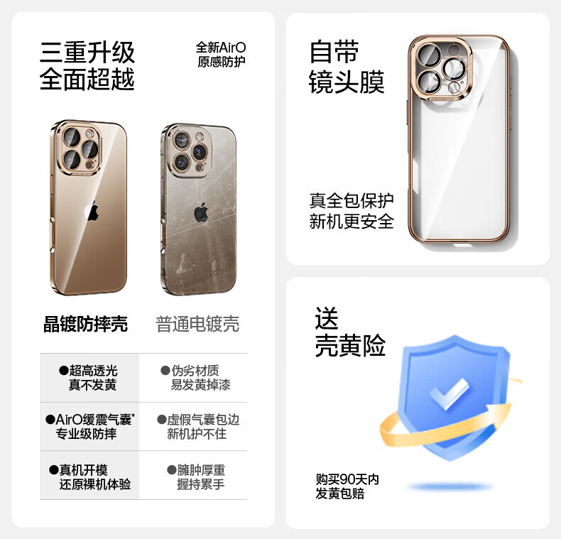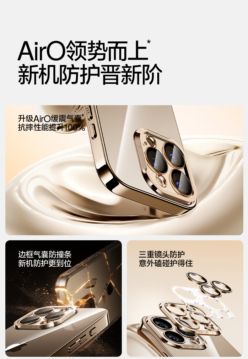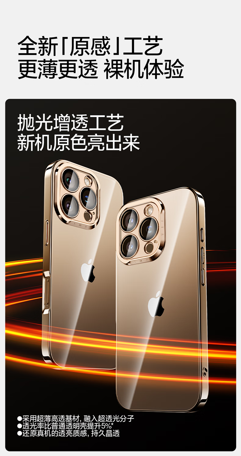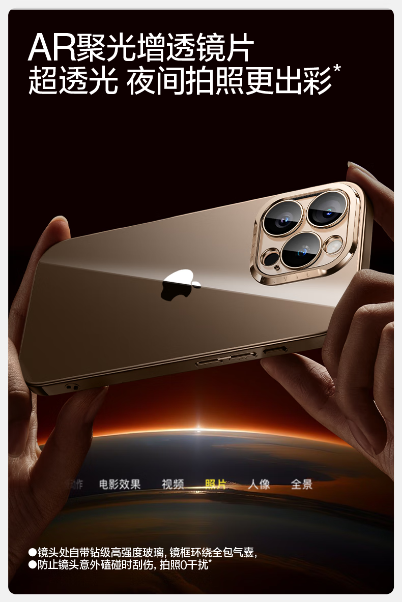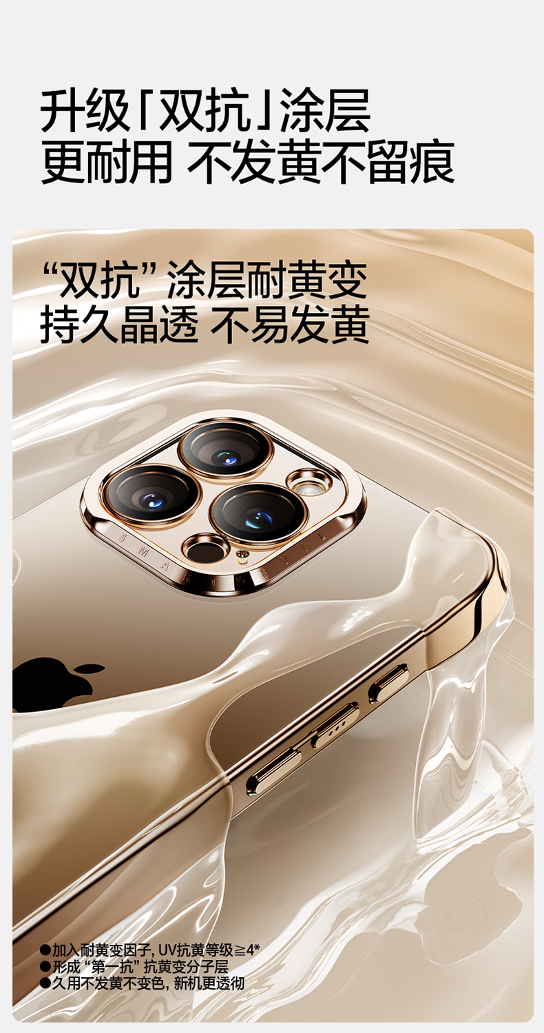 闪魔【甄选直发】适用iphone16系列手机壳 苹果套 镜头全包透明防摔硅胶气囊电镀男女款 16ProMax【银白色】自带镜头膜