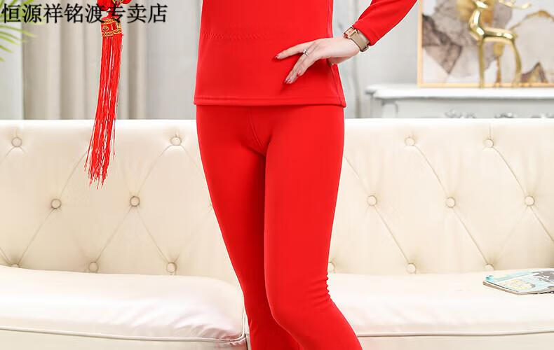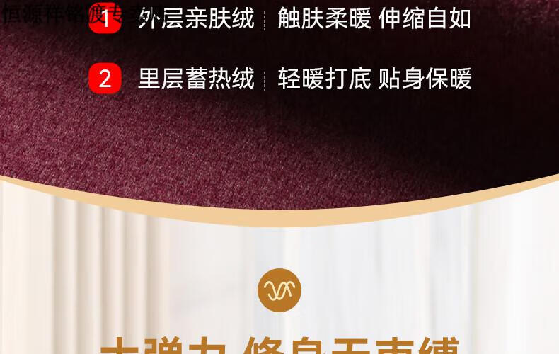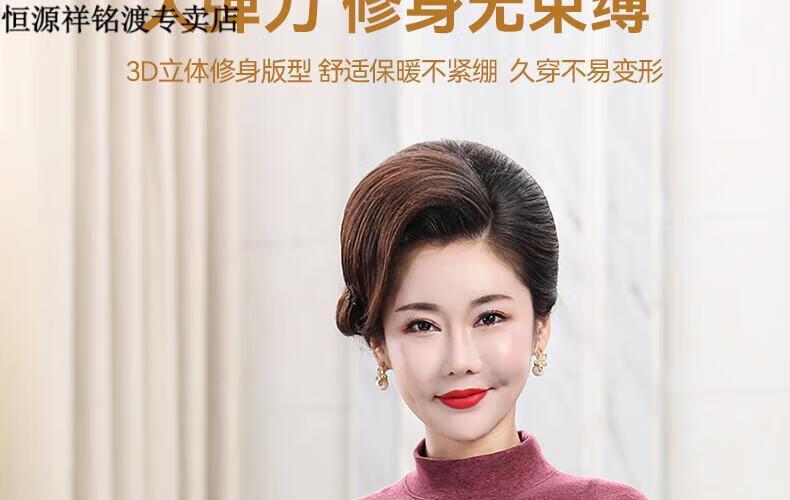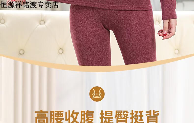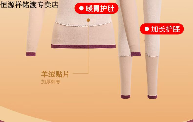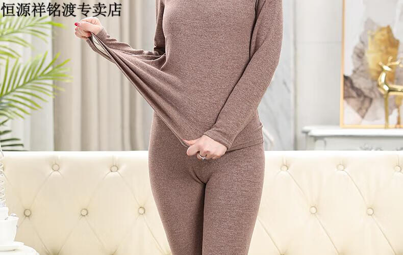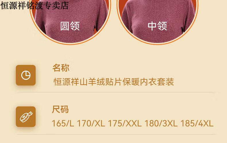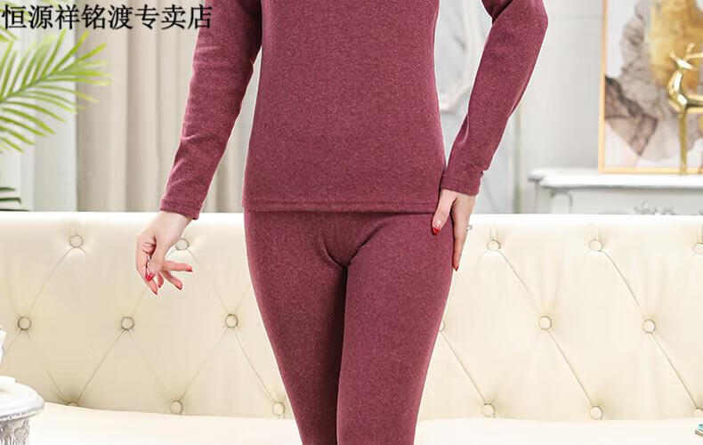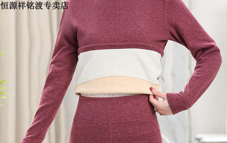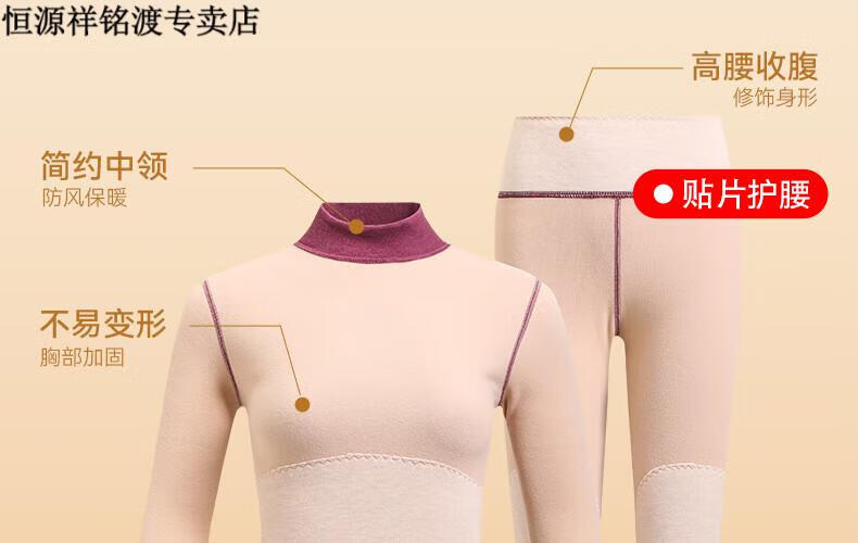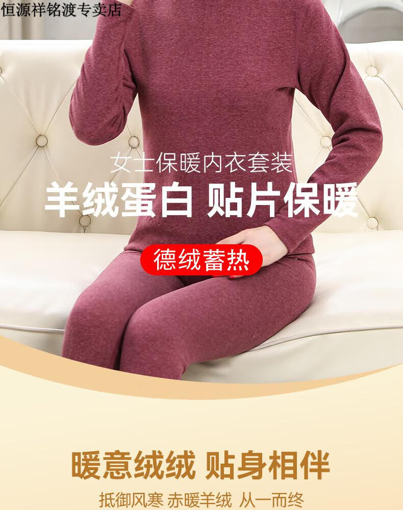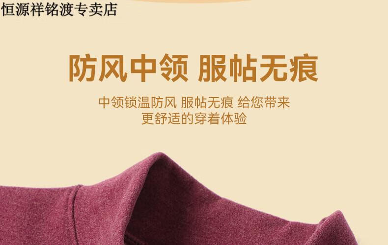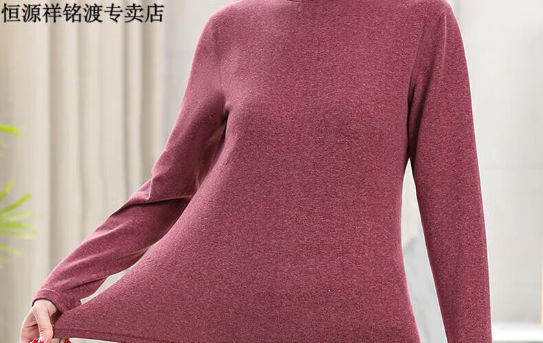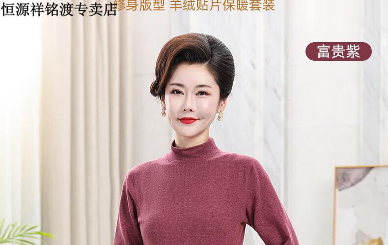 恒源祥(HYX)品牌中老年人保暖内衣套装女士加绒加厚羊绒冬妈妈奶奶秋衣秋裤 紫红色-羊绒款-半高领 XL (建议105-125斤)