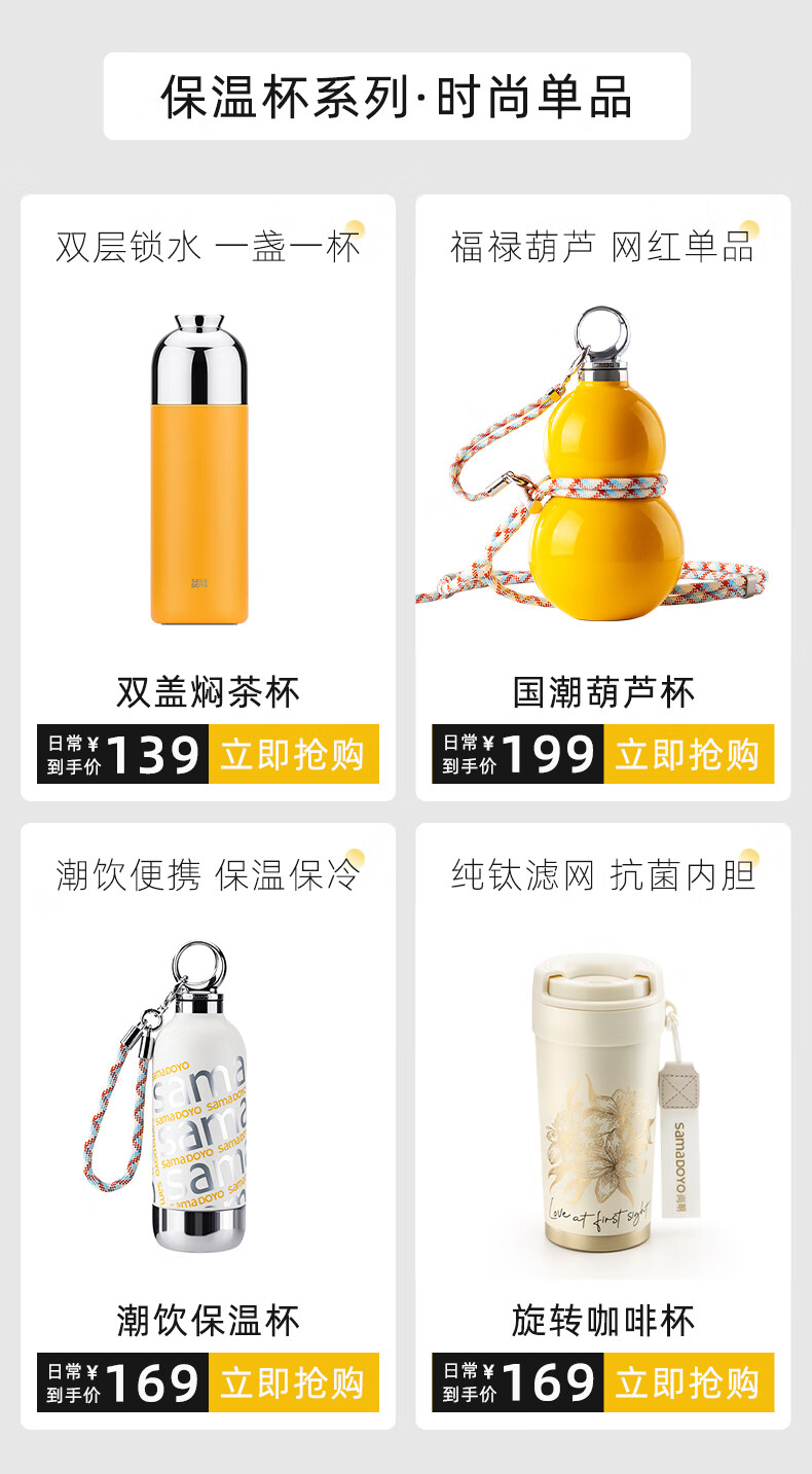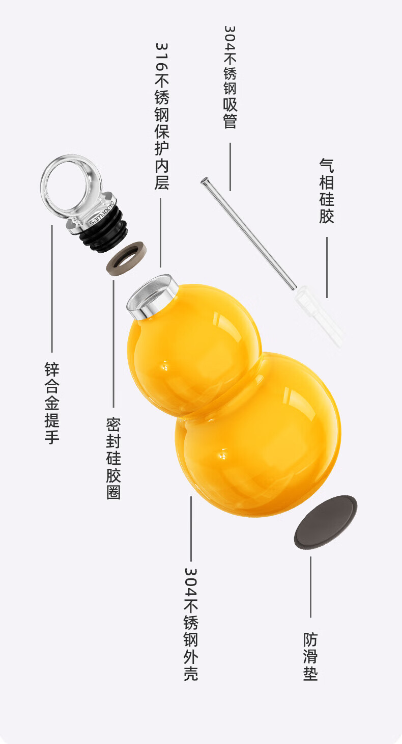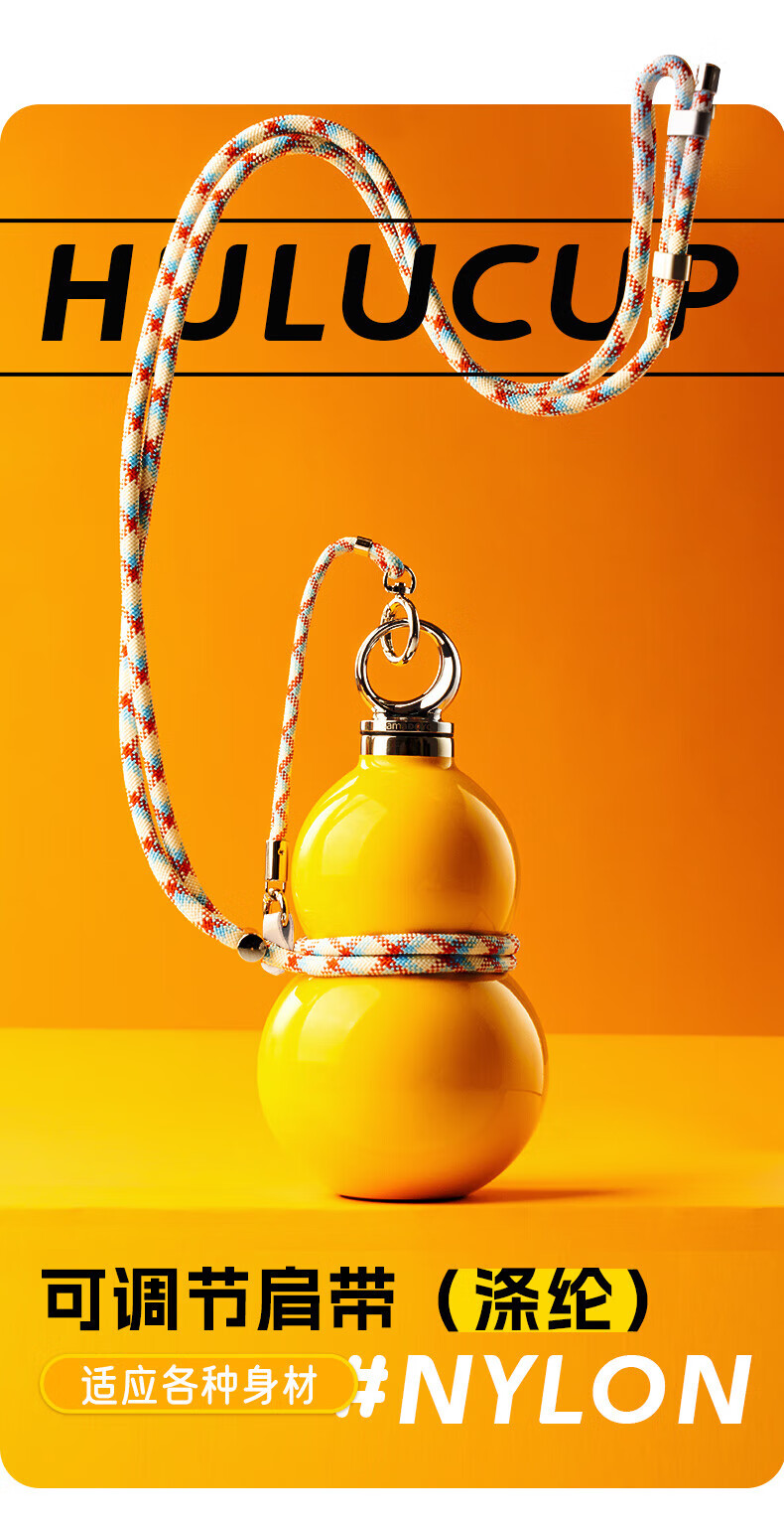 尚明葫芦水壶316保温水杯不锈钢运动便携保冷户外吸管水杯节日礼物 橙黄色 520ml(送背带+吸管)