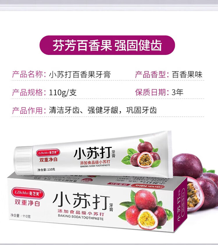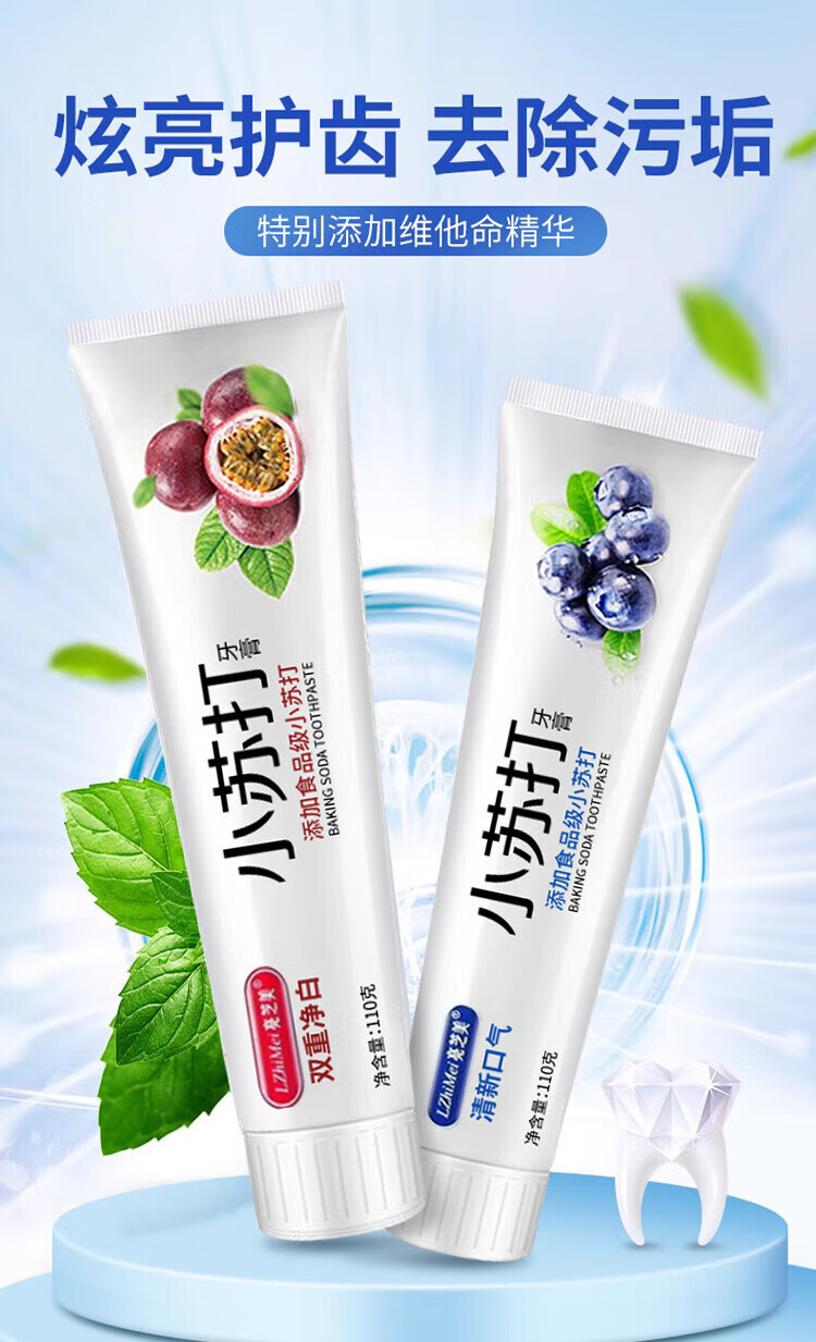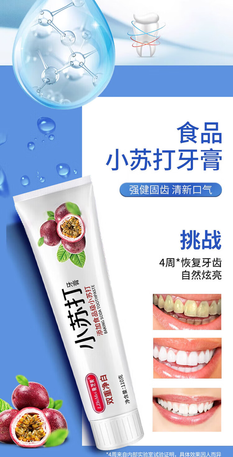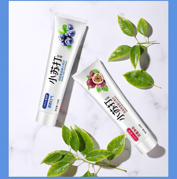 亮芝美果味小苏打牙膏牙齿洁白减轻牙渍牙黄清新口气口腔牙龈护理大容量 百香果2盒+蓝莓2盒