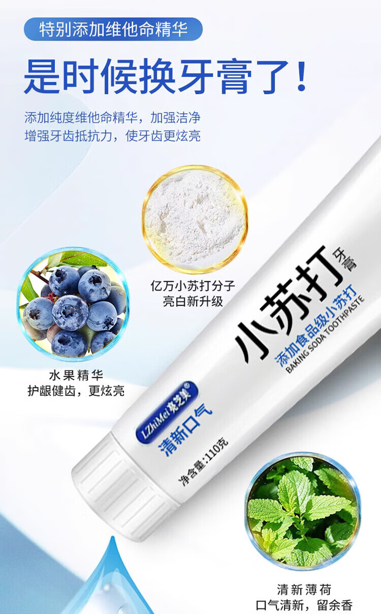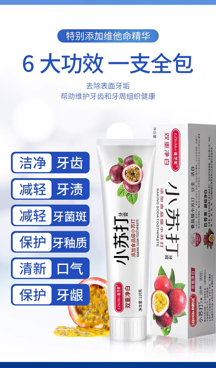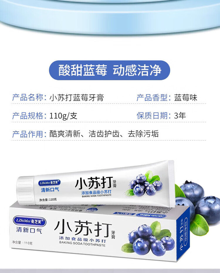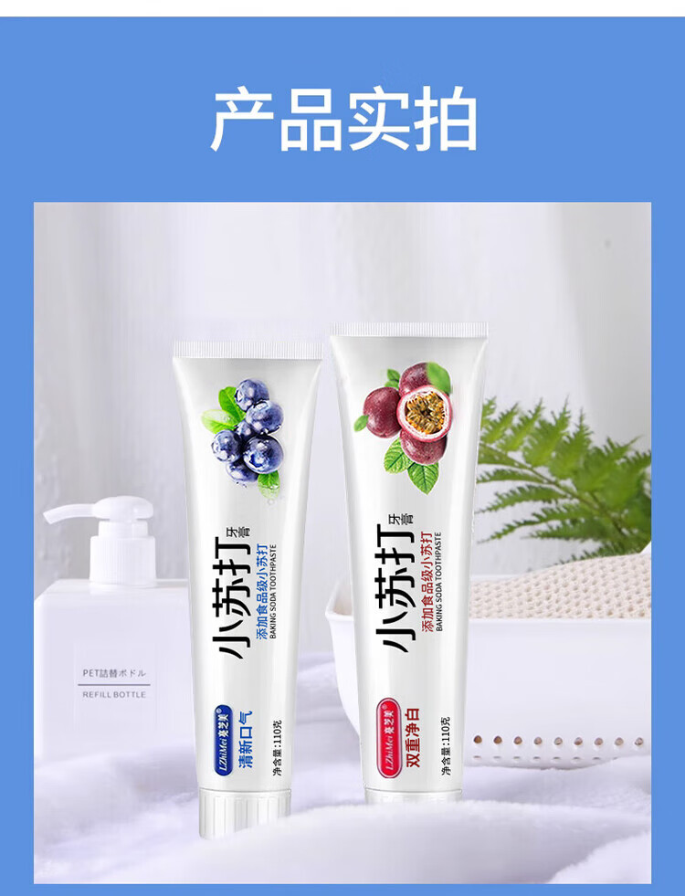 亮芝美果味小苏打牙膏牙齿洁白减轻牙渍牙黄清新口气口腔牙龈护理大容量 百香果2盒+蓝莓2盒