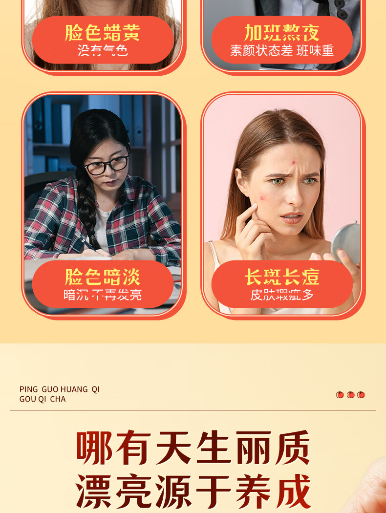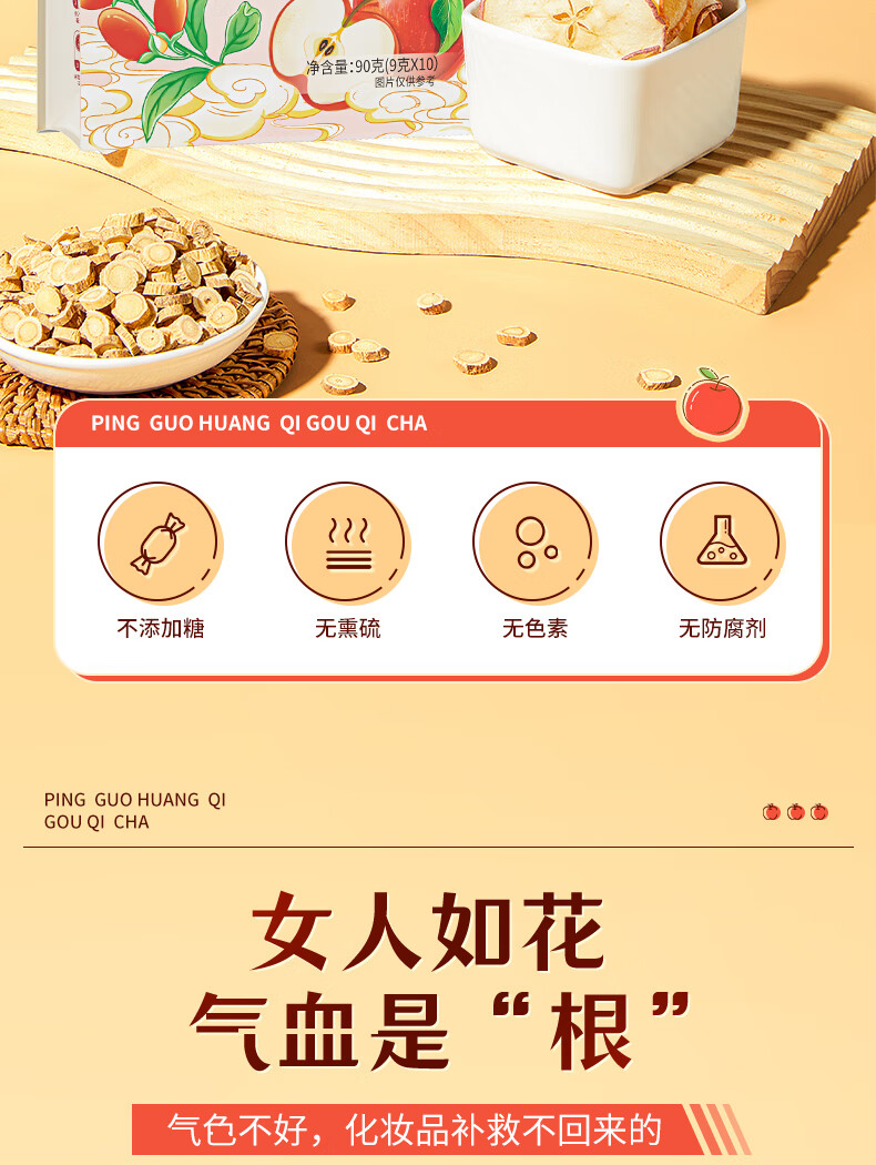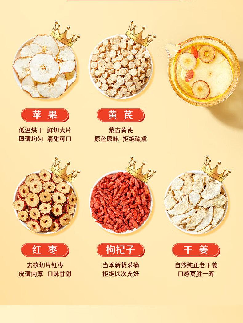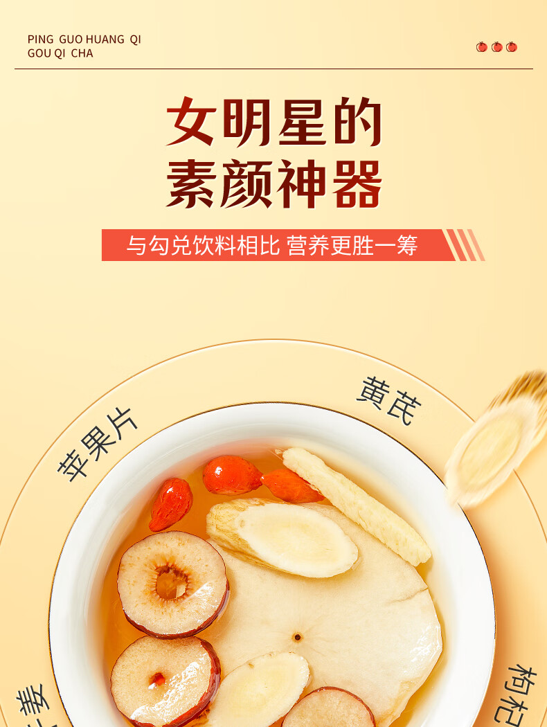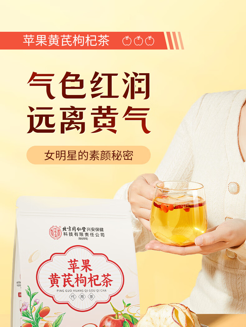 内廷上用北京同仁堂苹果黄芪枸杞茶女生素颜水红枣姜枣脸黄泡水养生茶女 分享装-2袋装【9g*10包/袋】