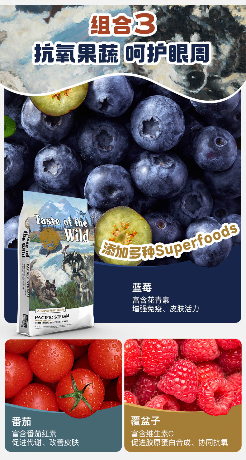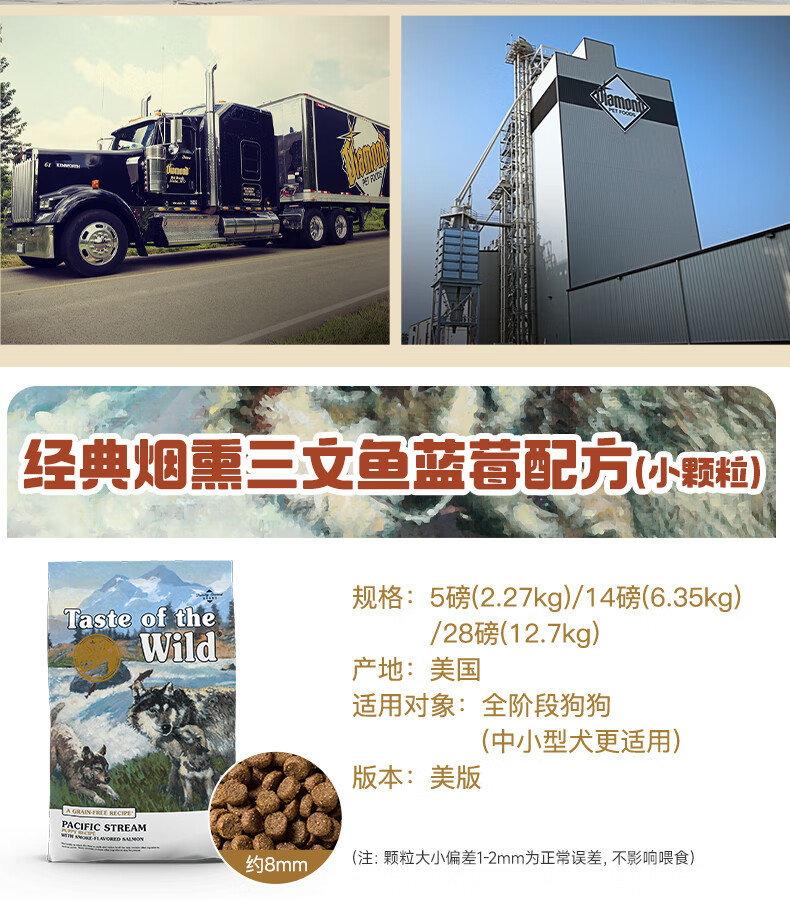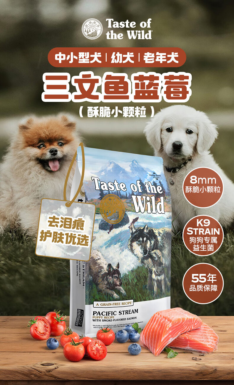 荒野盛宴无谷烟熏三文鱼蓝莓狗粮美毛护肤成犬幼犬全犬粮 小颗粒12.7kg